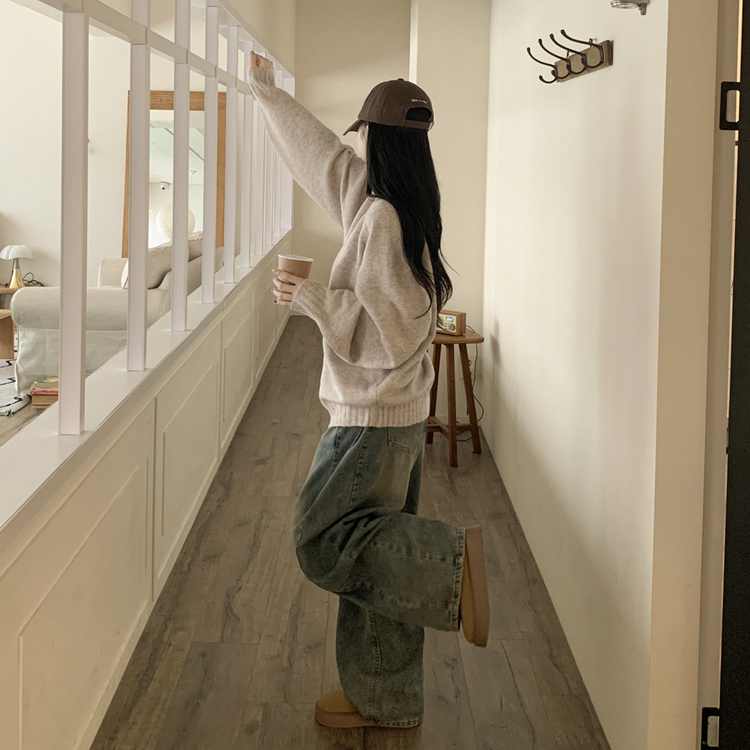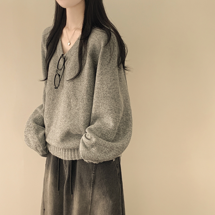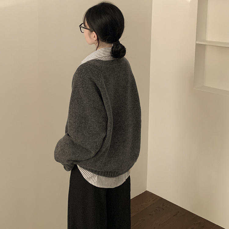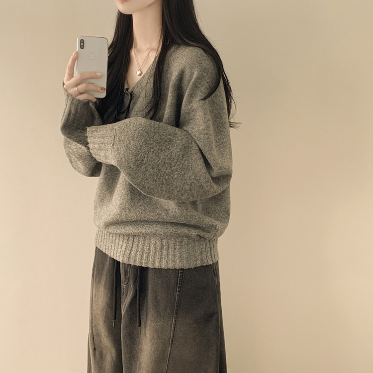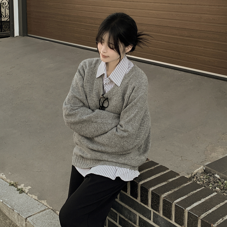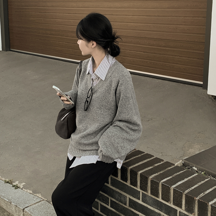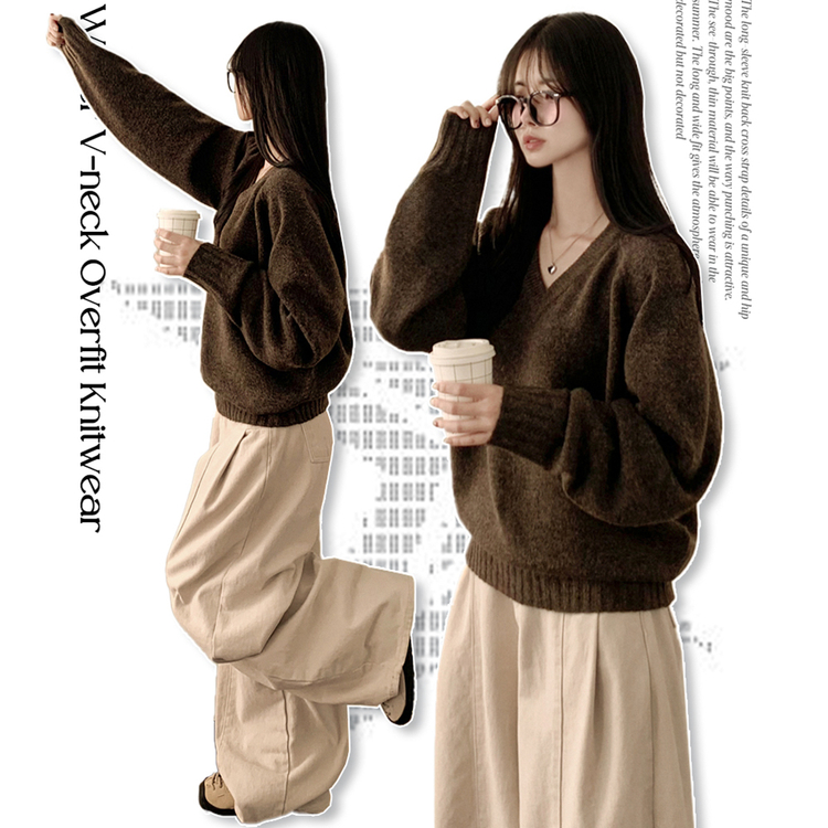 SNT33081 체형커버 아방핏 부드러운 무지 브이넥 나그랑 오버핏 폭닥 겨울니트 넉넉함보장 빅사이즈