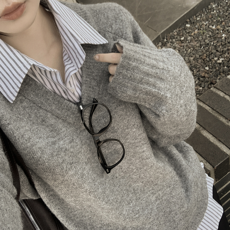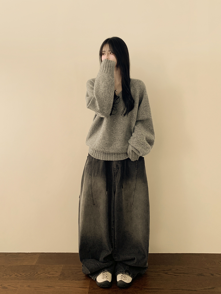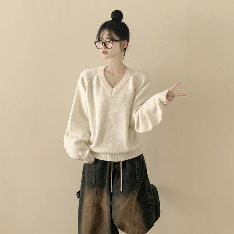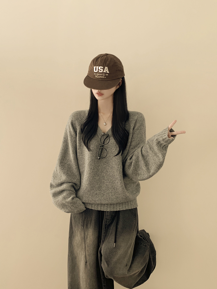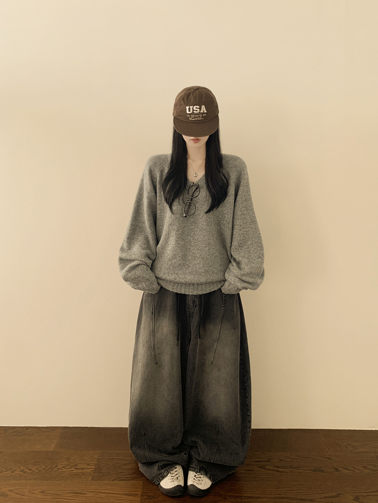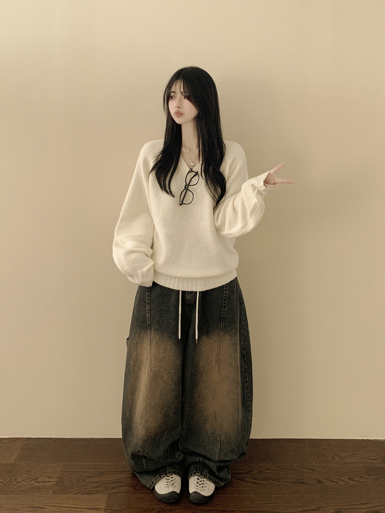 SNT33081 체형커버 아방핏 부드러운 무지 브이넥 나그랑 오버핏 폭닥 겨울니트 넉넉함보장 빅사이즈