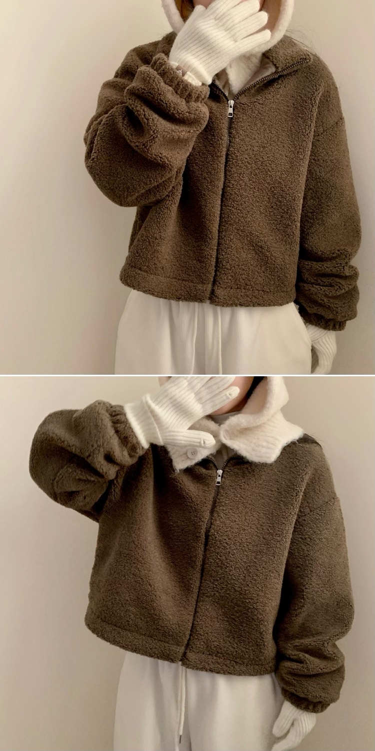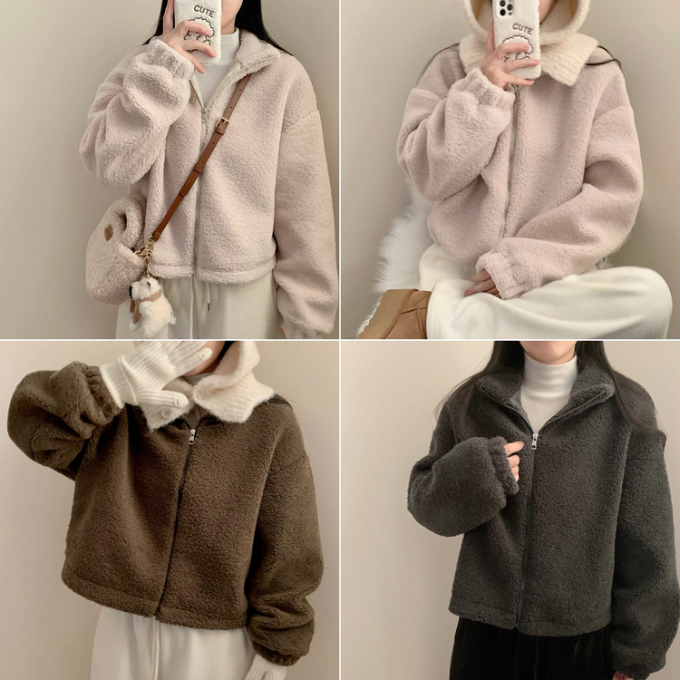 SJP18464 우디 양털 하이넥 집업 자켓 후리스 후드 뽀글이 겨울 겨울 아우터 겨울옷 후리스집업 플리스자켓