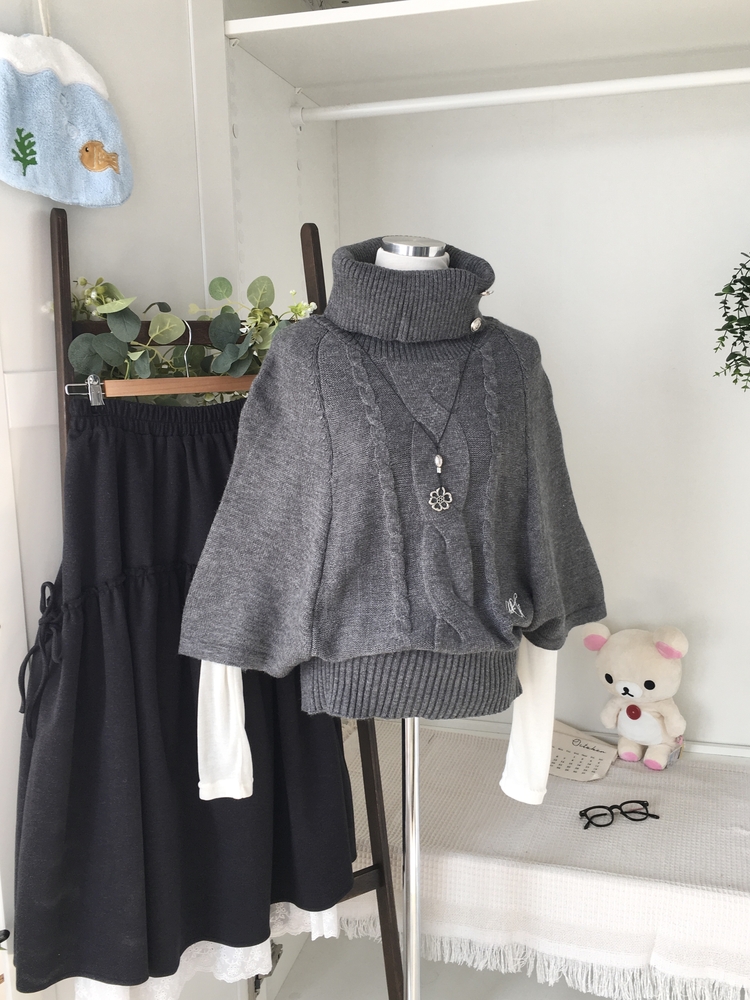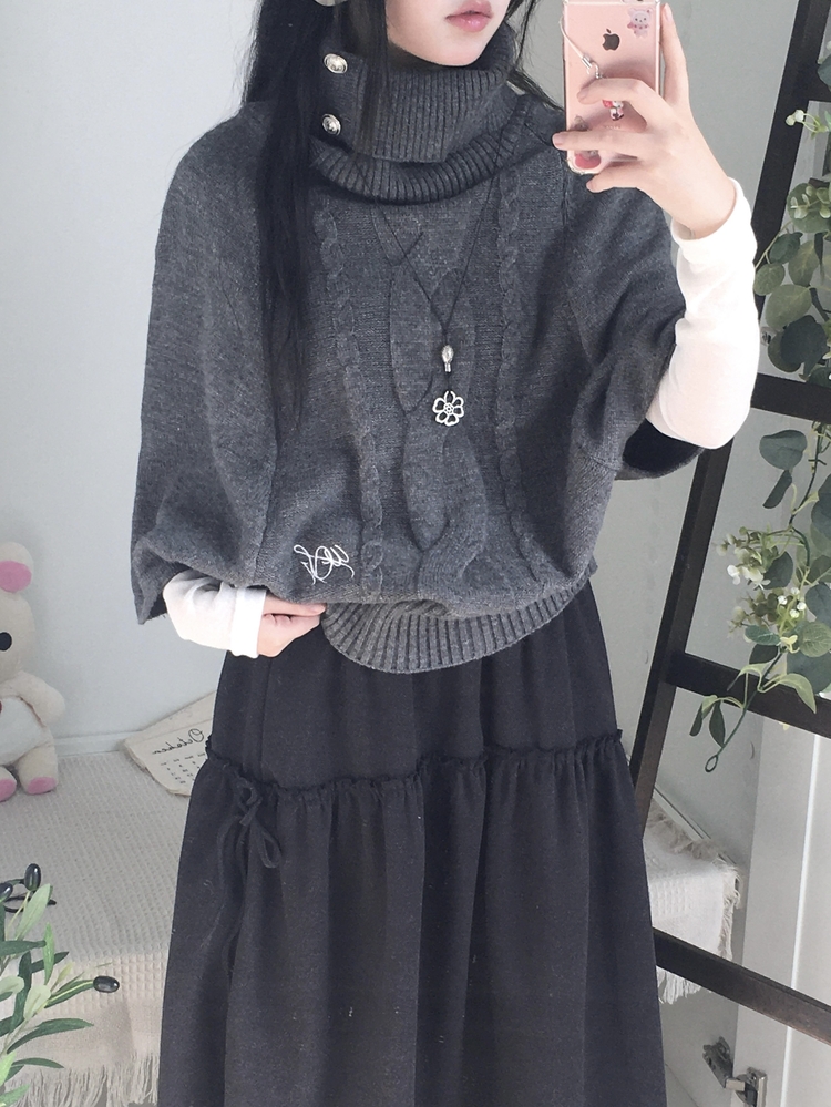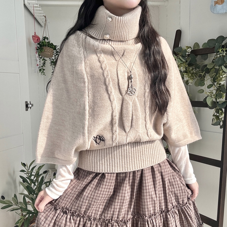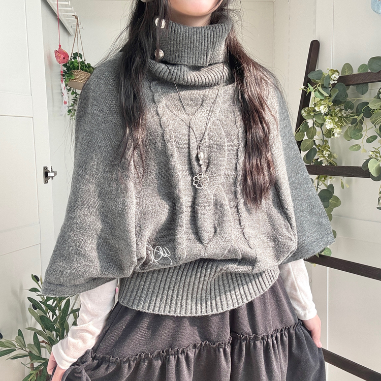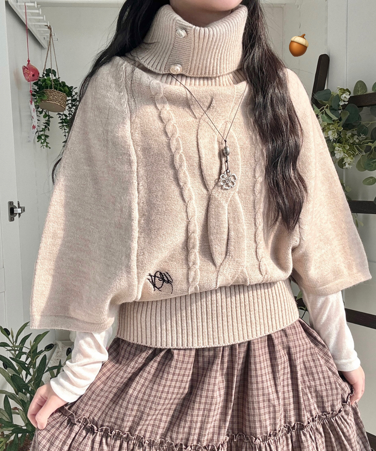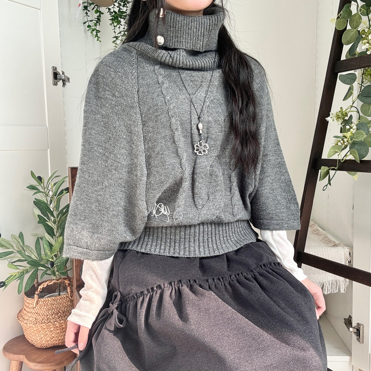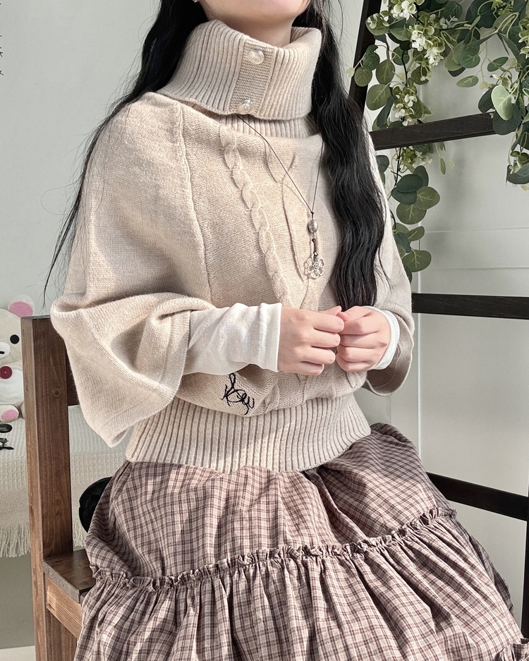 SNT33158 달빛천사 자수 꽈배기 빈티지 대장 모리걸 실버버튼 판초 터틀넥 케이프 망토 니트