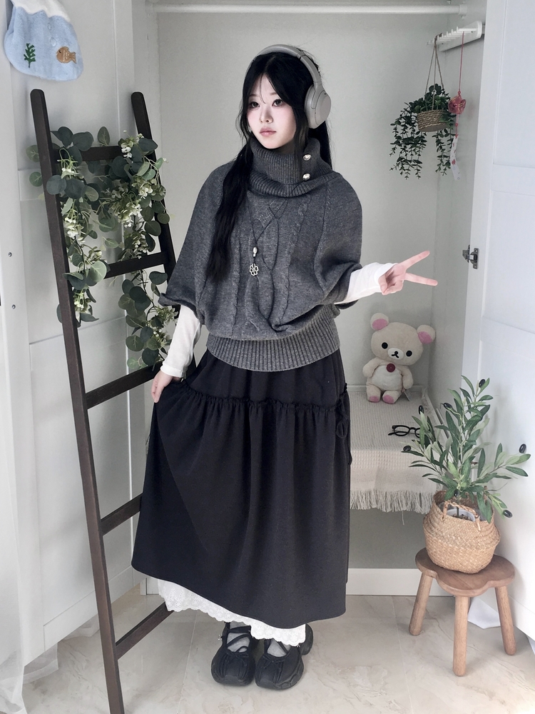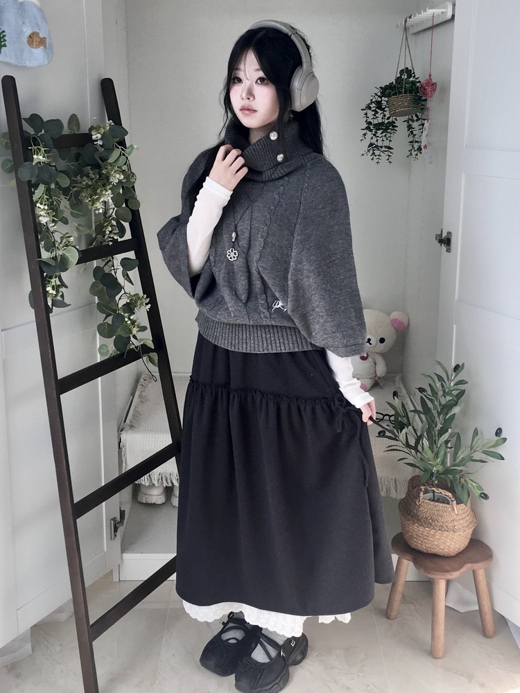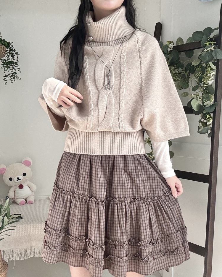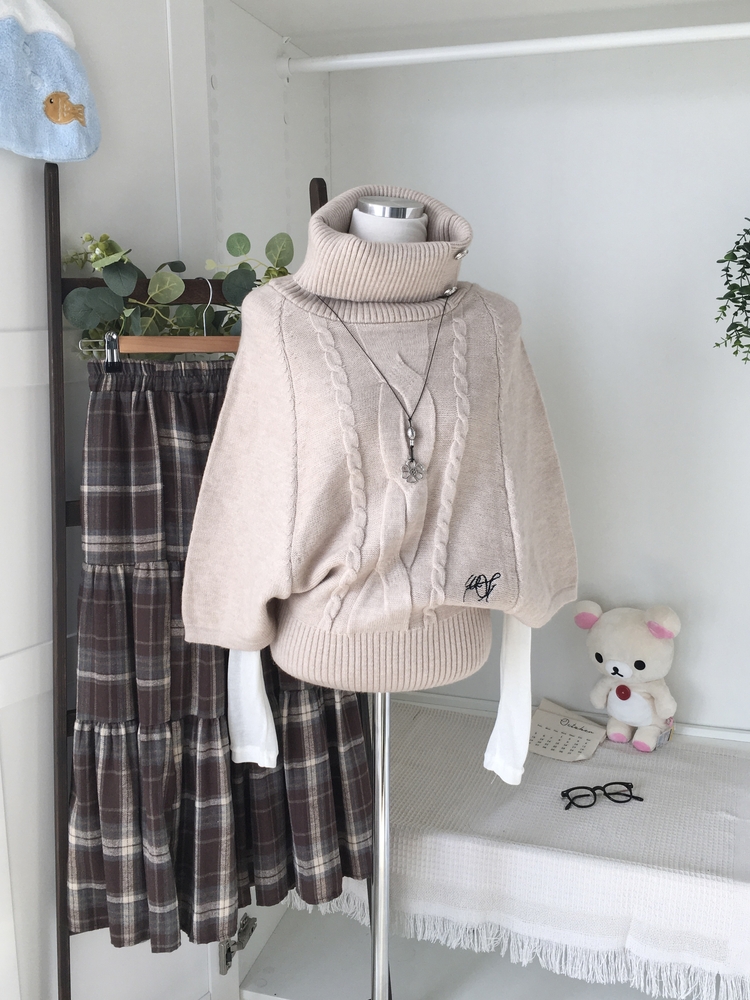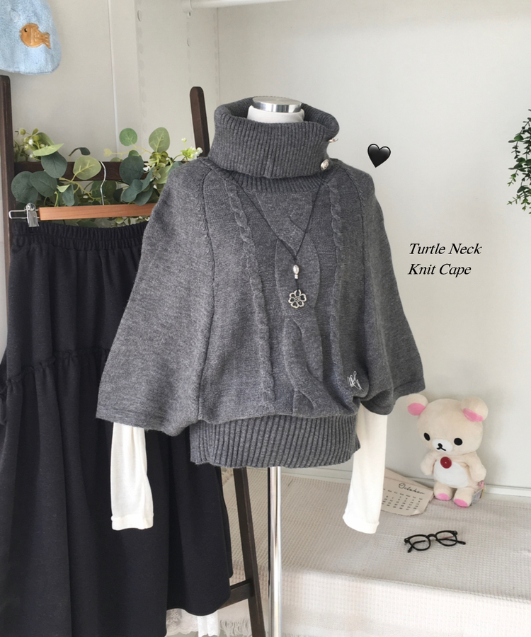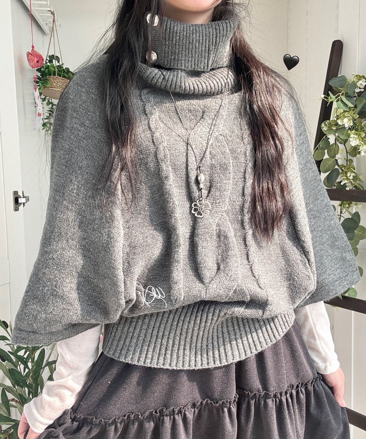 SNT33158 달빛천사 자수 꽈배기 빈티지 대장 모리걸 실버버튼 판초 터틀넥 케이프 망토 니트