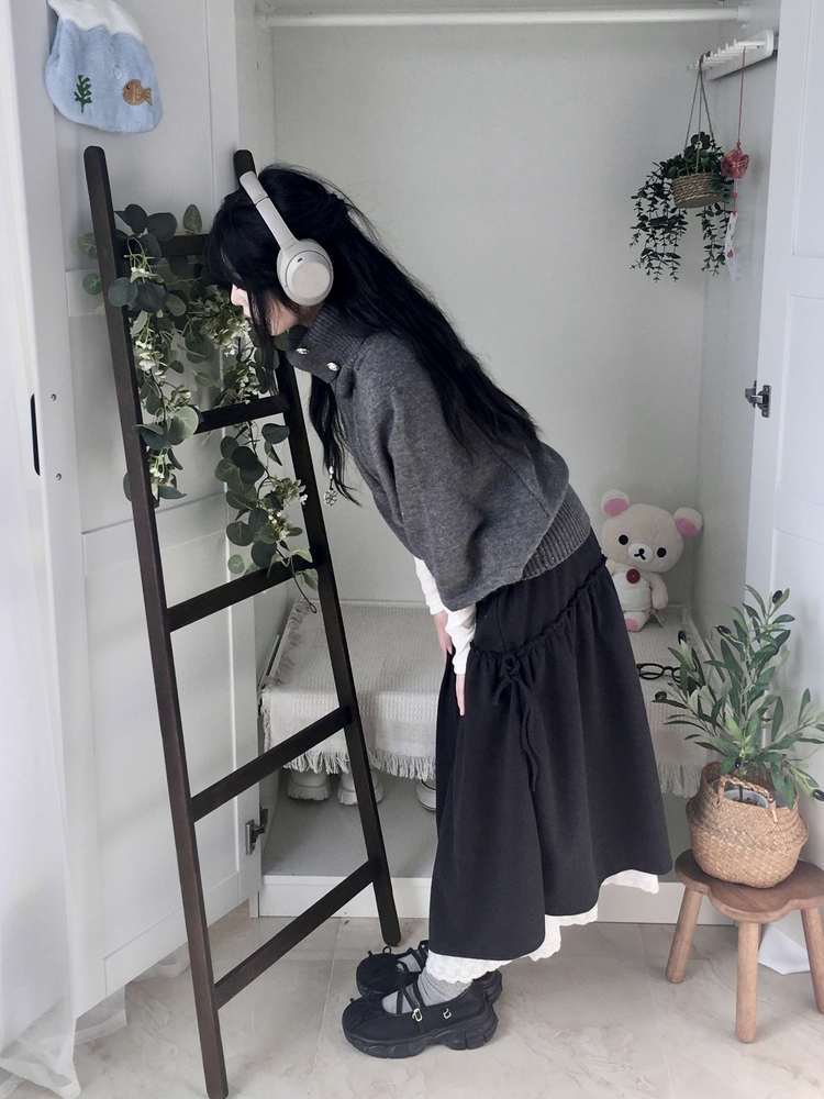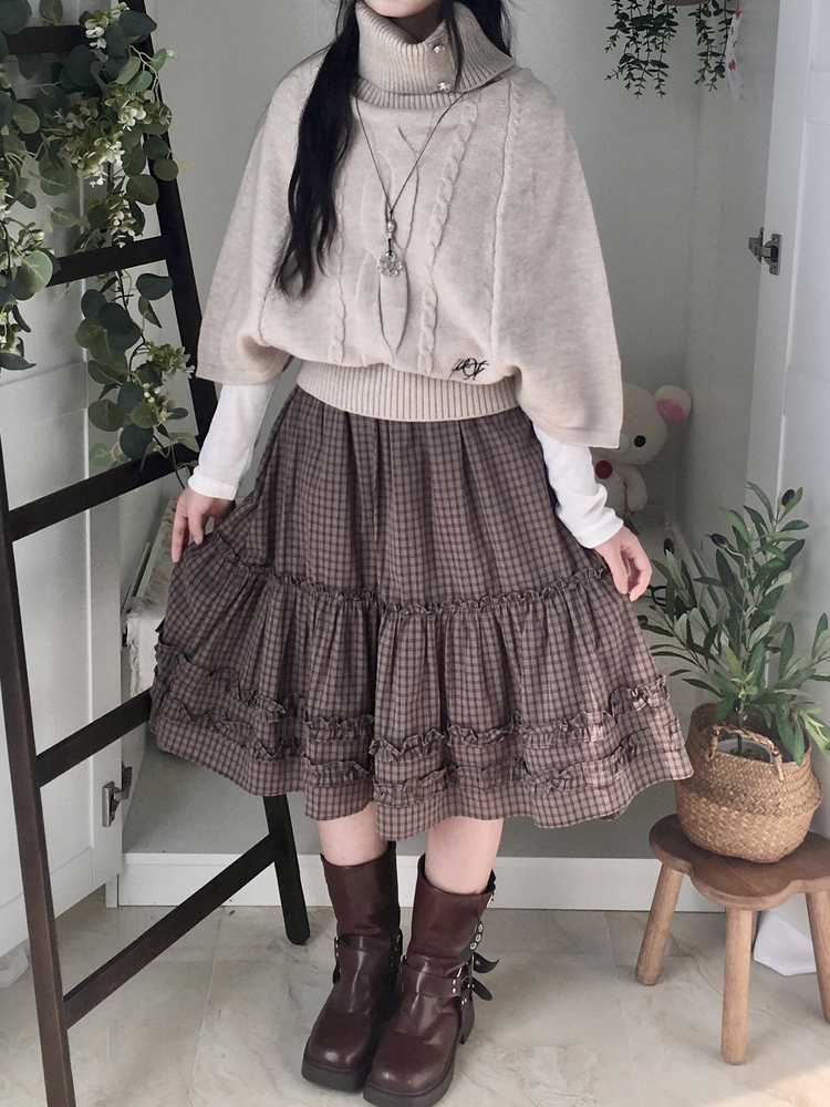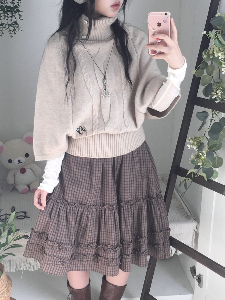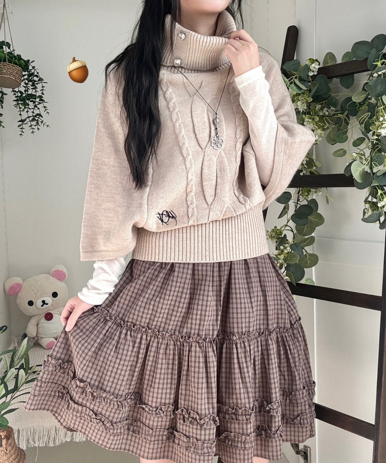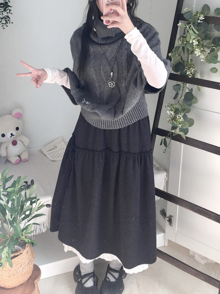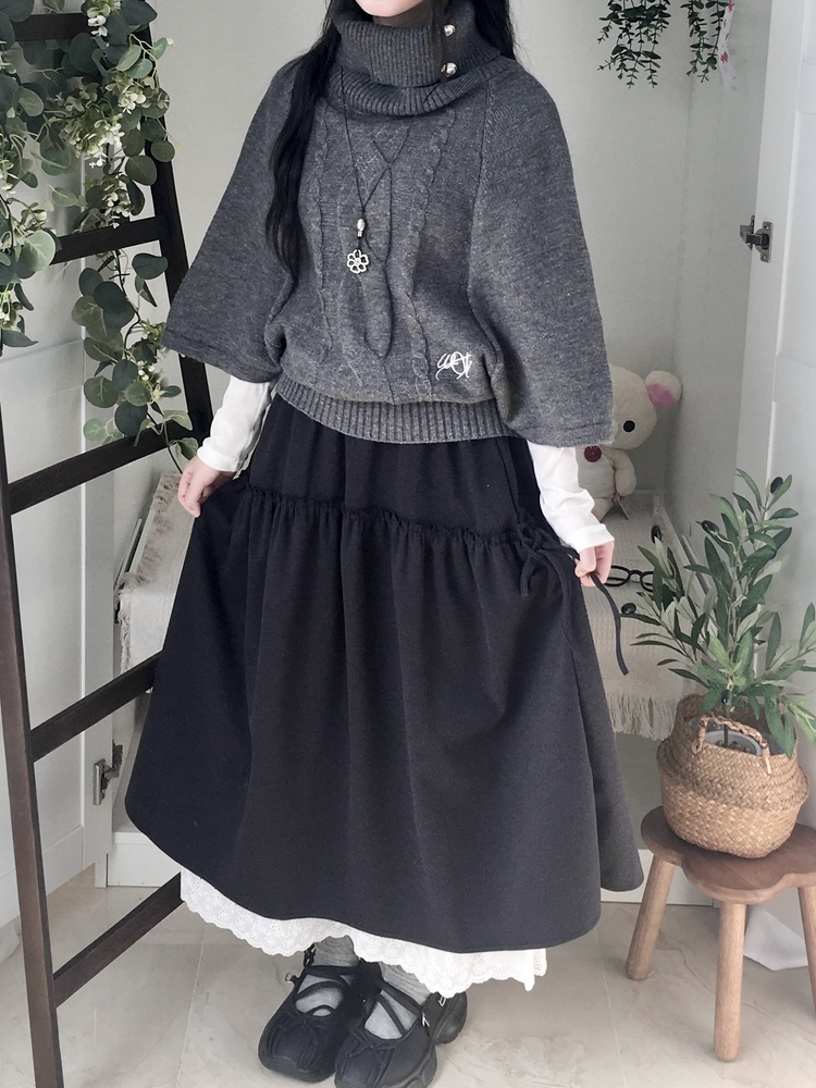 SNT33158 달빛천사 자수 꽈배기 빈티지 대장 모리걸 실버버튼 판초 터틀넥 케이프 망토 니트