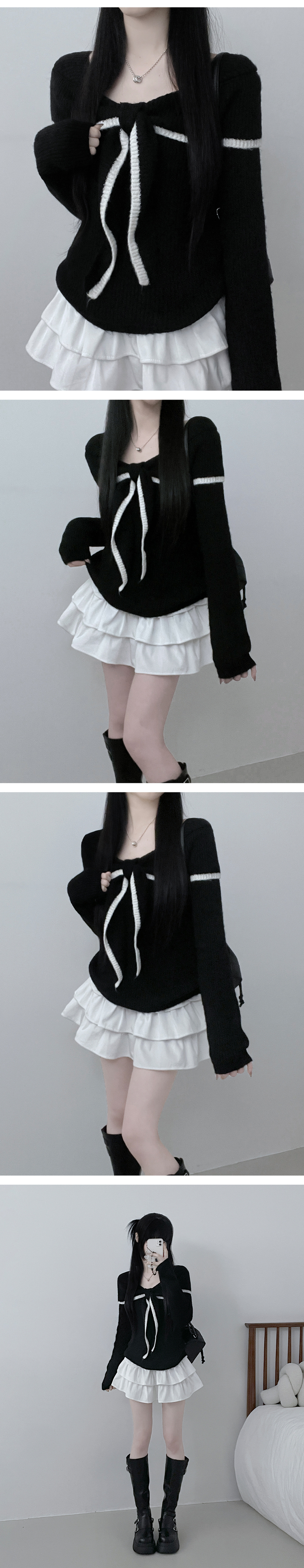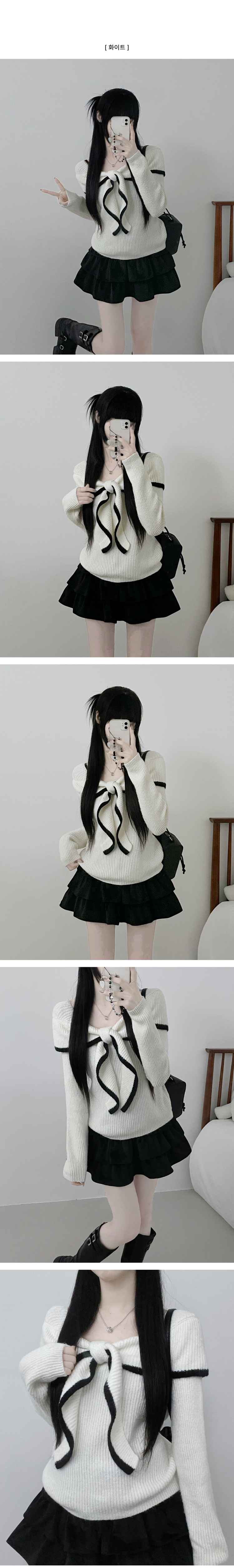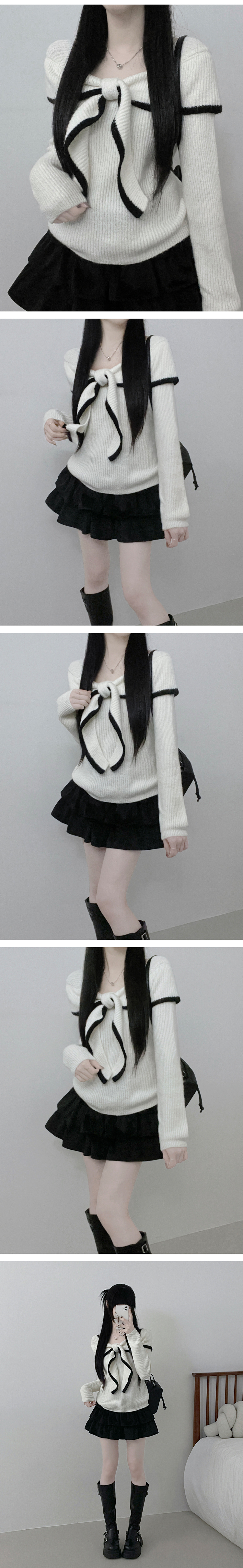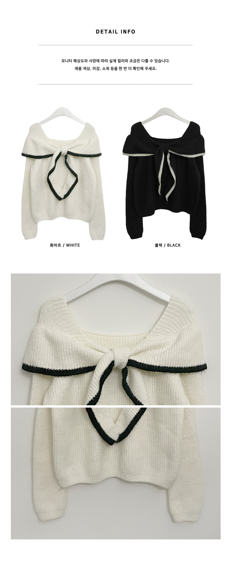 SNT33161 프릴배색리본오프숄더긴팔니트
