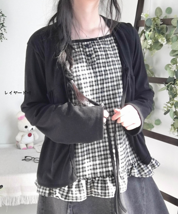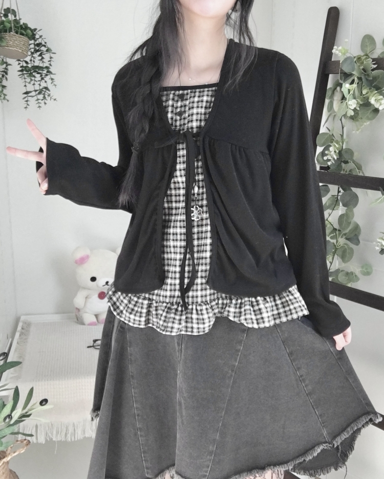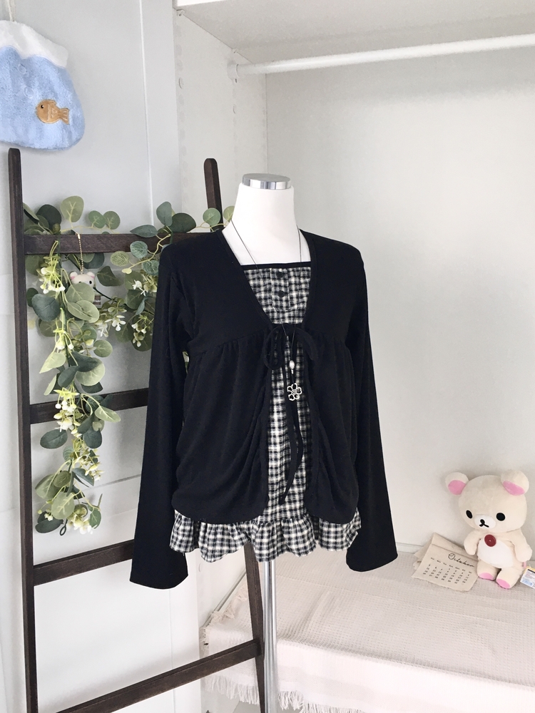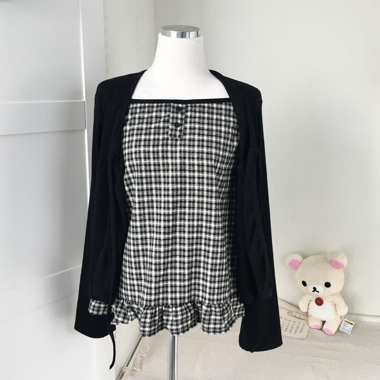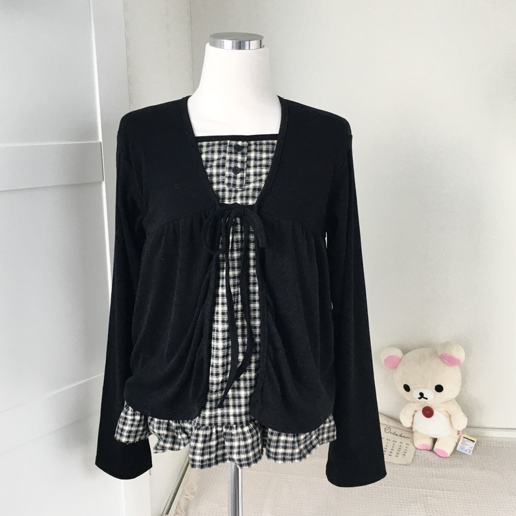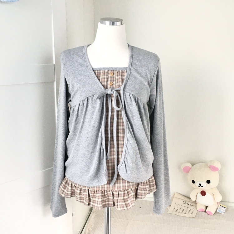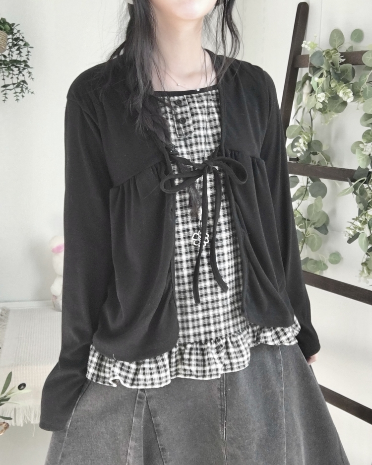 SBS30255 페어리 리본 프릴 체 나시 일체형 반팔 블라우스 나시 바선생 레이스