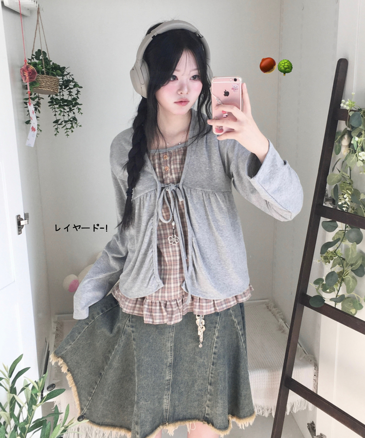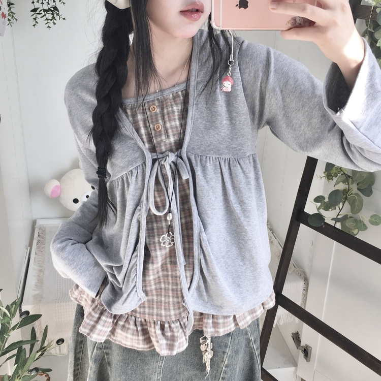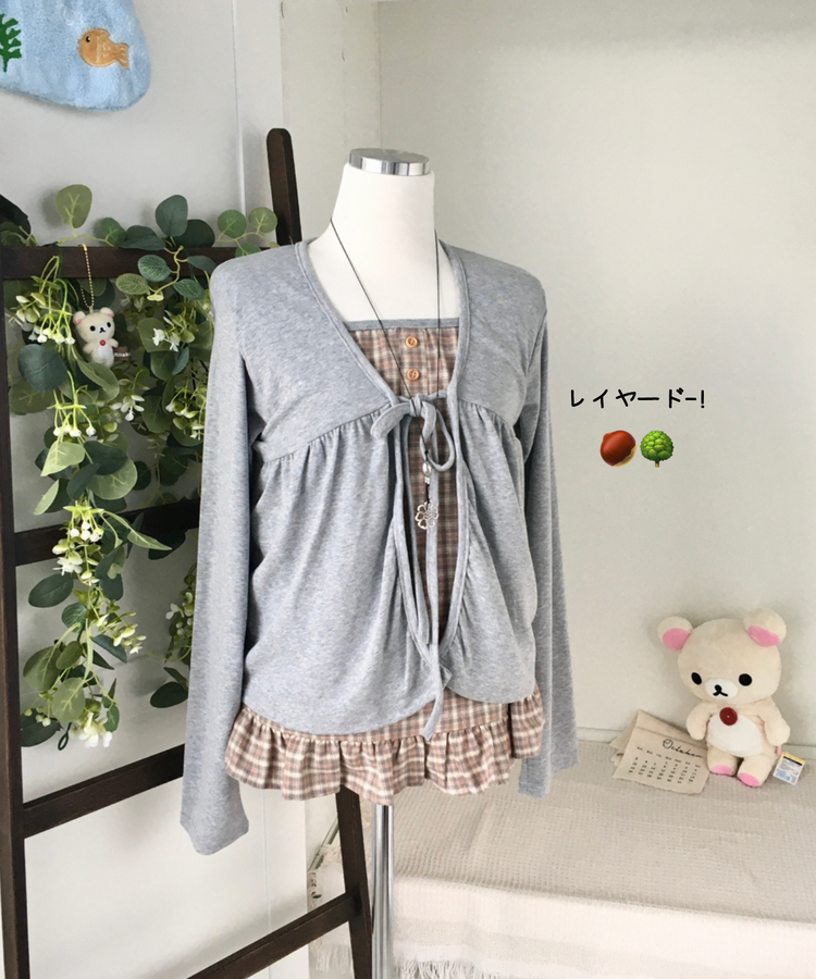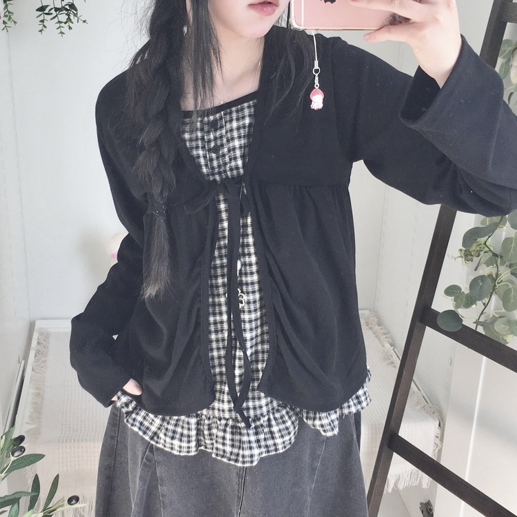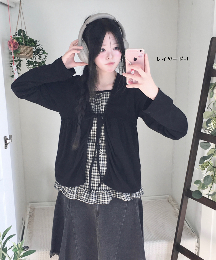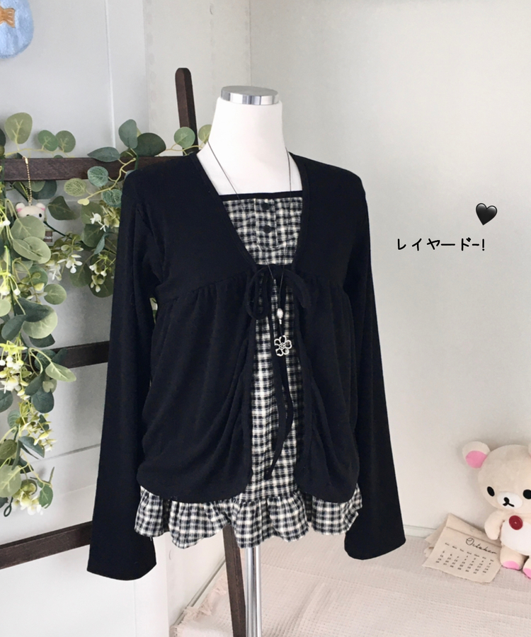 SBS30255 페어리 리본 프릴 체 나시 일체형 반팔 블라우스 나시 바선생 레이스