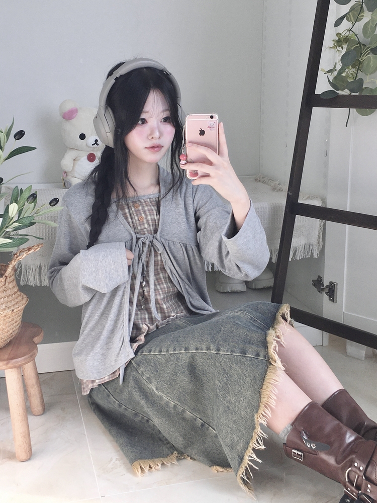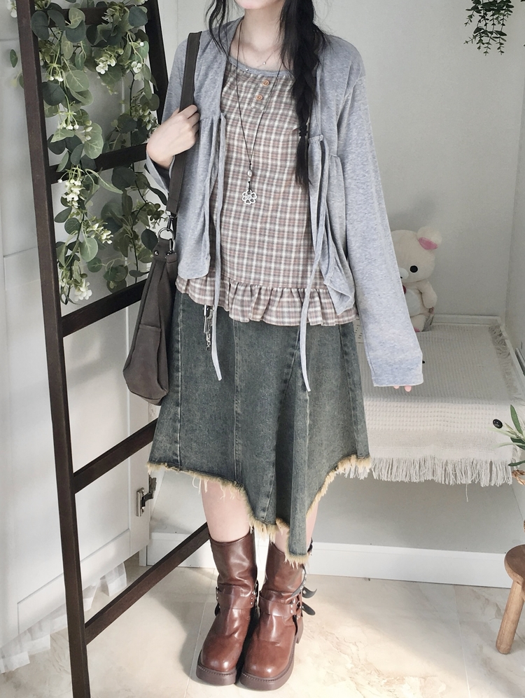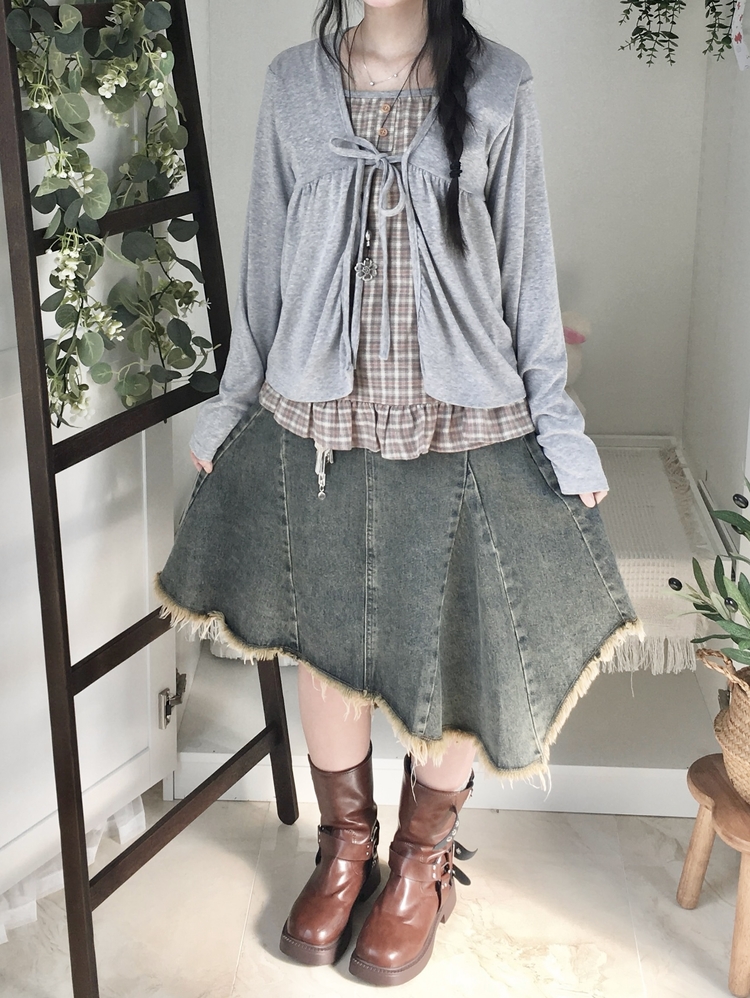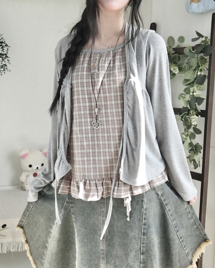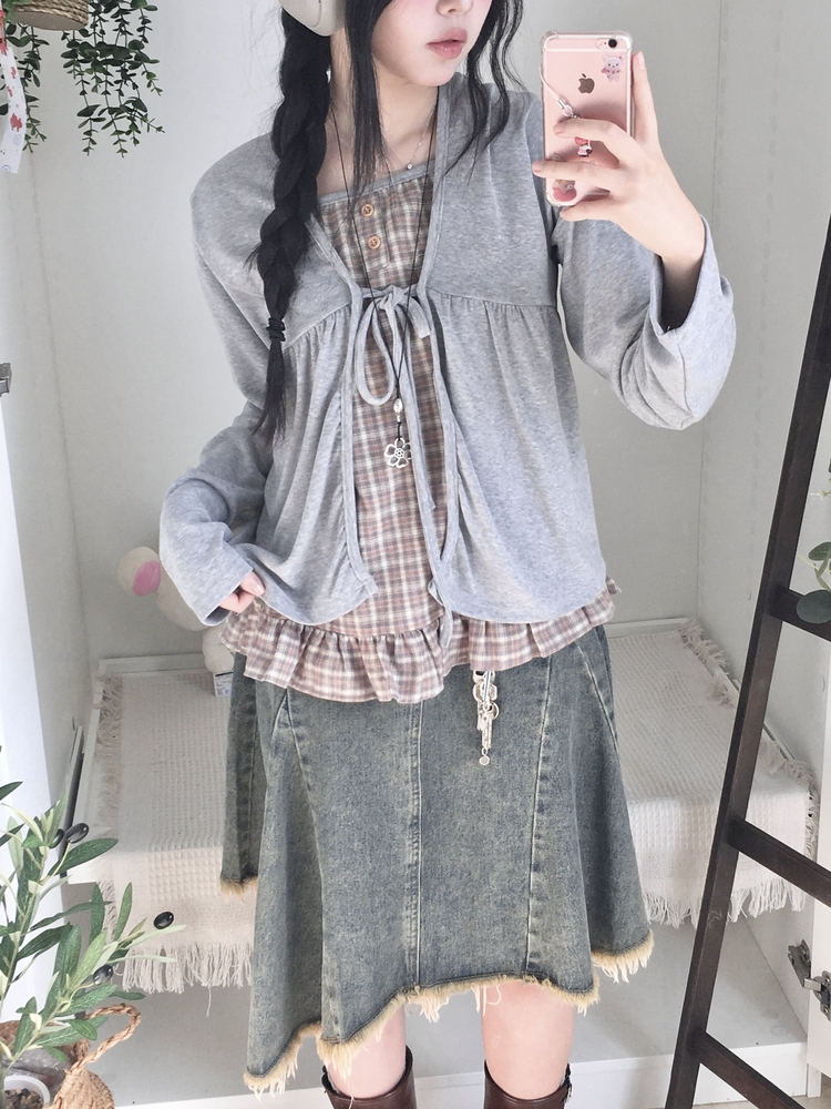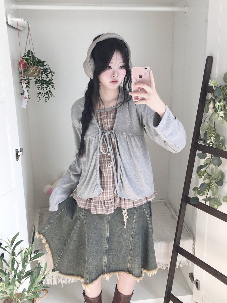 SBS30255 페어리 리본 프릴 체 나시 일체형 반팔 블라우스 나시 바선생 레이스