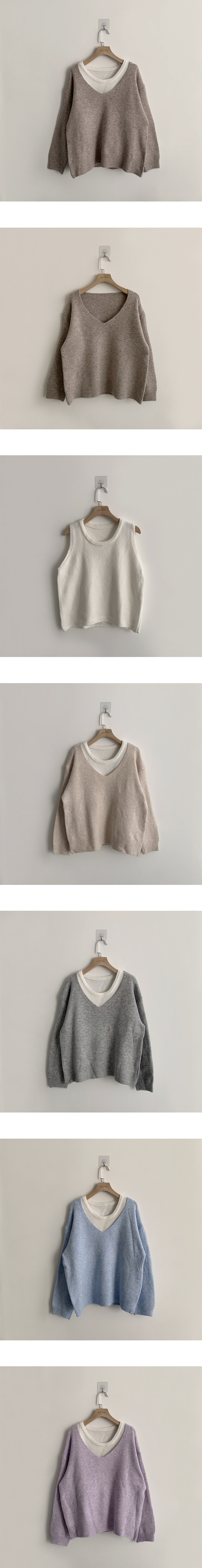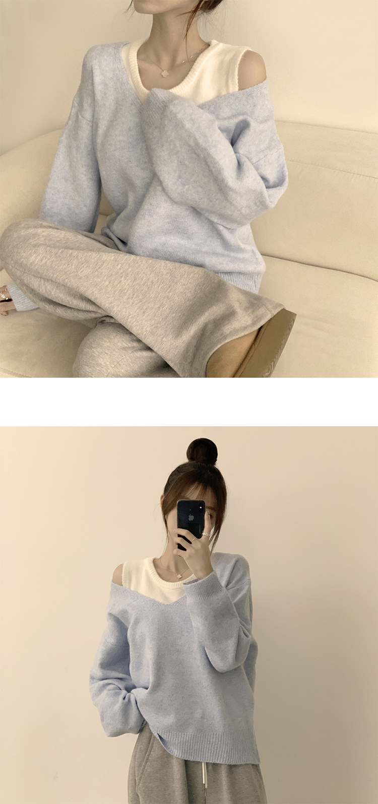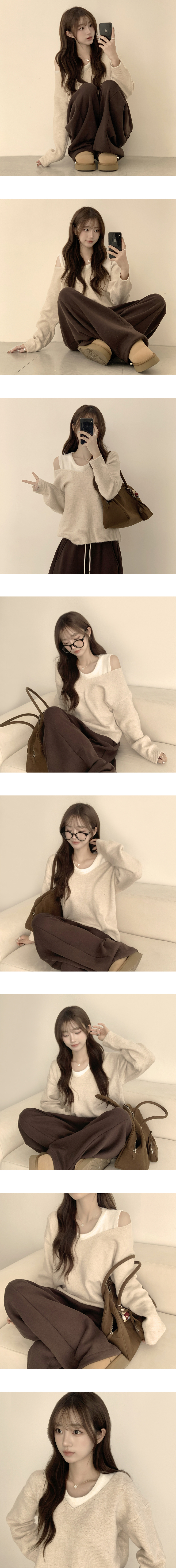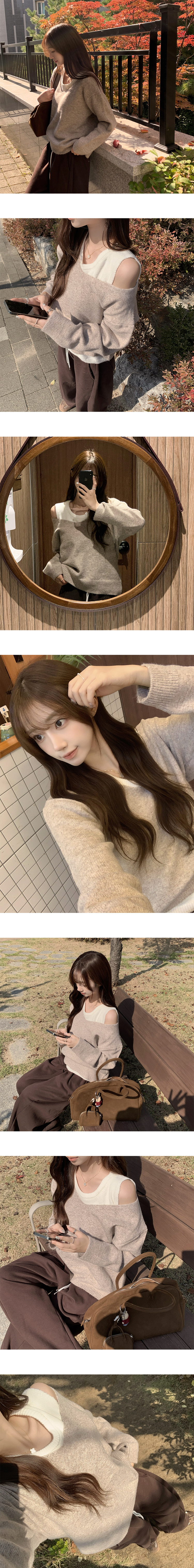SNT33187 폴 가을 긴팔 오버핏 니트 보트넥 루즈핏 나시 니트 세트