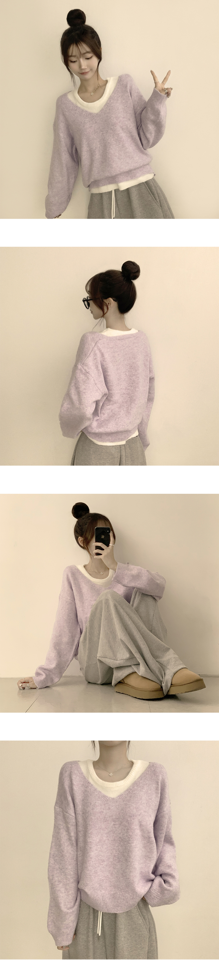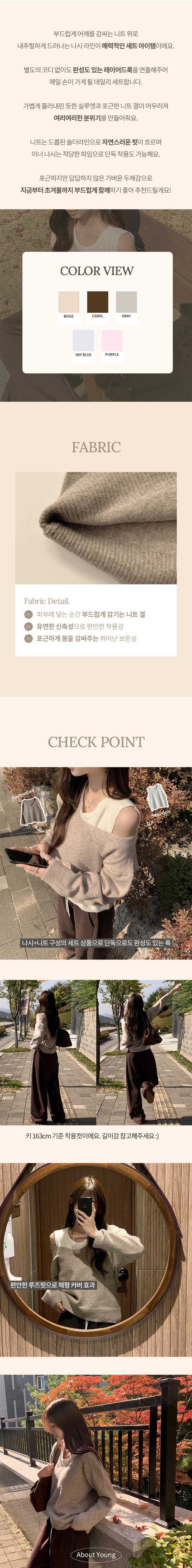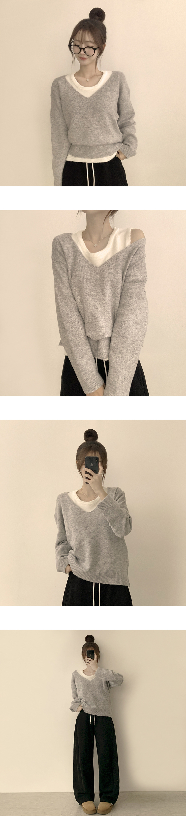 SNT33187 폴 가을 긴팔 오버핏 니트 보트넥 루즈핏 나시 니트 세트