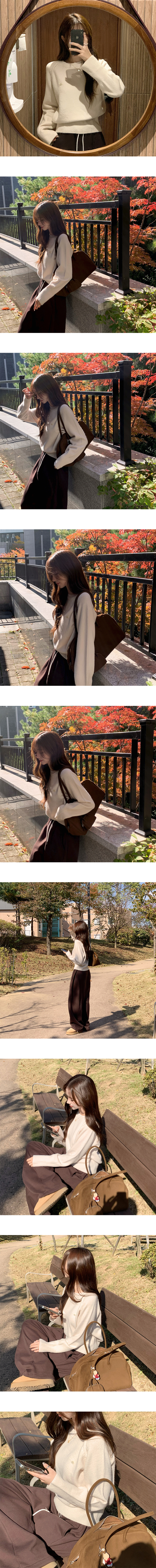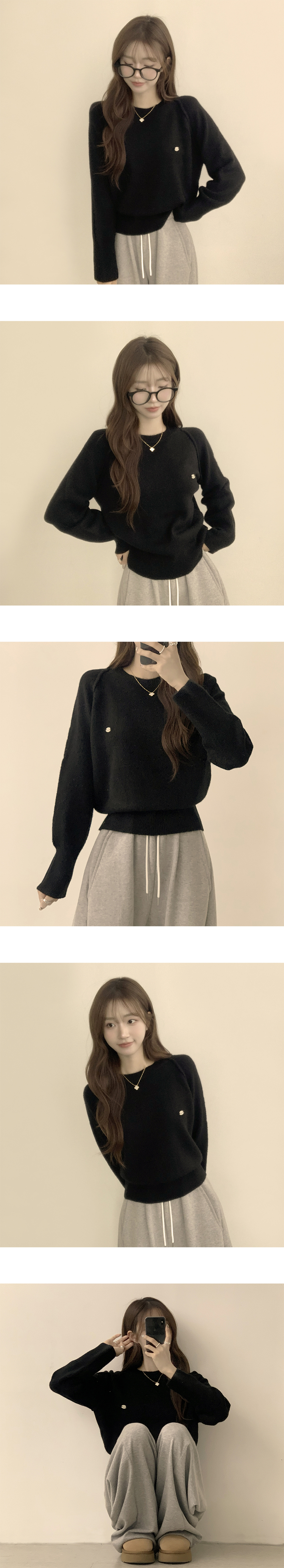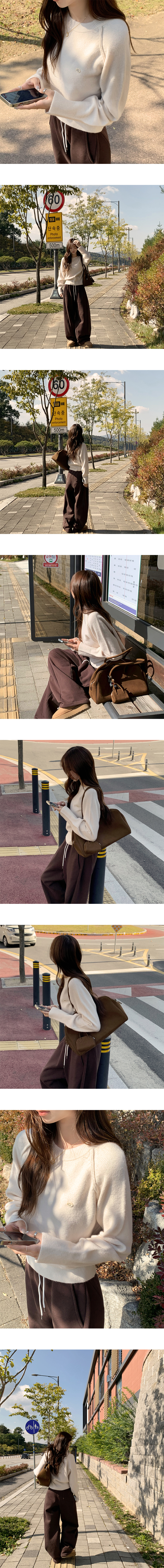 SNT33188 라라 라운드 허리잘록 와펜 가을 긴팔 니트 루즈핏 겨울 상의 데일리 오버핏 긴팔티