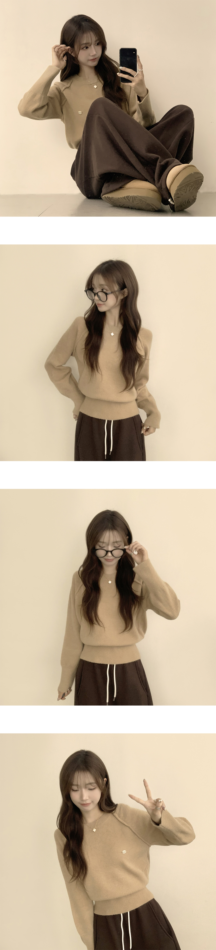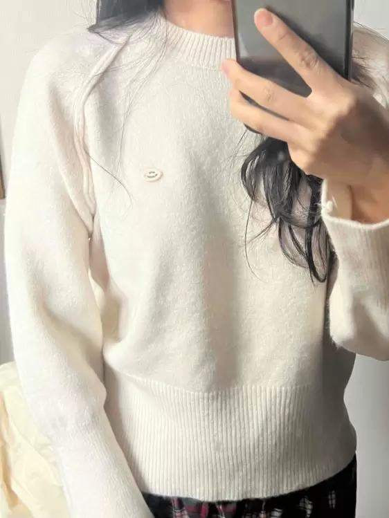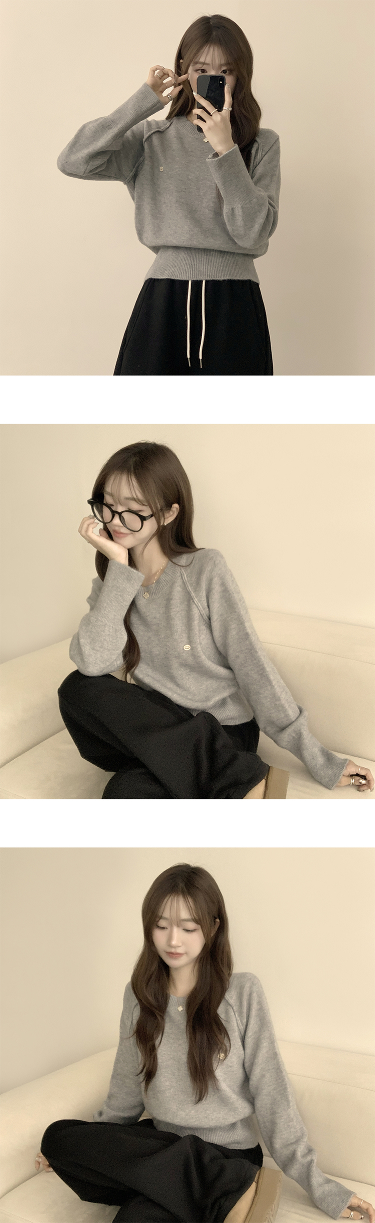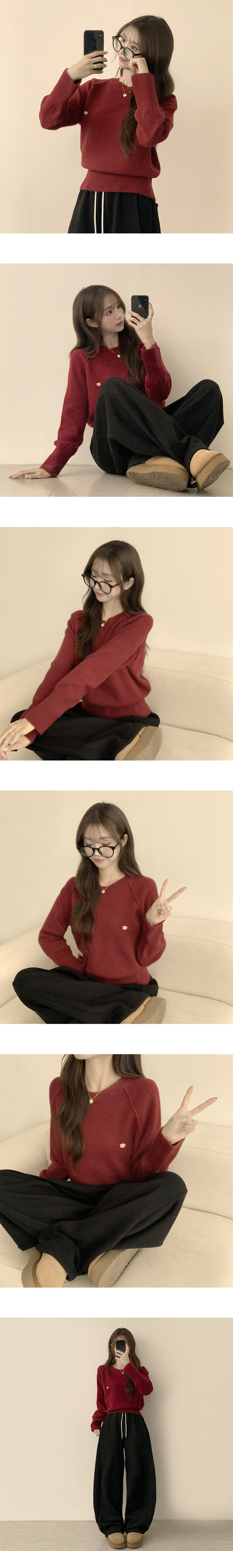 SNT33188 라라 라운드 허리잘록 와펜 가을 긴팔 니트 루즈핏 겨울 상의 데일리 오버핏 긴팔티