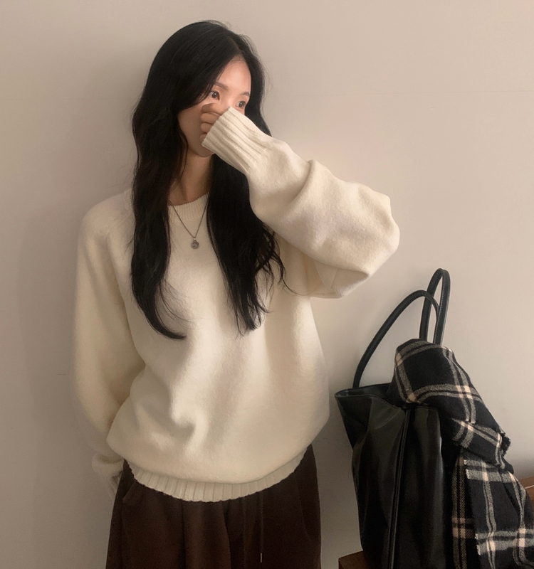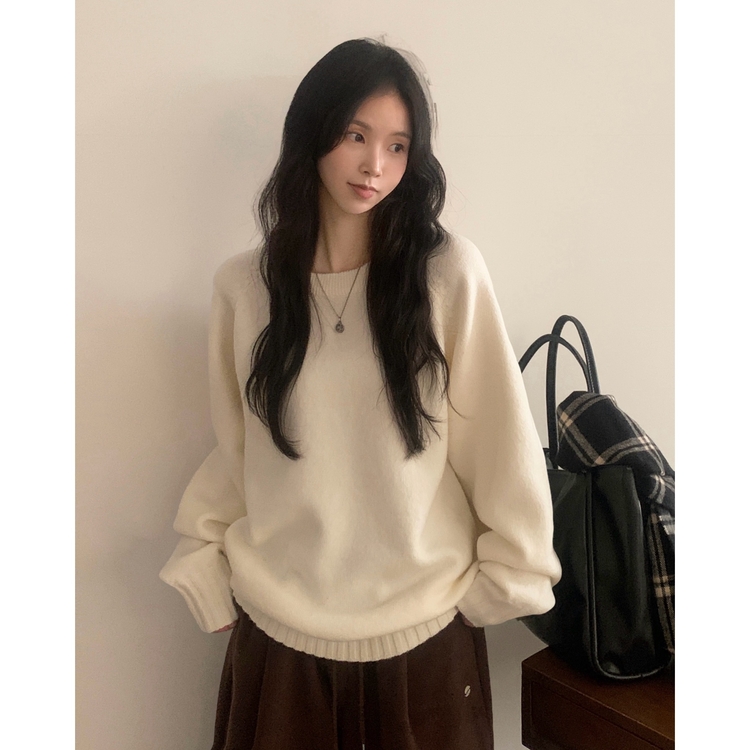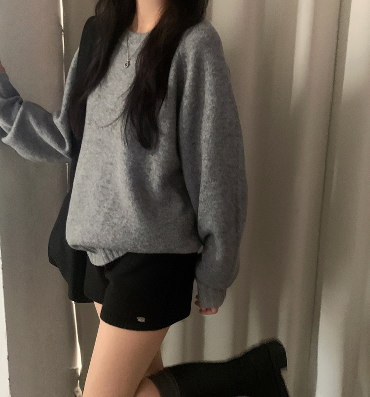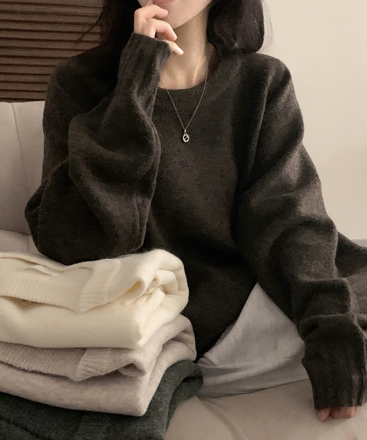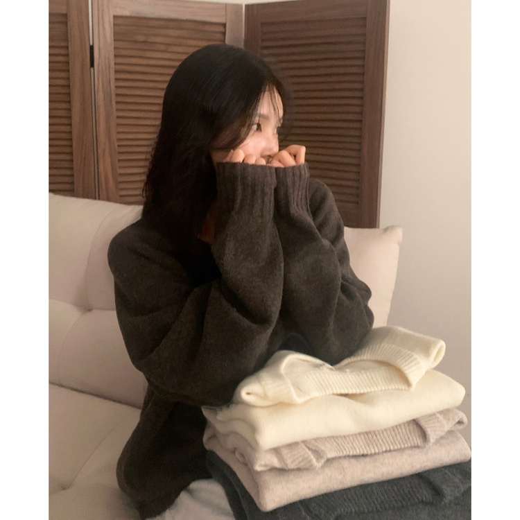 SNT33206 윈터 데일리 나그랑 라운드 루즈핏 울 긴팔니트