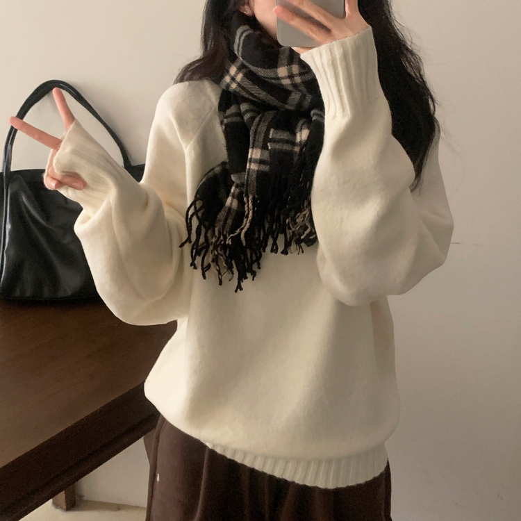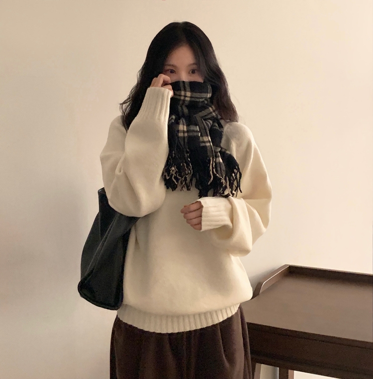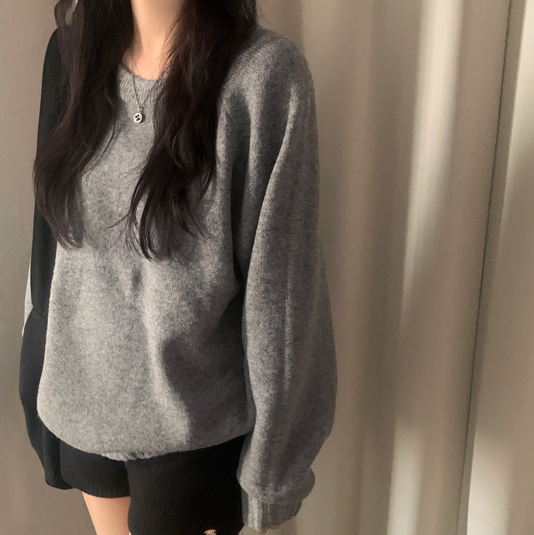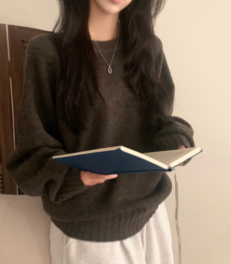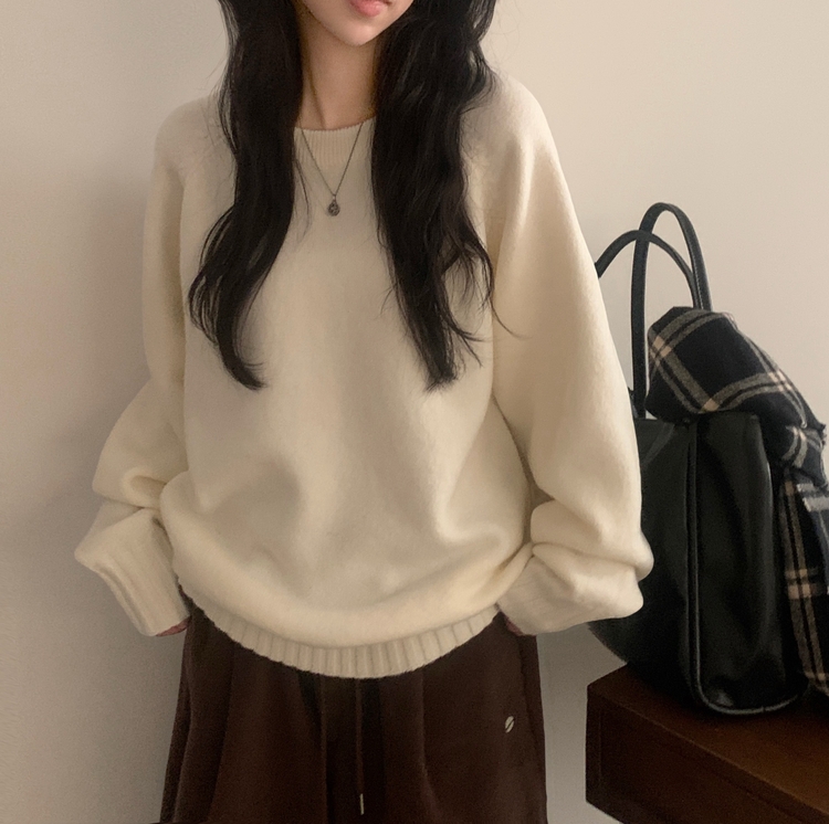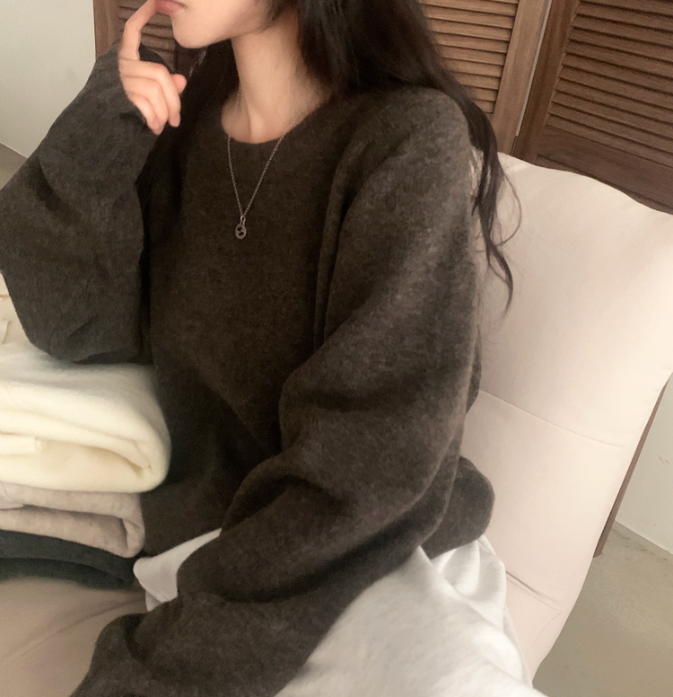 SNT33206 윈터 데일리 나그랑 라운드 루즈핏 울 긴팔니트