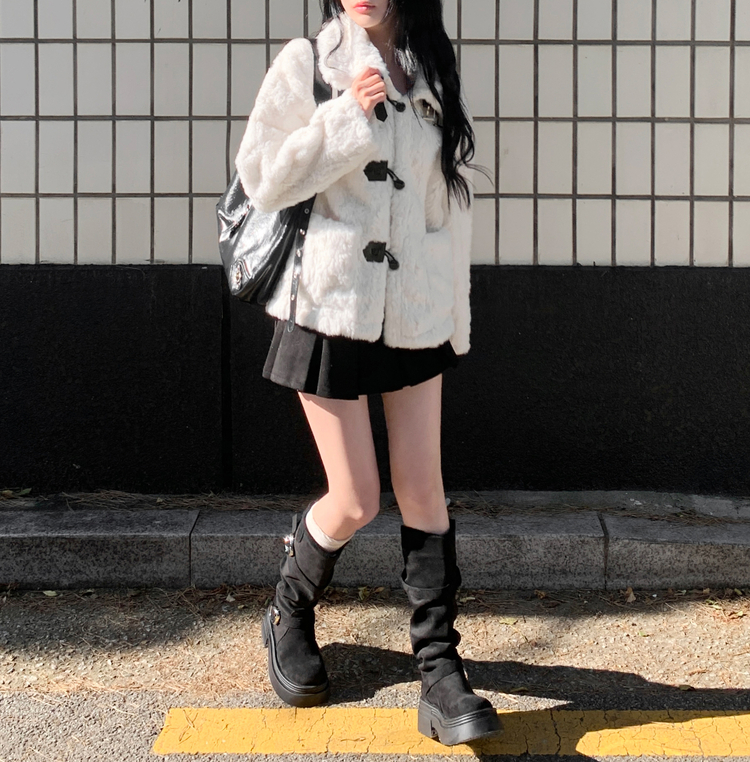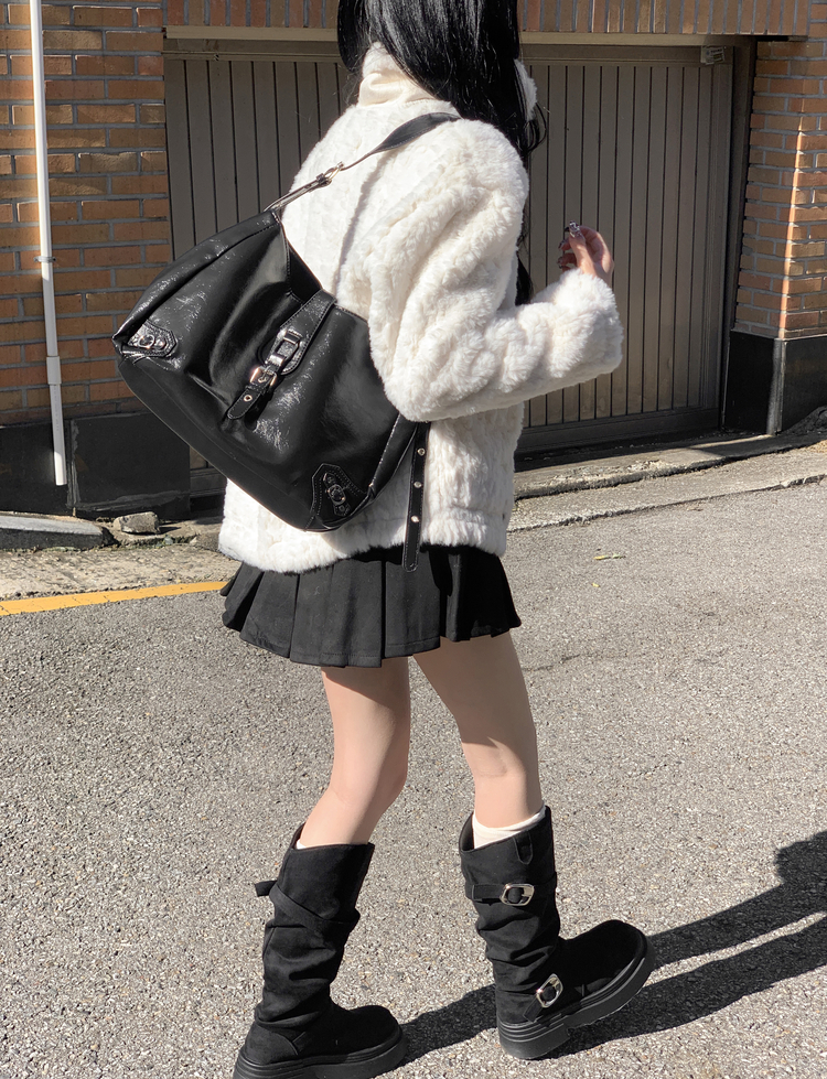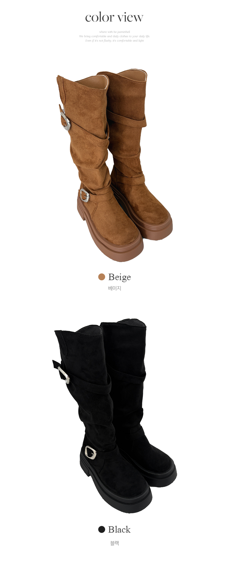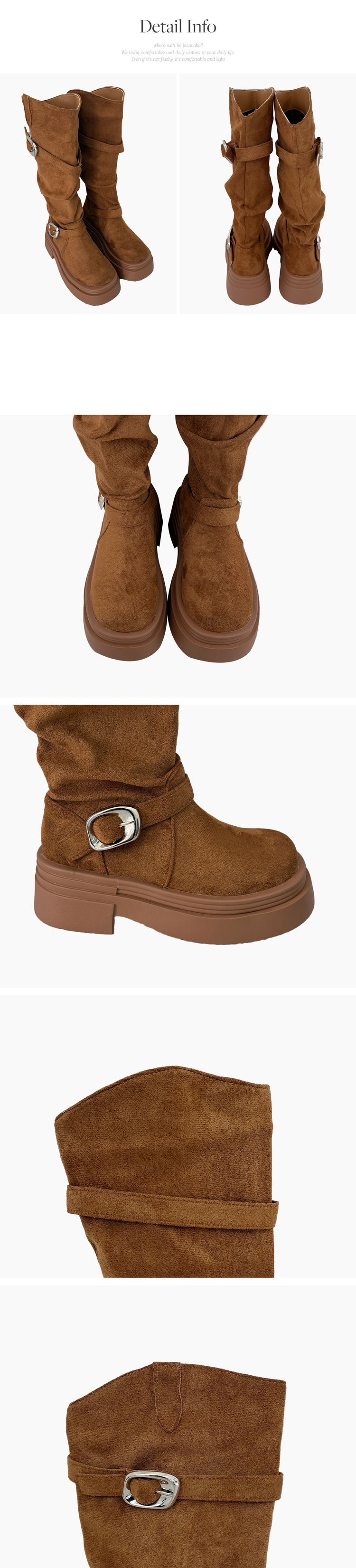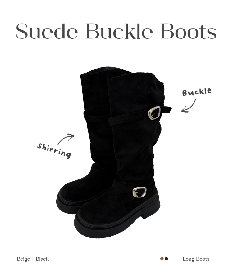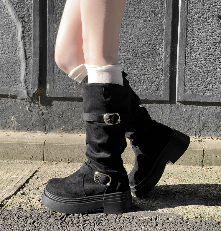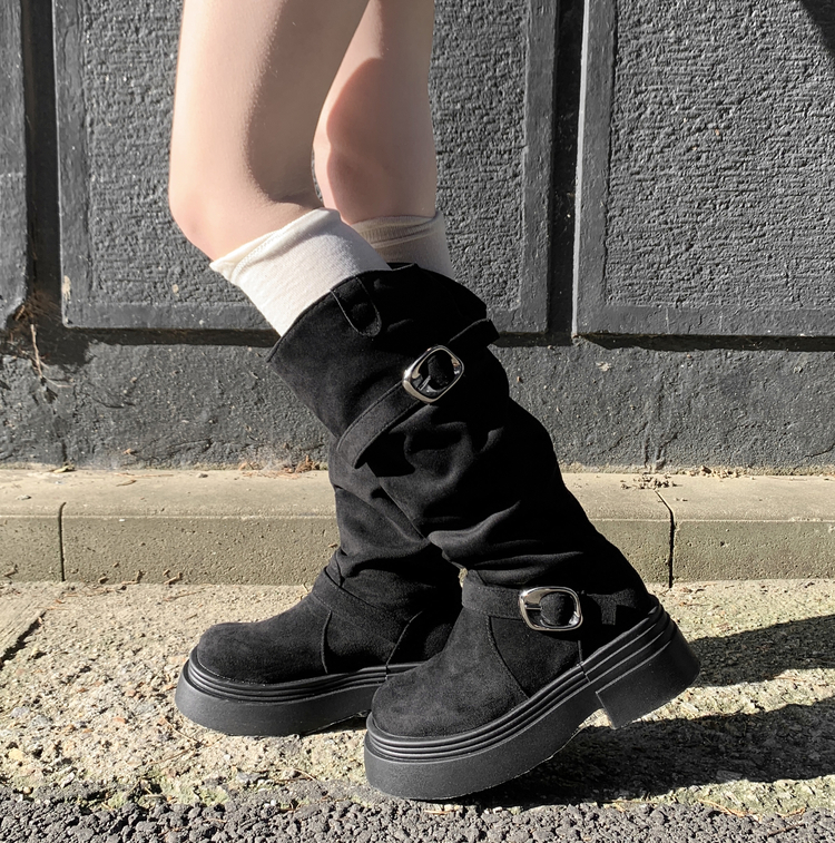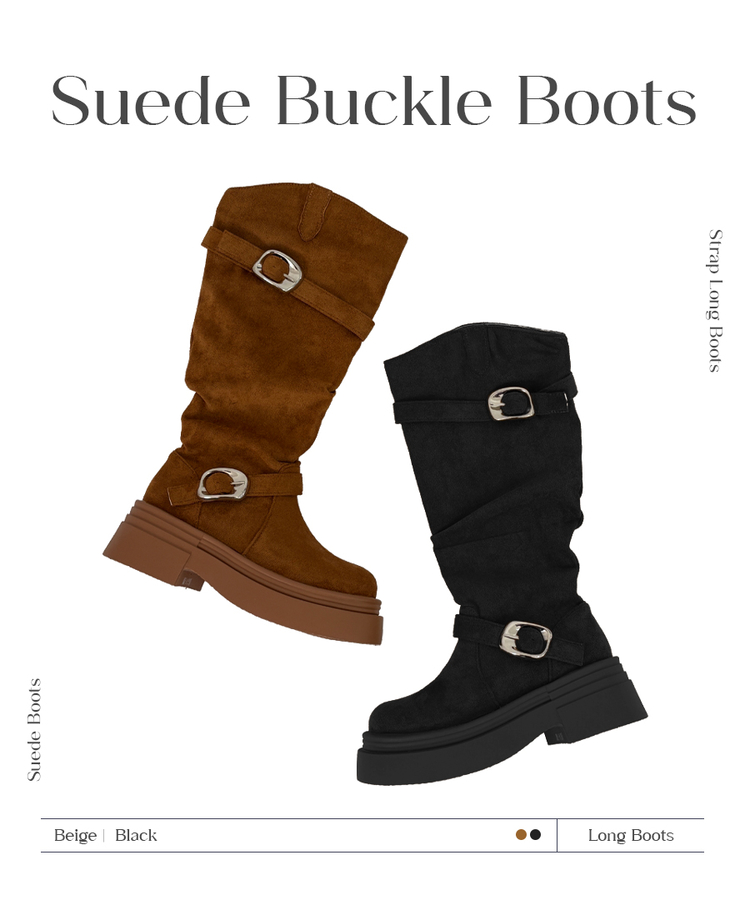 SSH2066 센카 스웨이드 통굽 키높이 버클 스트랩 롱 부츠