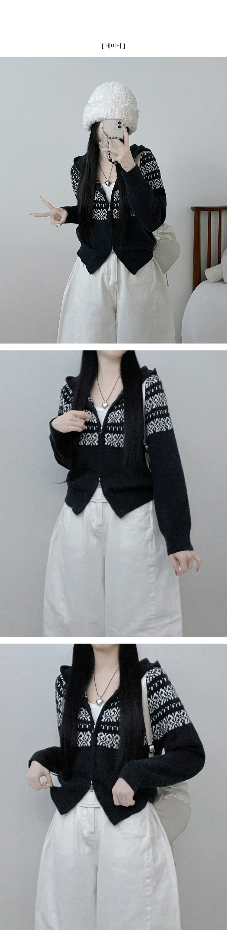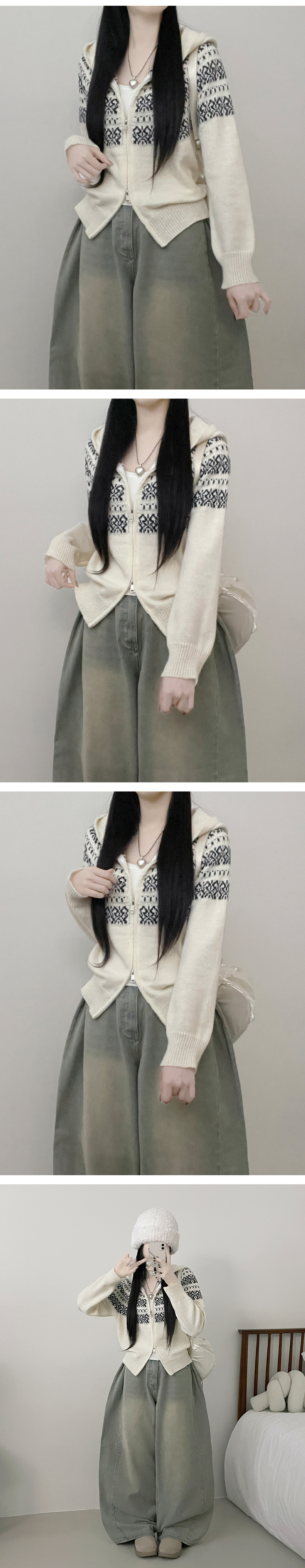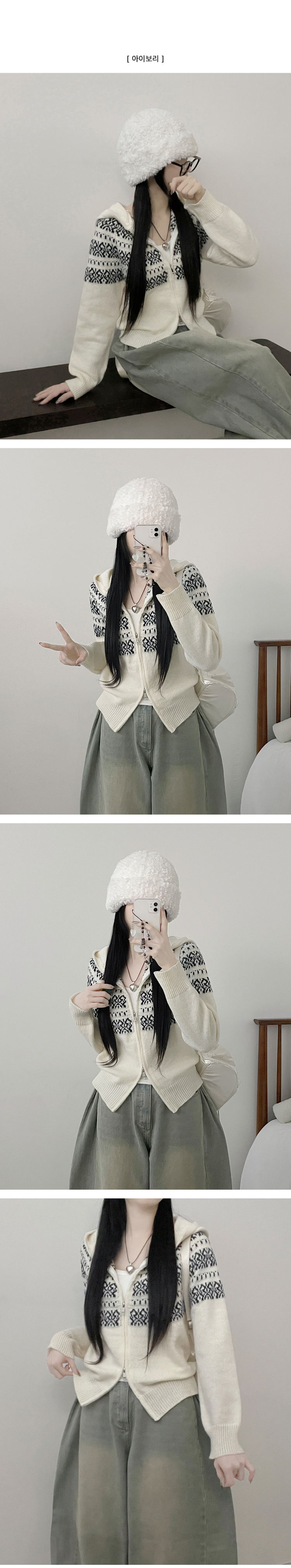 SJP18694 씨오노르딕패턴루즈핏니트투웨이후드집업