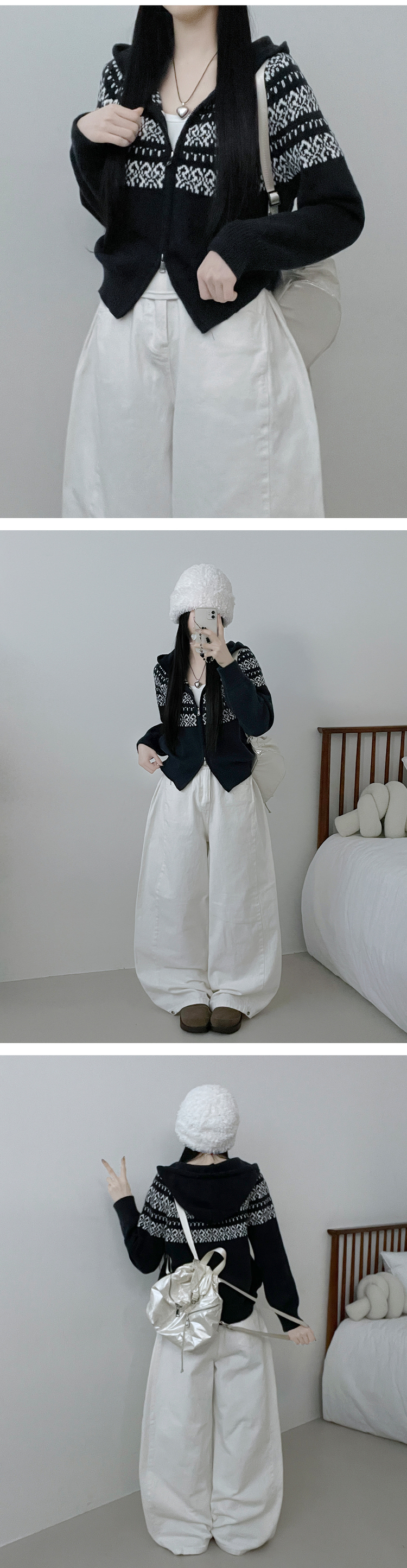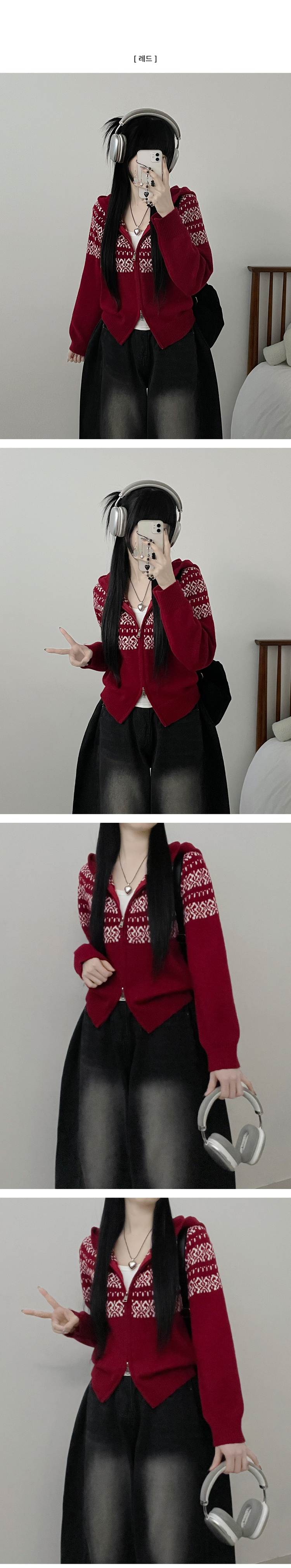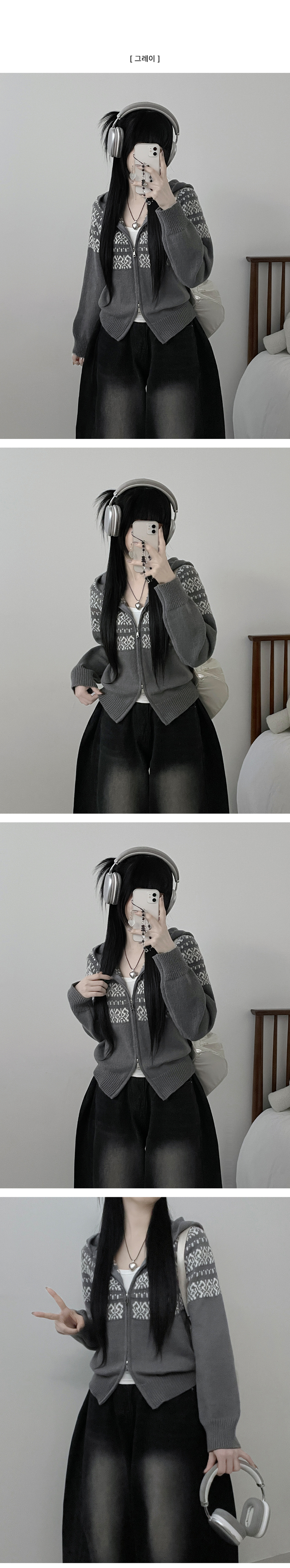 SJP18694 씨오노르딕패턴루즈핏니트투웨이후드집업