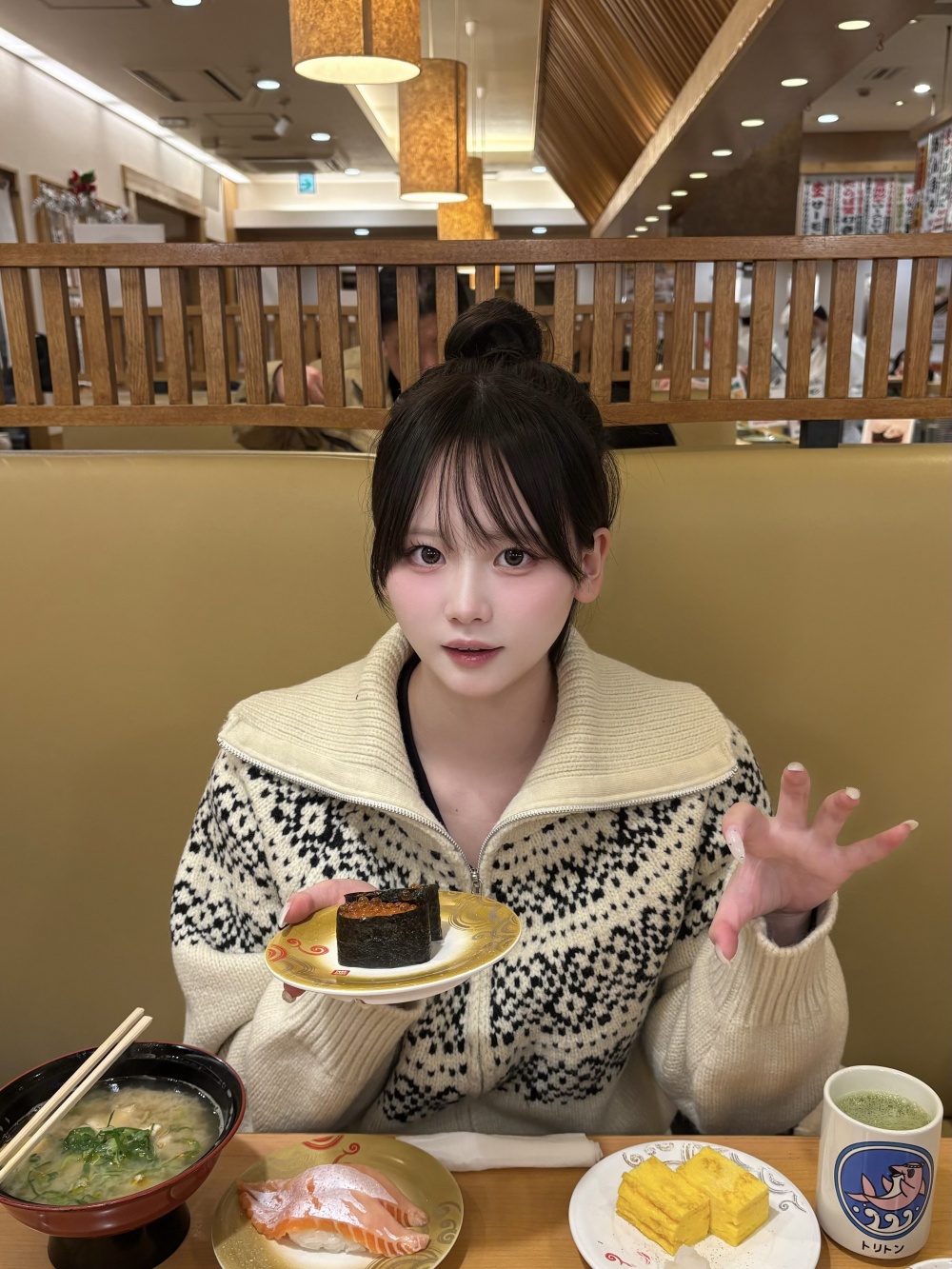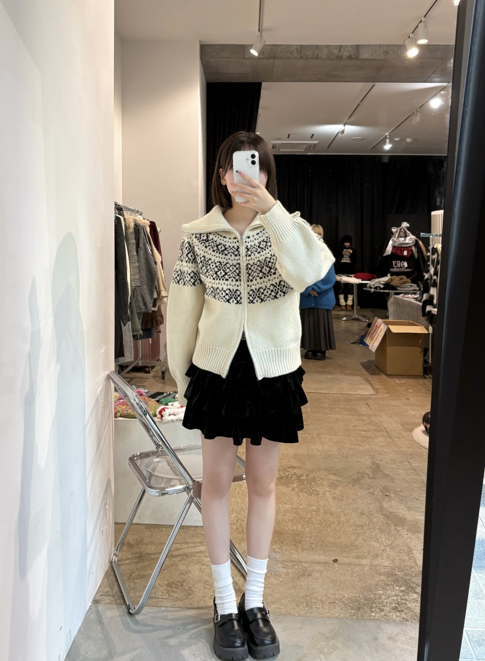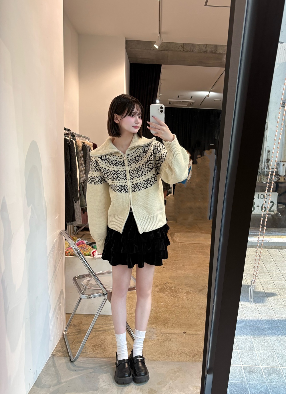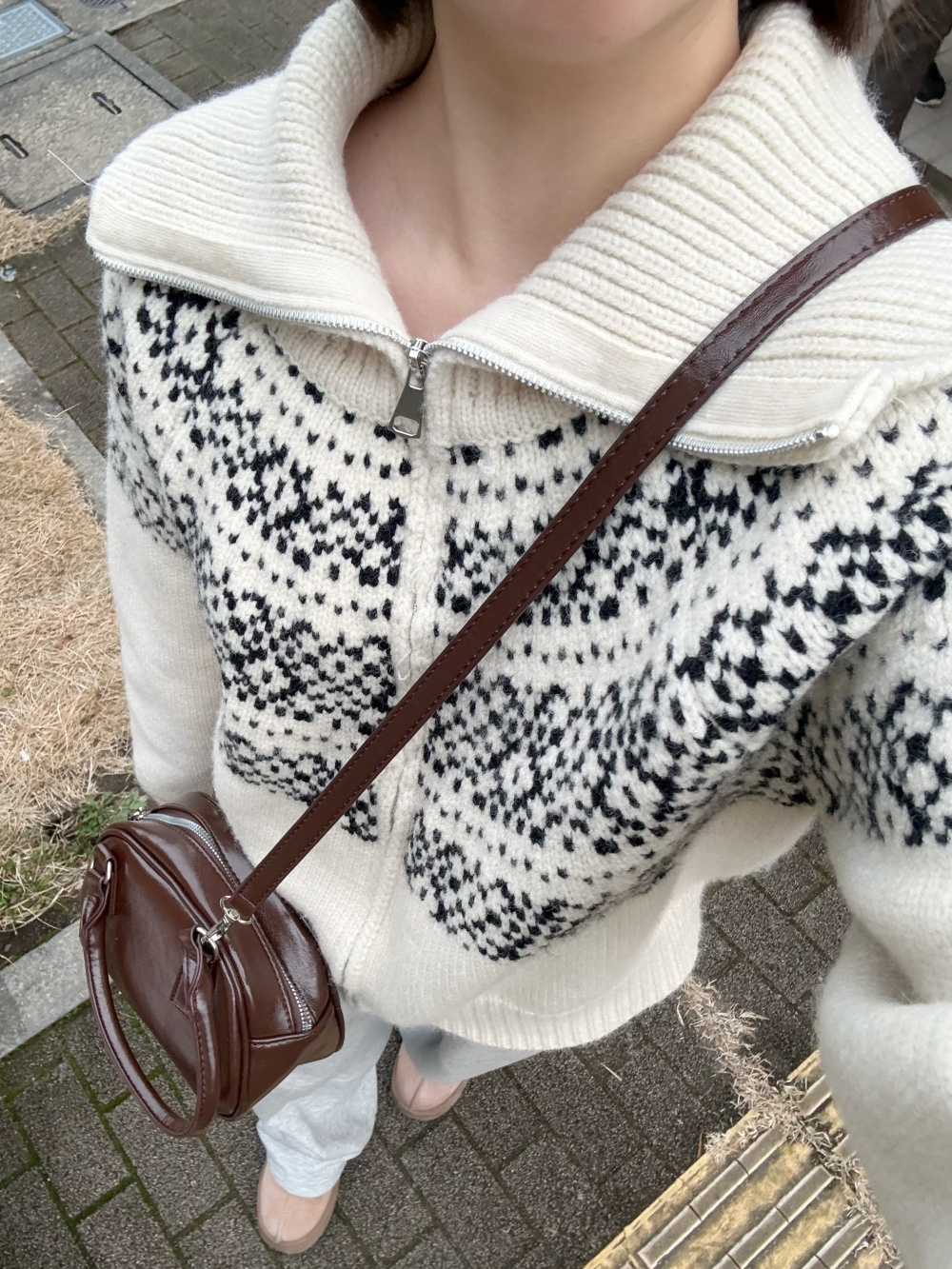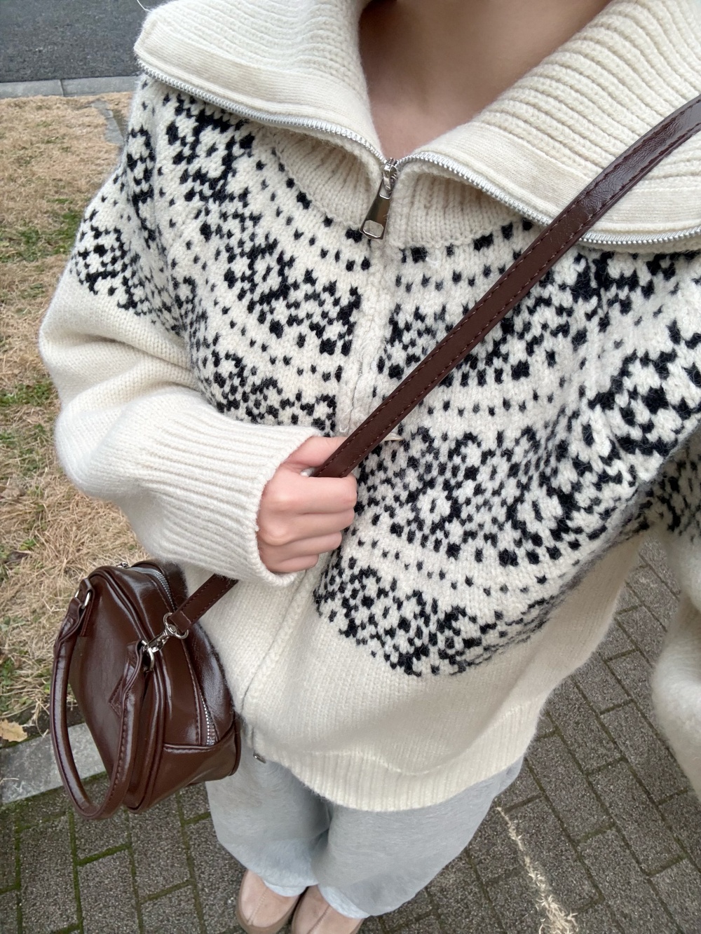 SNT33282 마블링 노르딕 니트 집업
