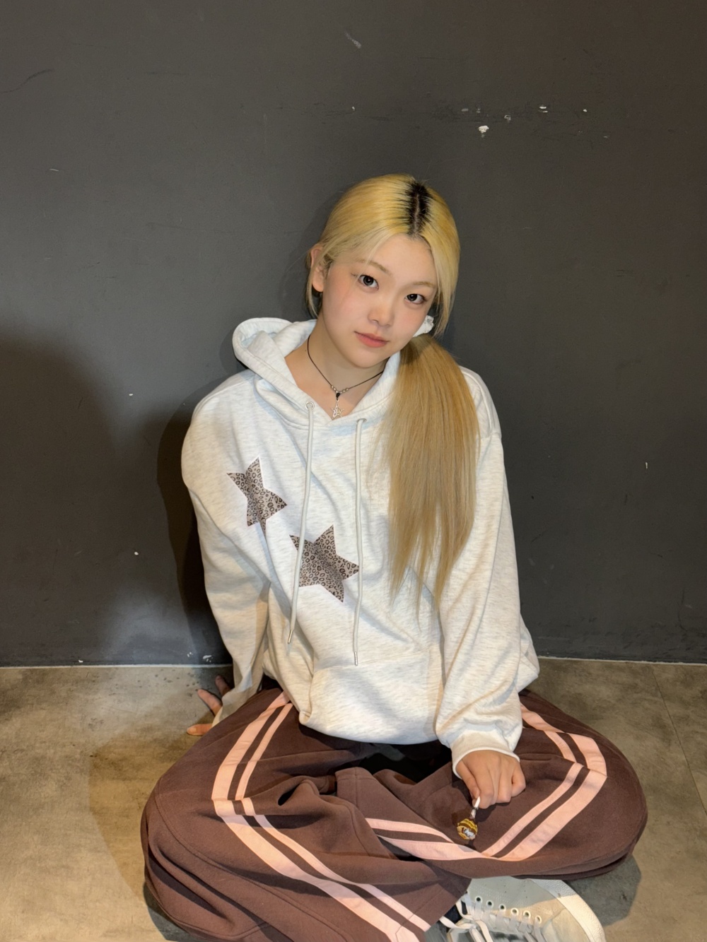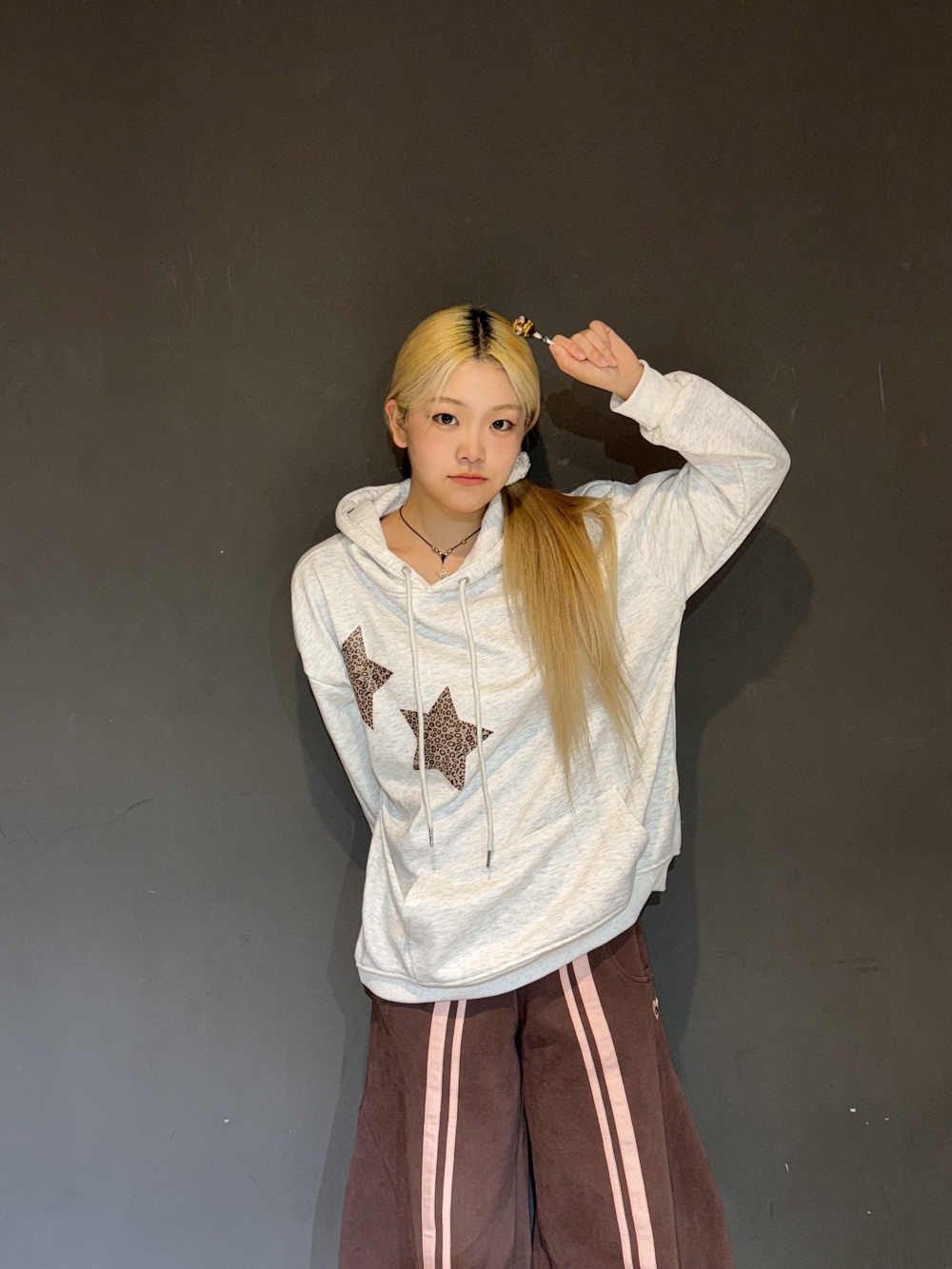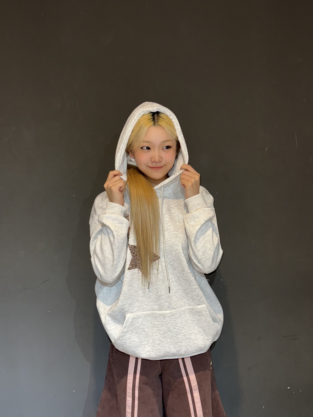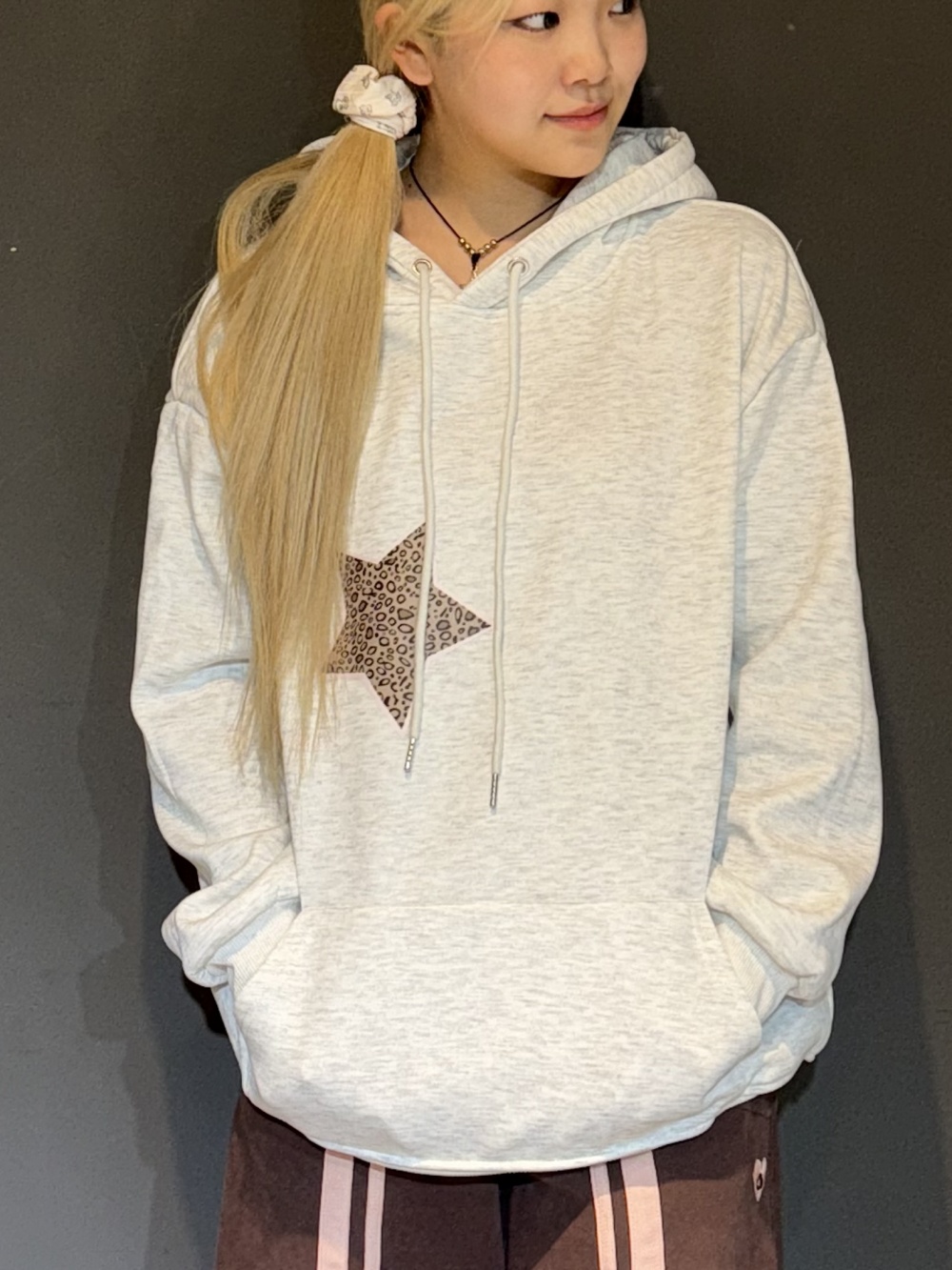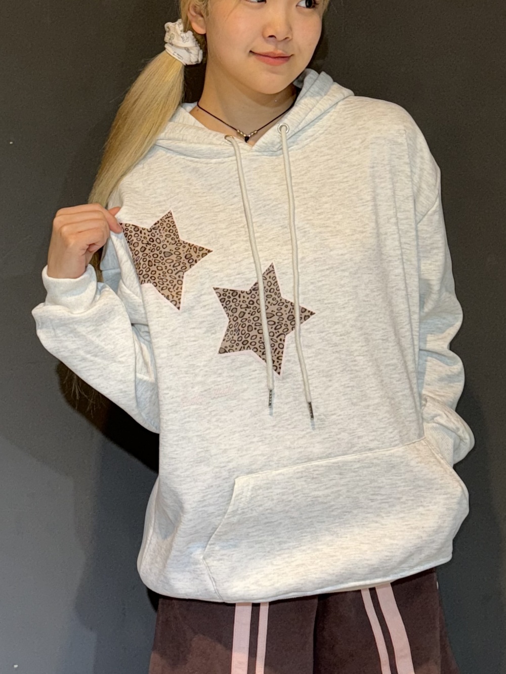 STS73460 (기모)투스타 레오파드 별패치 후드