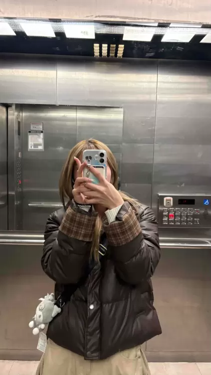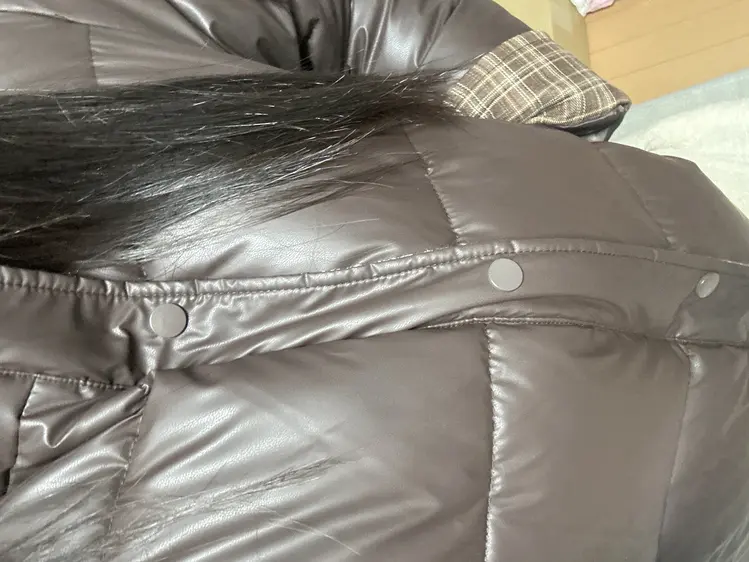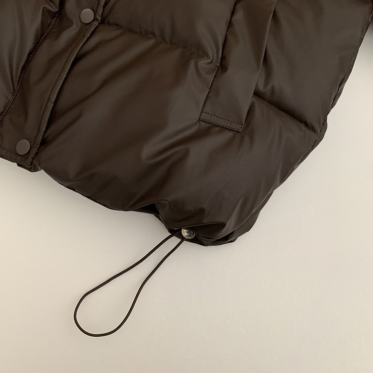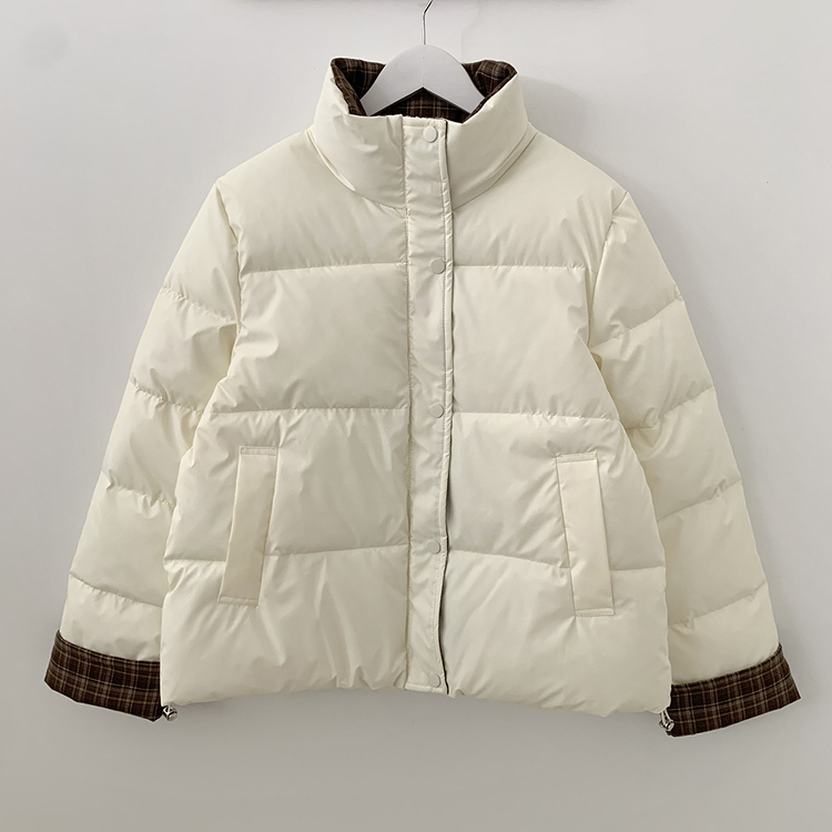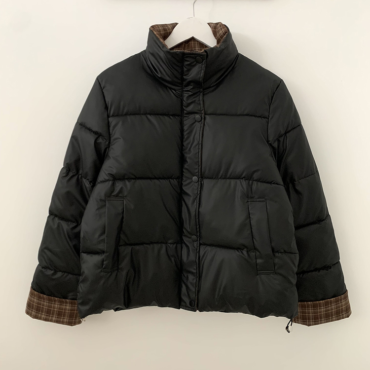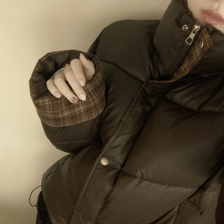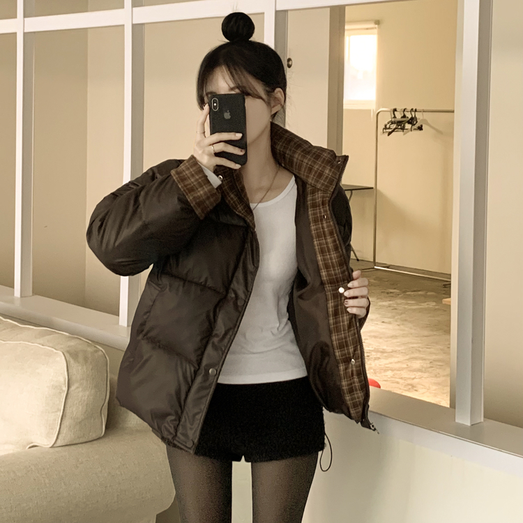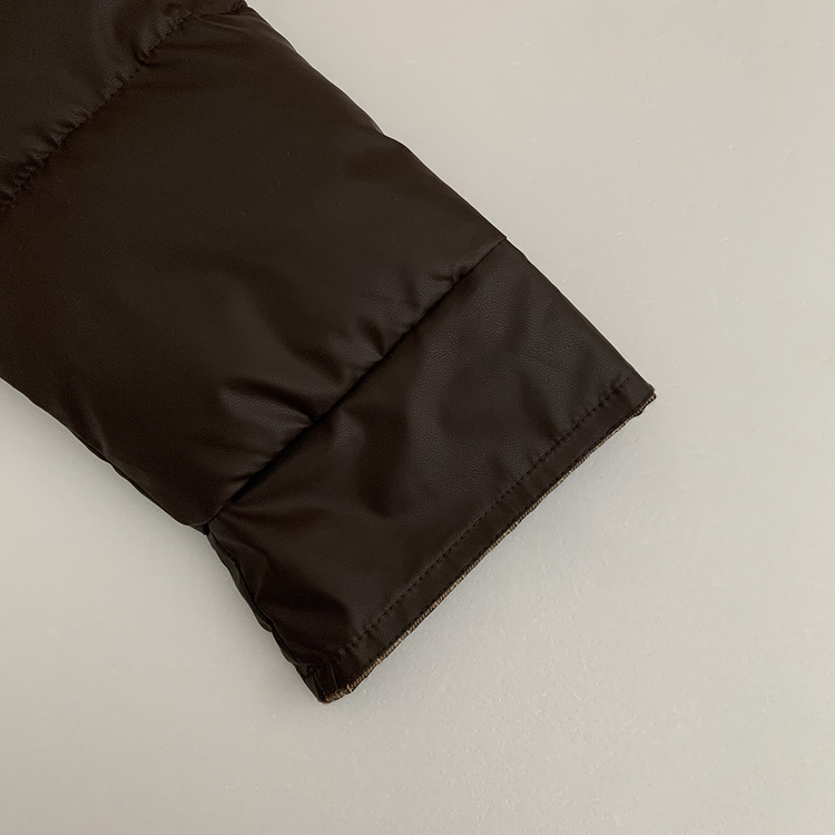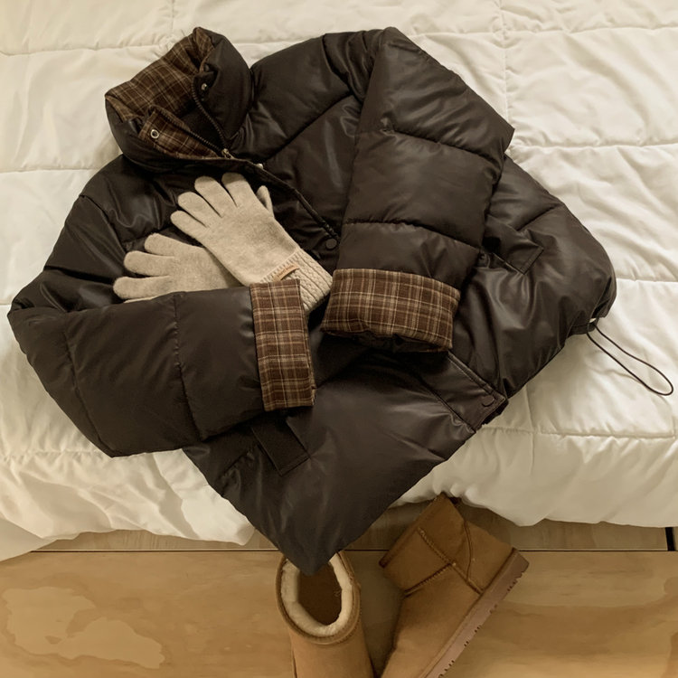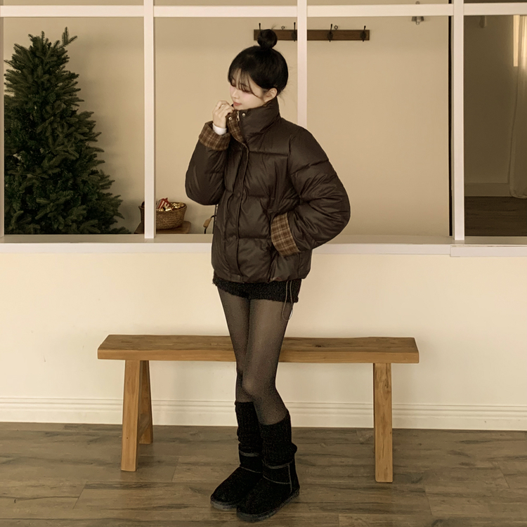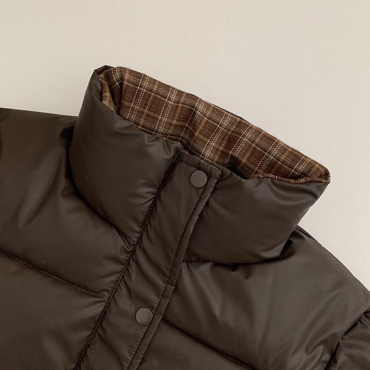 SJP18680 체크배색 하이넥 웰론 겨울 무광 가죽 빵빵 브라운 숏패딩 점퍼