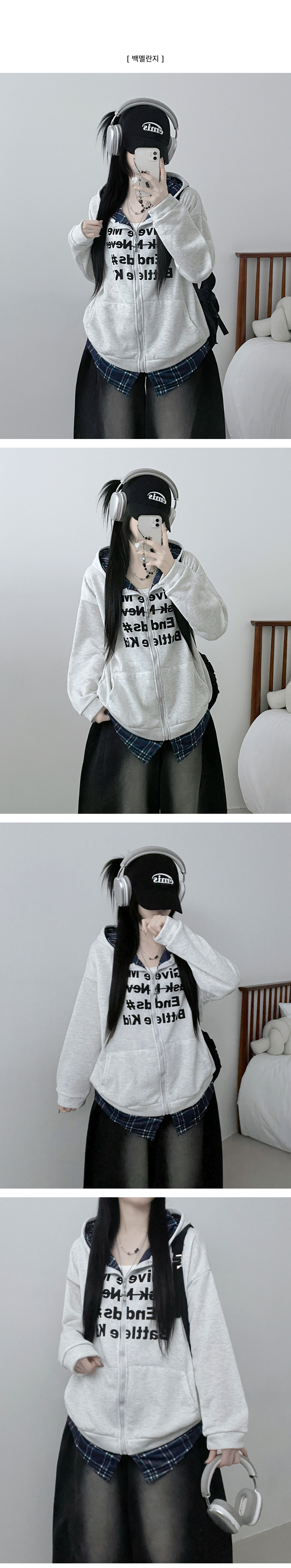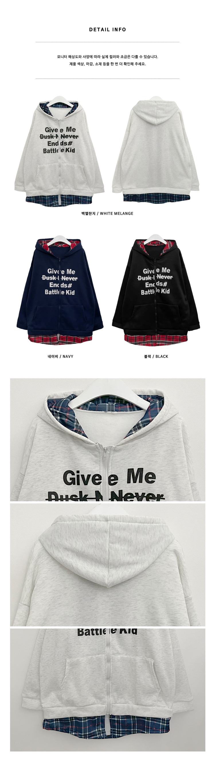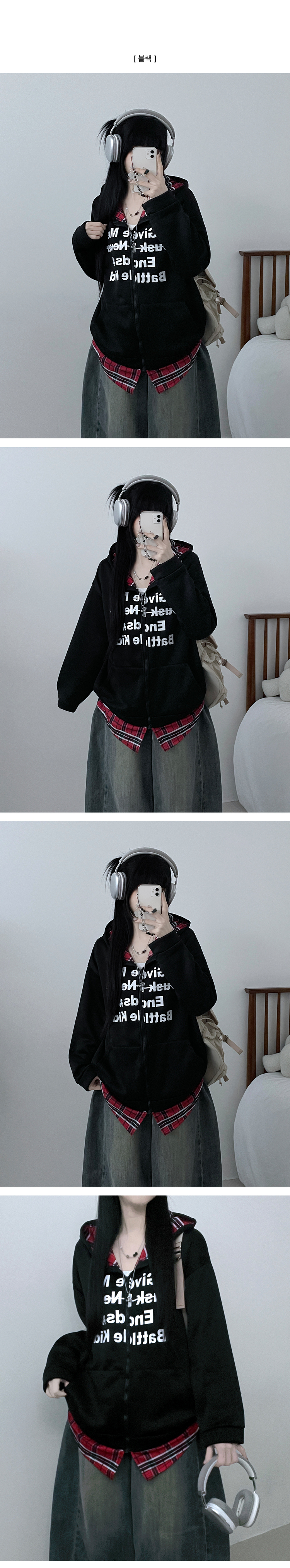 SJP18682 레터링체크셔츠레이어드투웨이박스핏기모후드집업