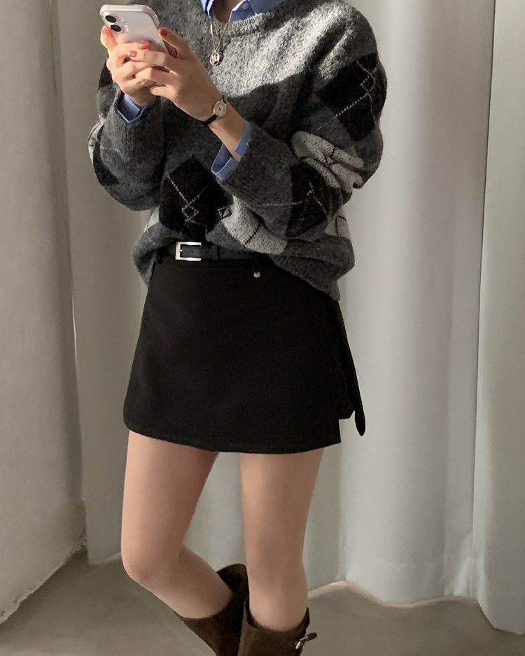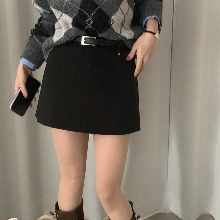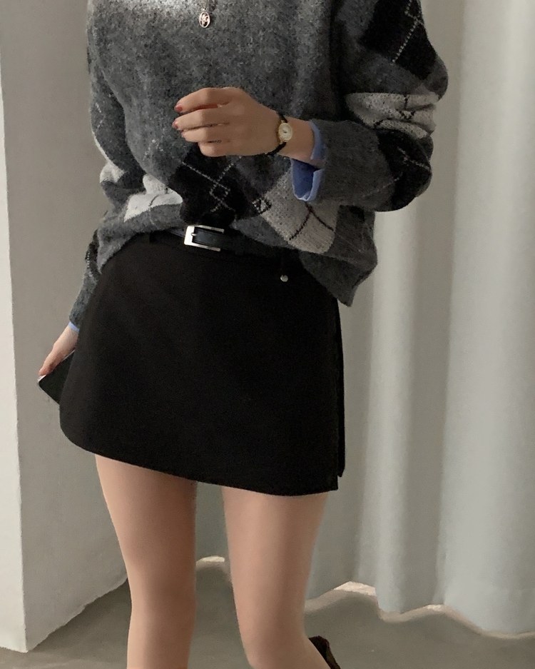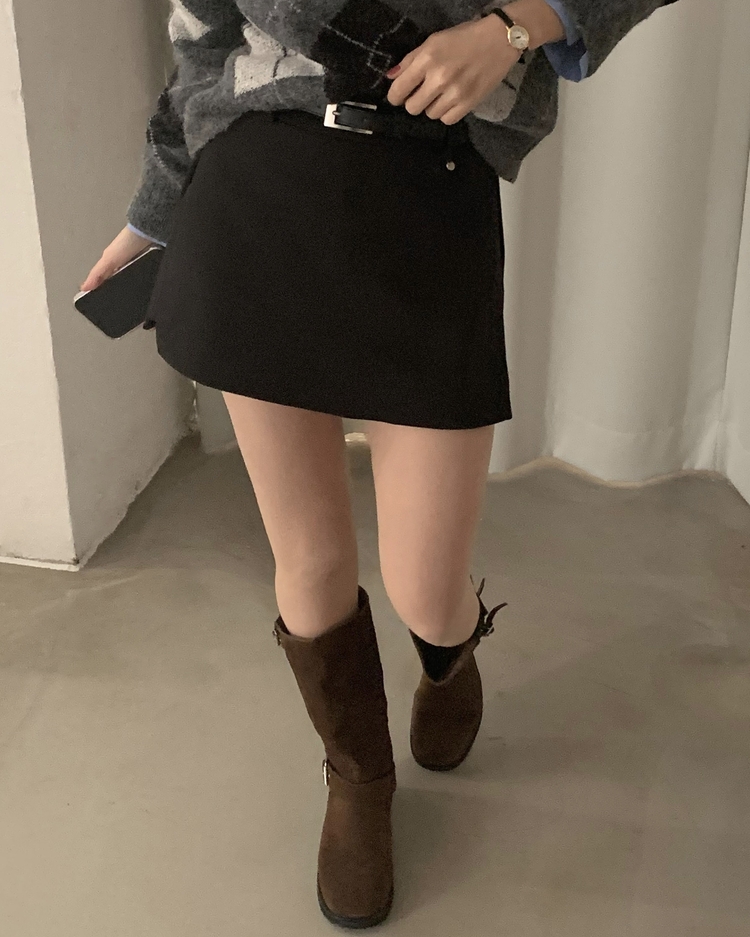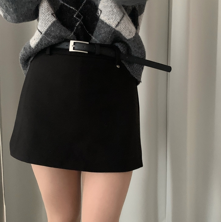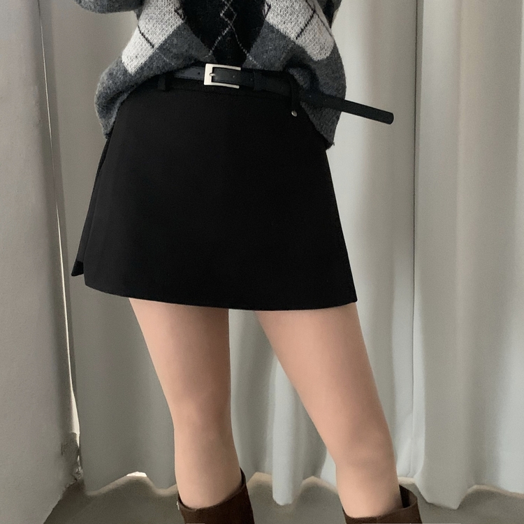 SSK25002 겨울 모직 벨트세트 펜던트 치마바지 A라인 미니스커트