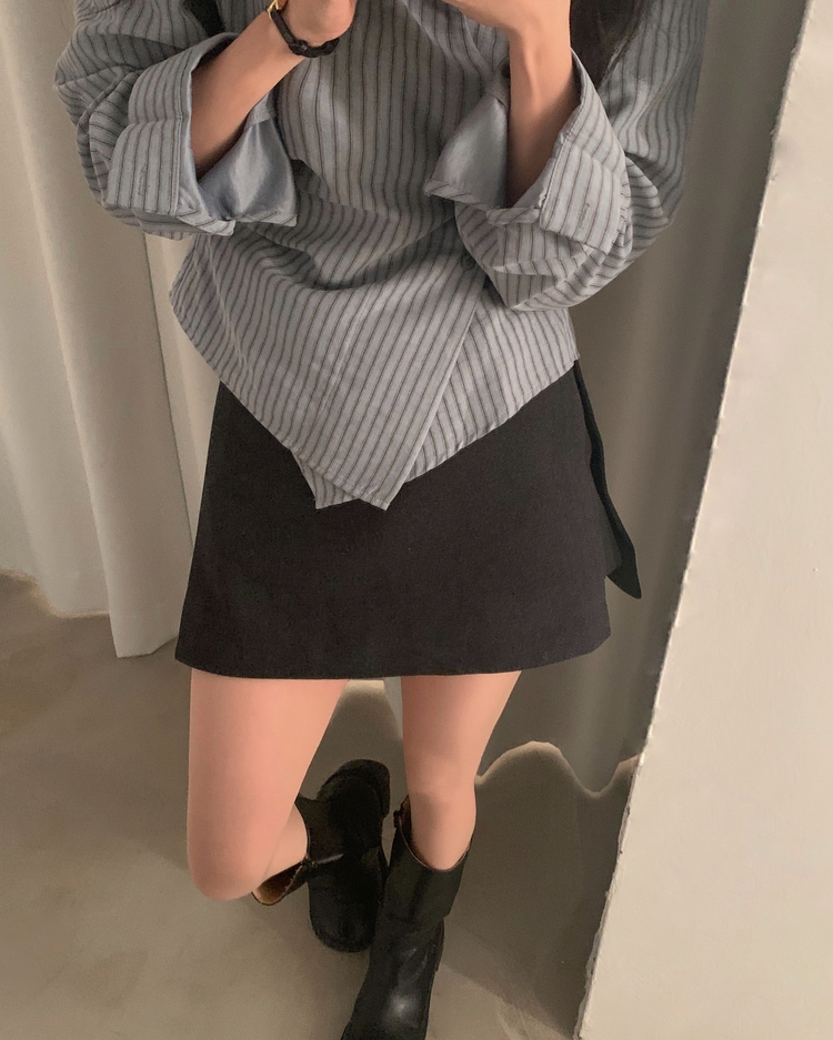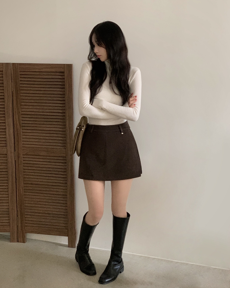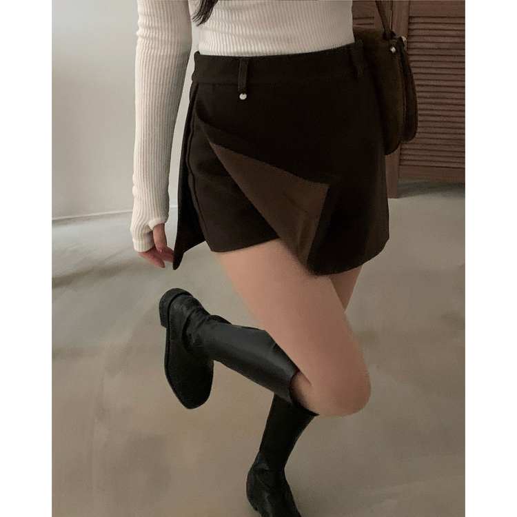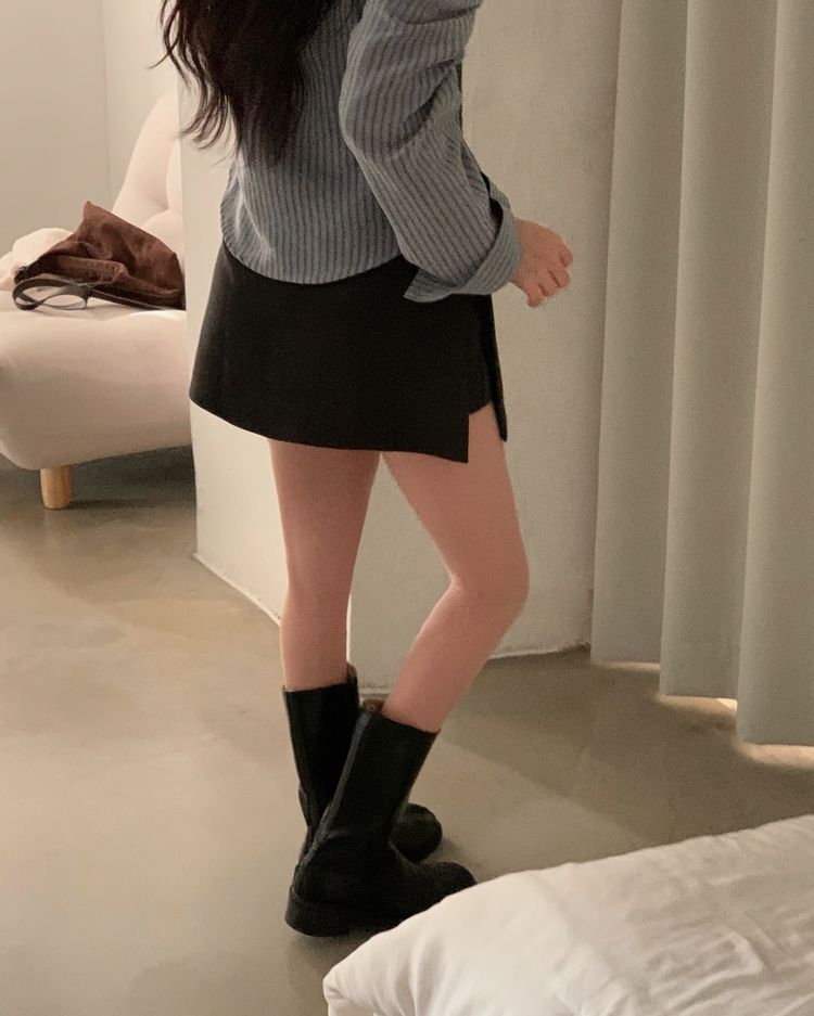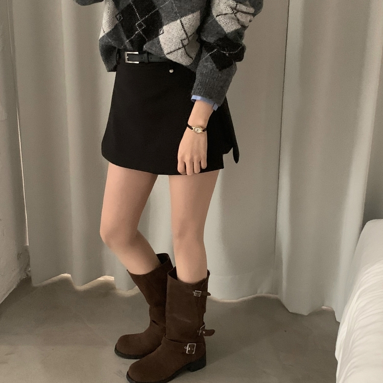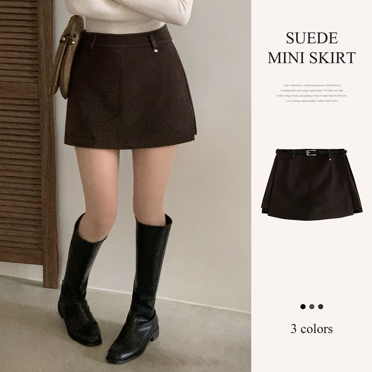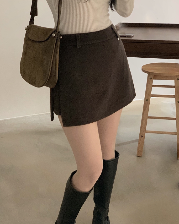 SSK25002 겨울 모직 벨트세트 펜던트 치마바지 A라인 미니스커트