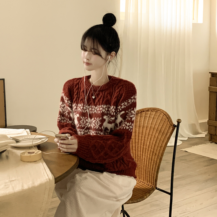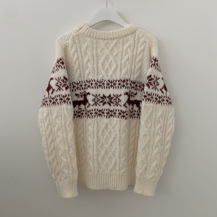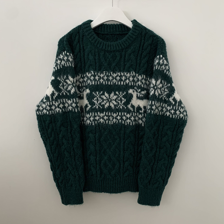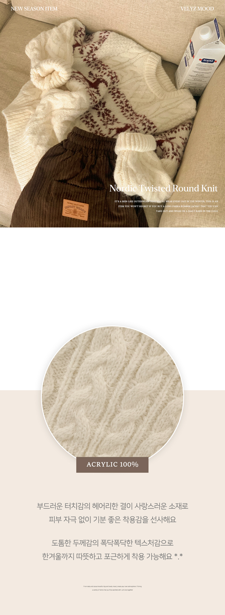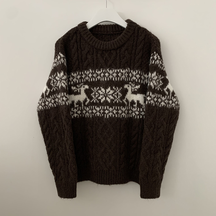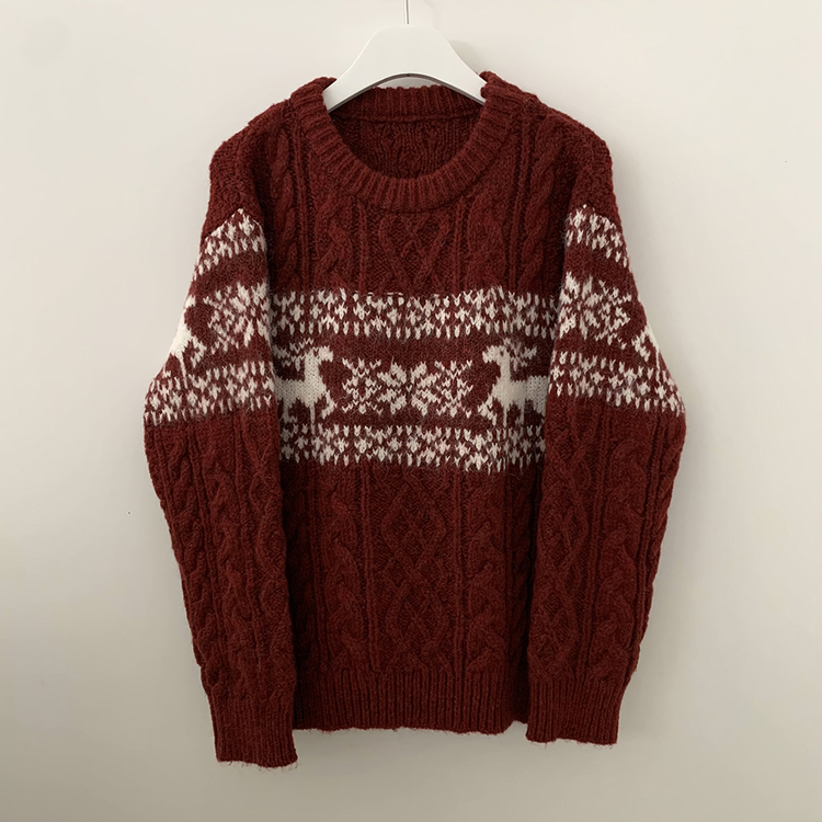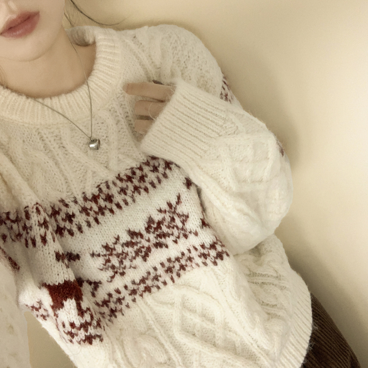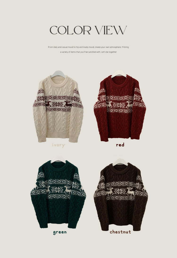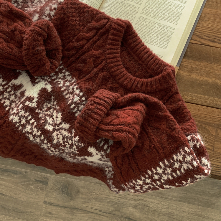 SNT33478 눈꽃 노르딕 꽈배기 케이블 라운드 루즈핏 크리스마스 레드 니트