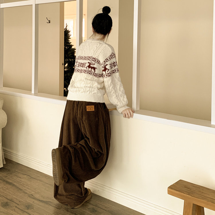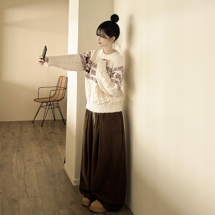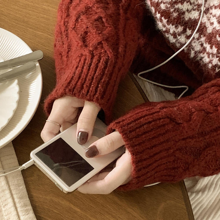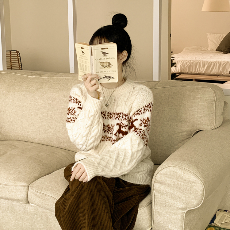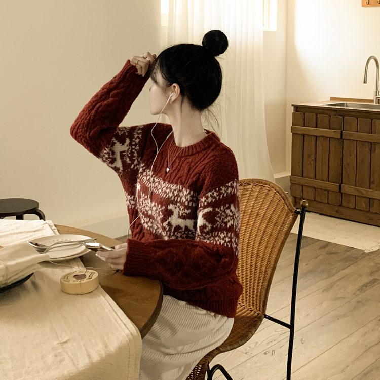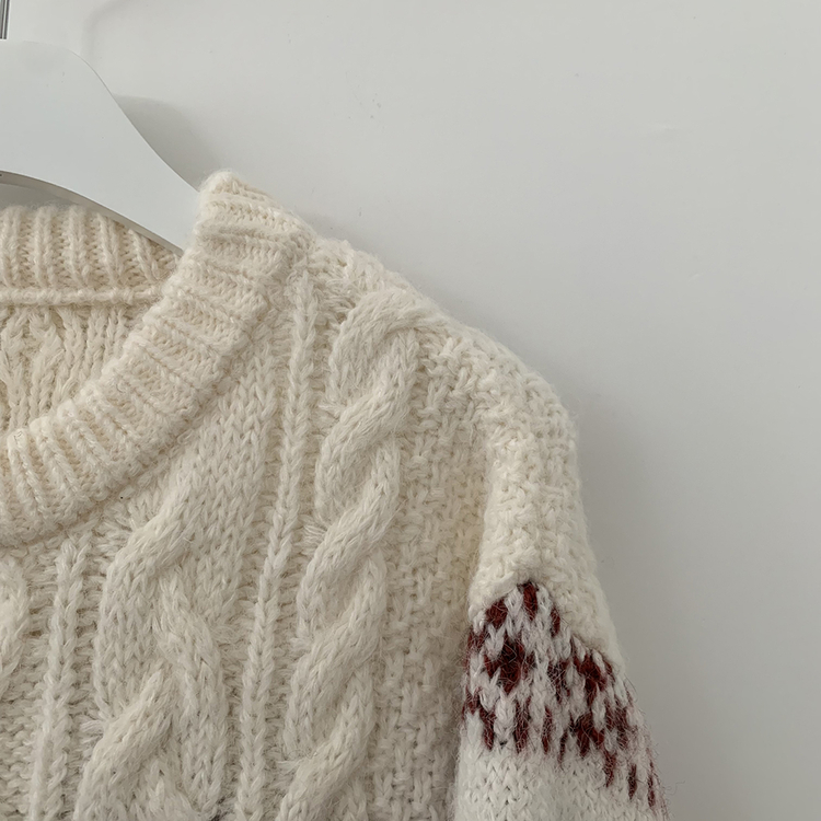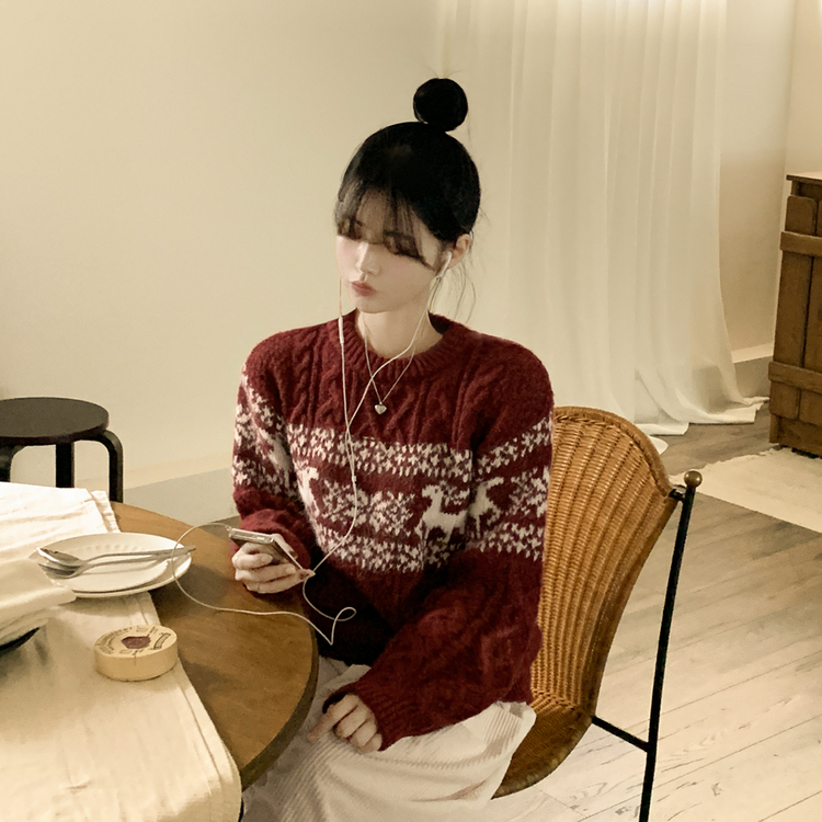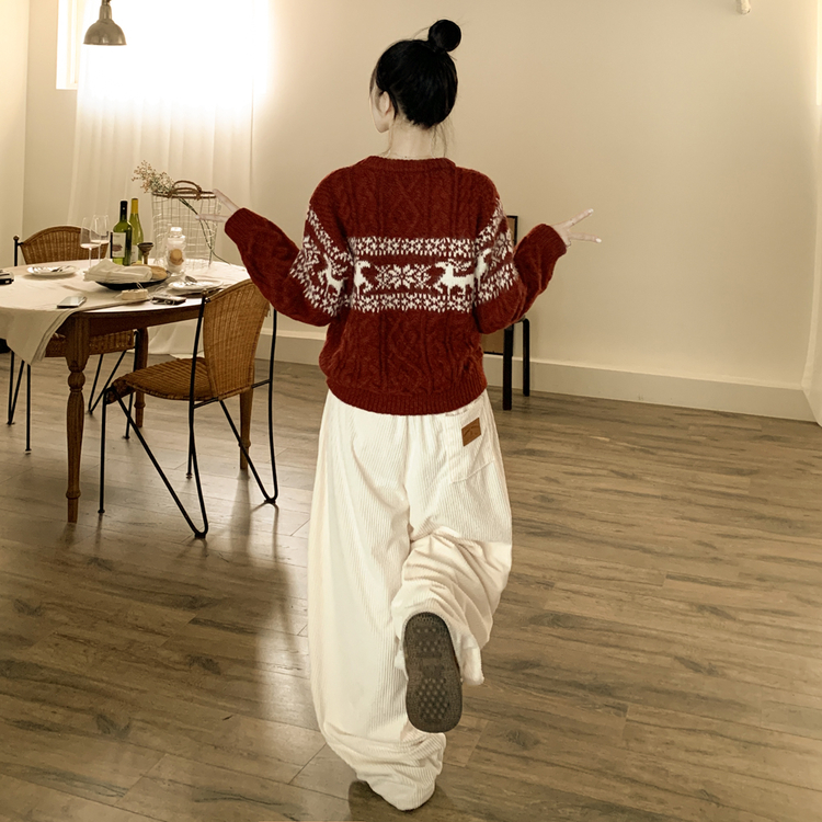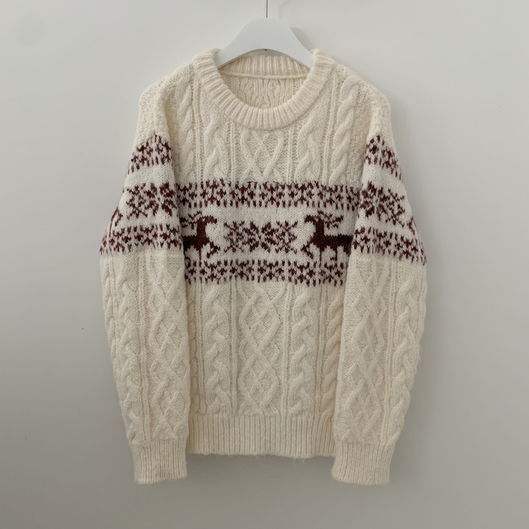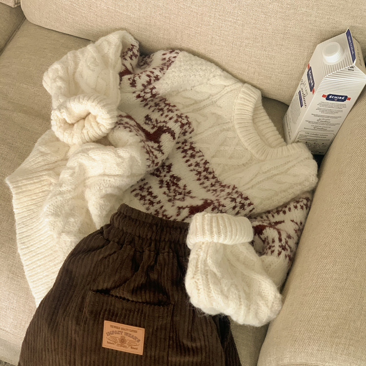 SNT33478 눈꽃 노르딕 꽈배기 케이블 라운드 루즈핏 크리스마스 레드 니트