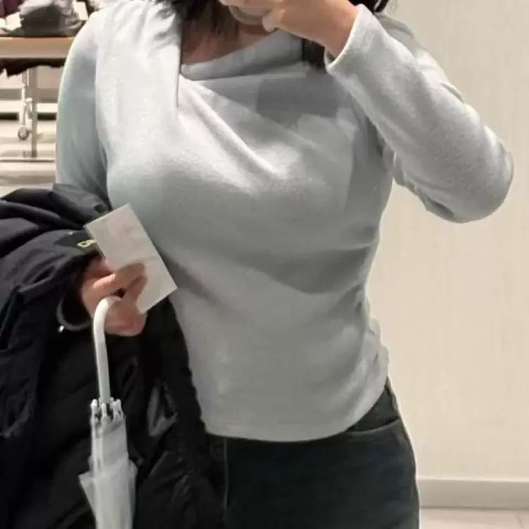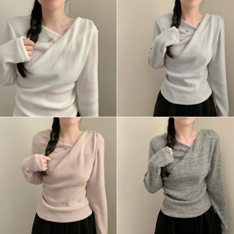 STS73542 뮤즈 드레이프 기모 긴팔 겨울 상의 겨울옷 연말룩 크리스마스 긴팔티 기모티
