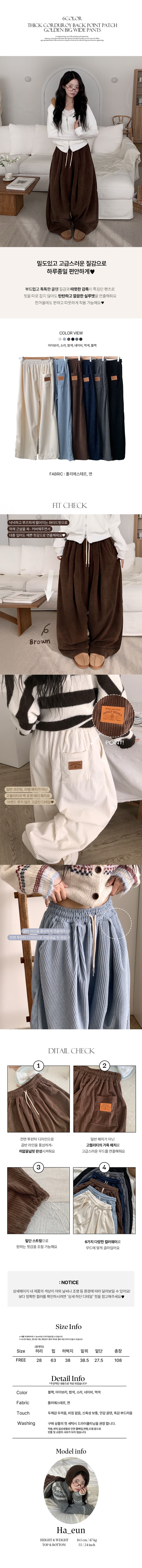 STR5519 [고퀄보장。‧˚/인생핏] 마크 코듀로이 와이드 핀턱 뒷포켓패치 밴딩 트레이닝 팬츠