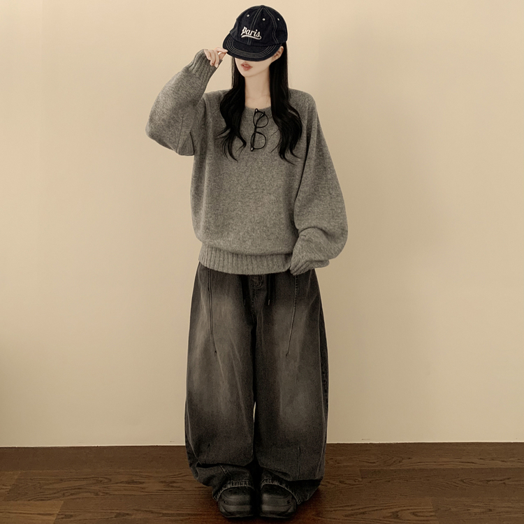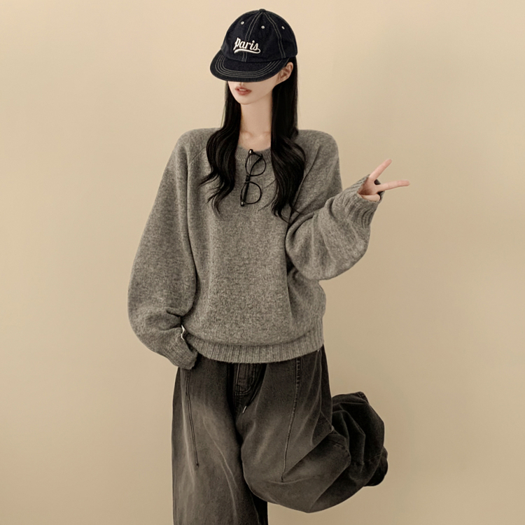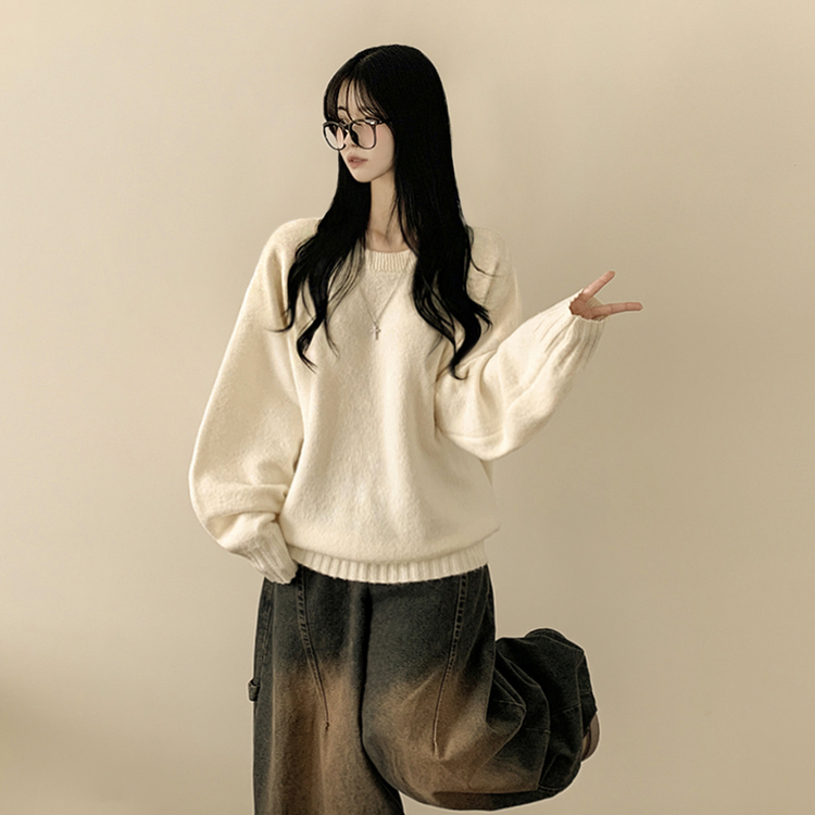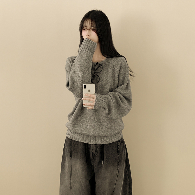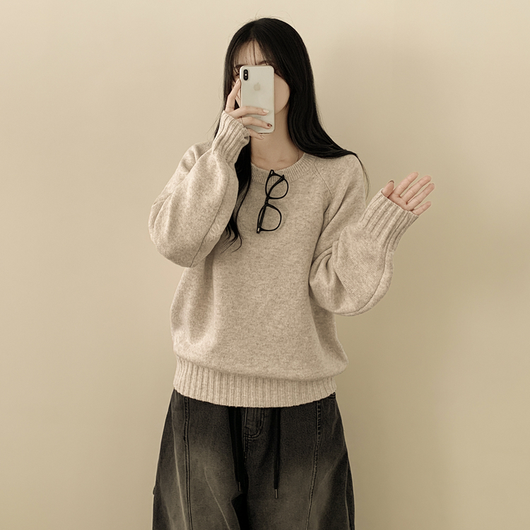 SNT33457 부드러운 폭닥함 여리여리 아방핏 라운드넥 래글런 오버핏 나그랑 오버핏 긴팔니트 빅사이즈