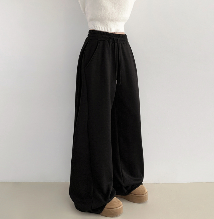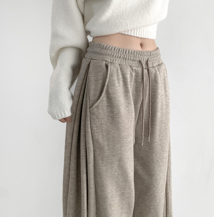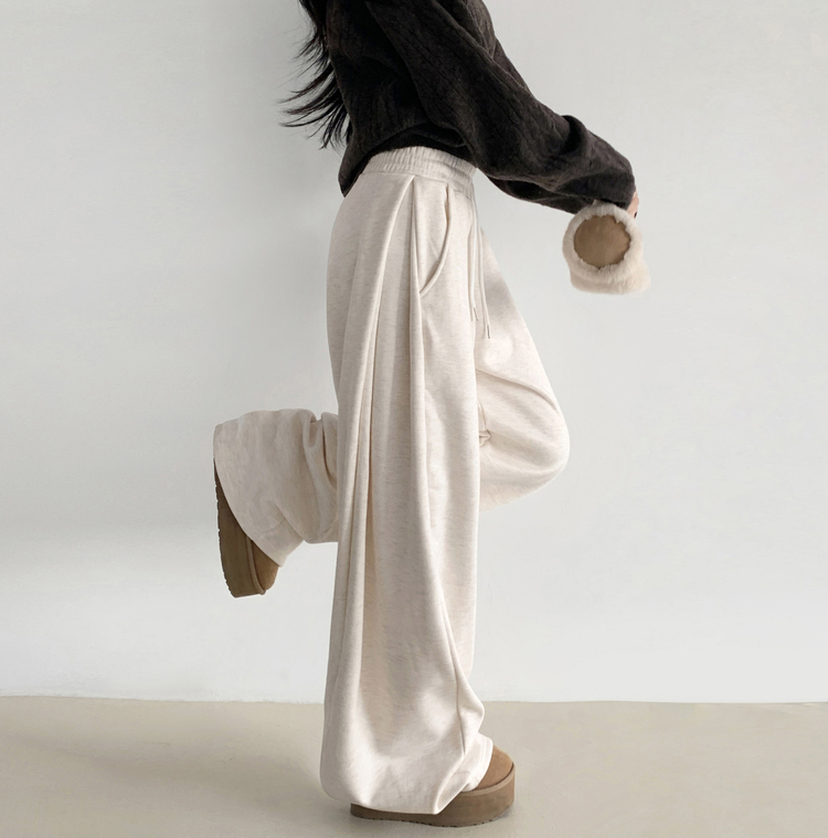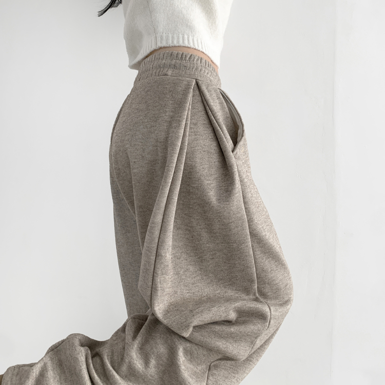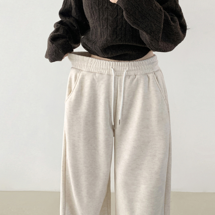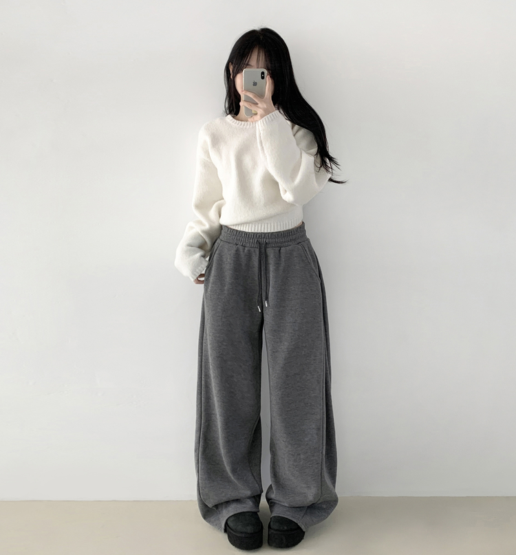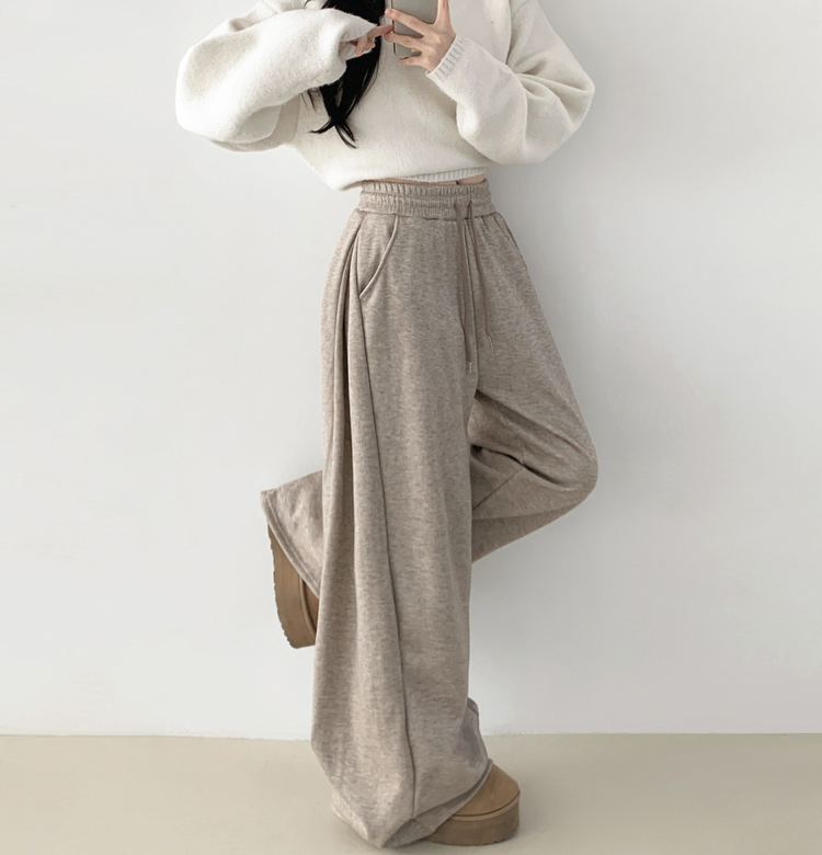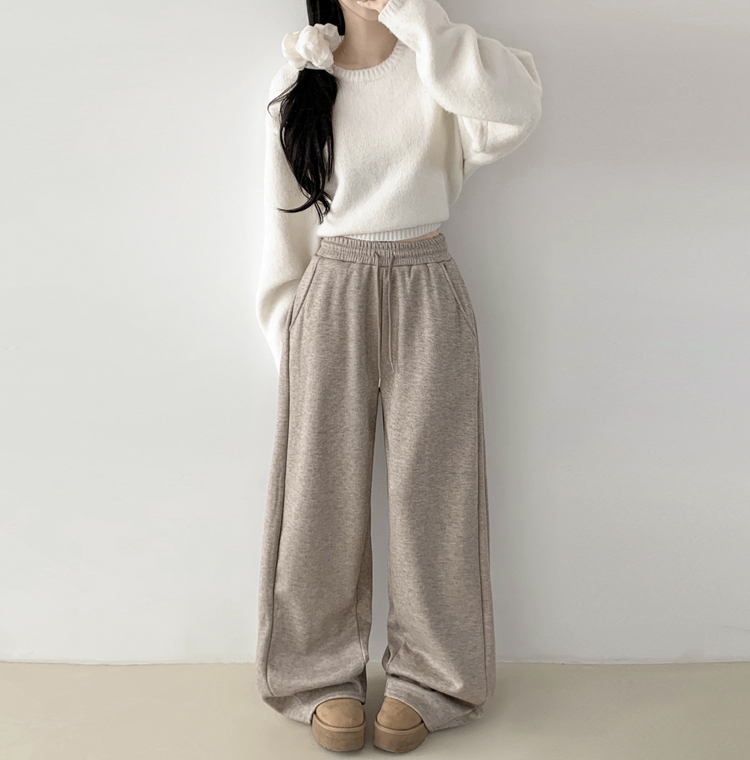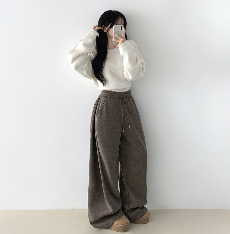 STR5512 히버 니트 사이드 핀턱 와이드 기모 밴딩 트레이닝 팬츠
