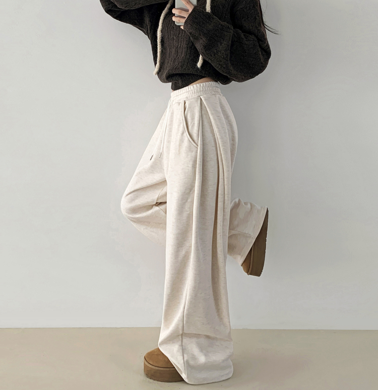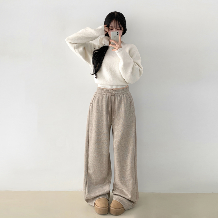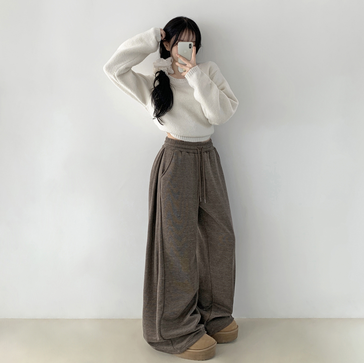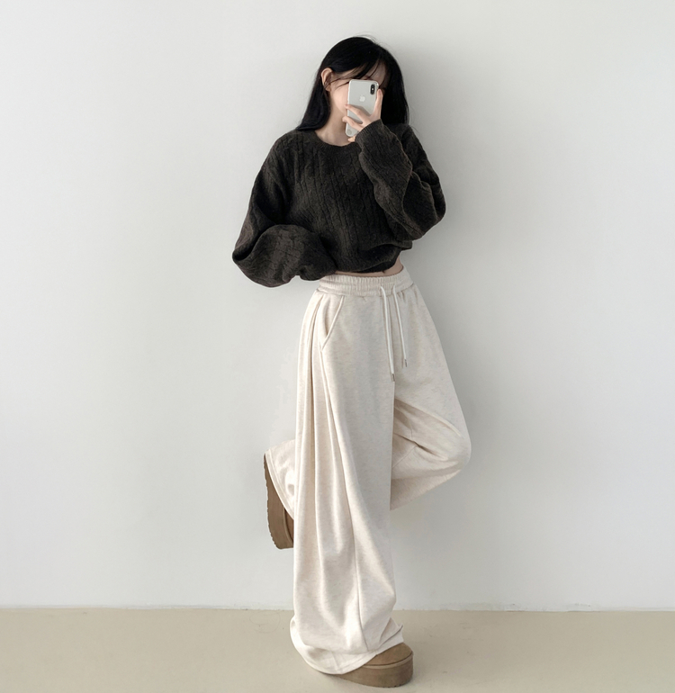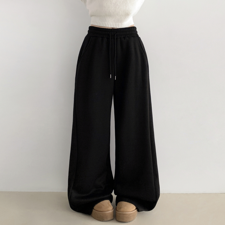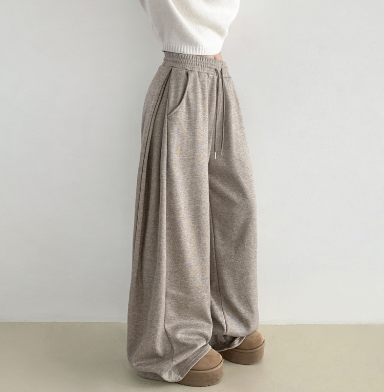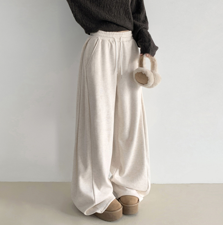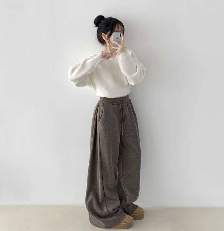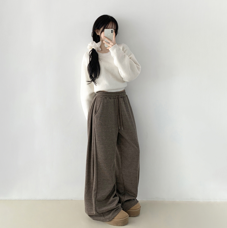 STR5512 히버 니트 사이드 핀턱 와이드 기모 밴딩 트레이닝 팬츠