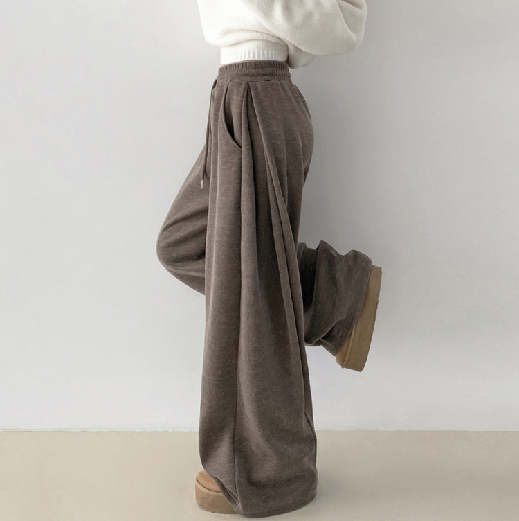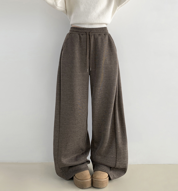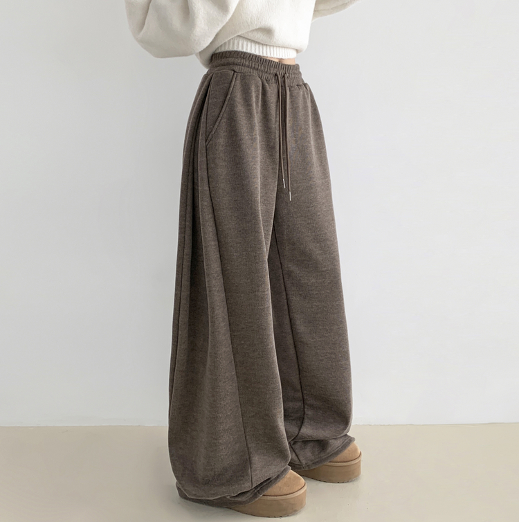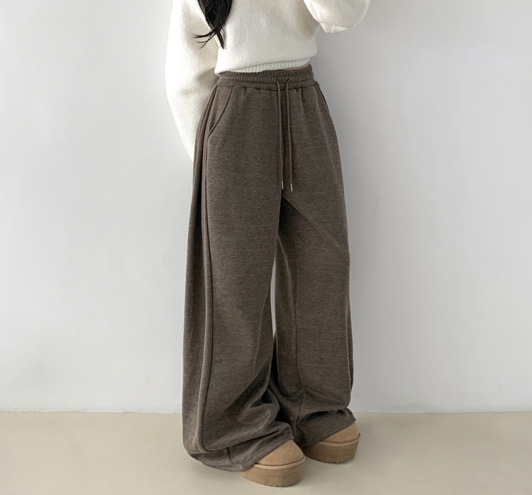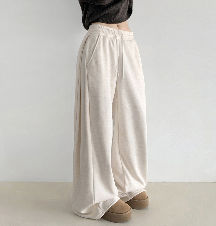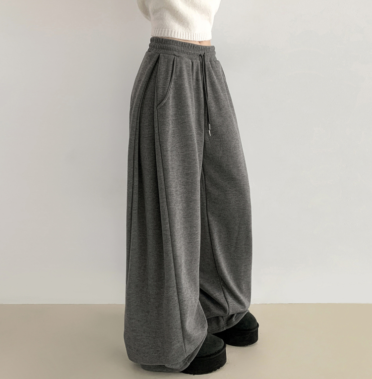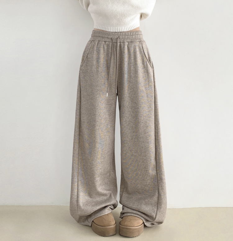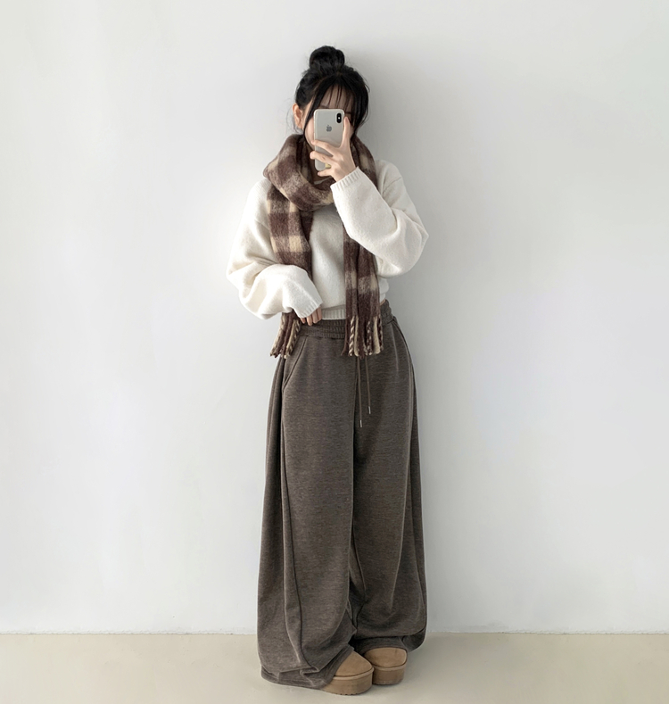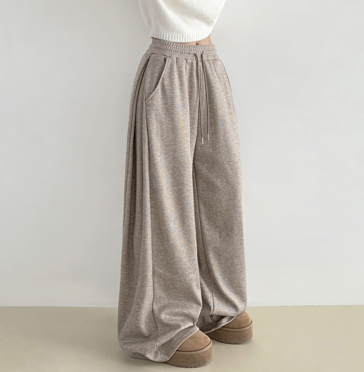 STR5512 히버 니트 사이드 핀턱 와이드 기모 밴딩 트레이닝 팬츠