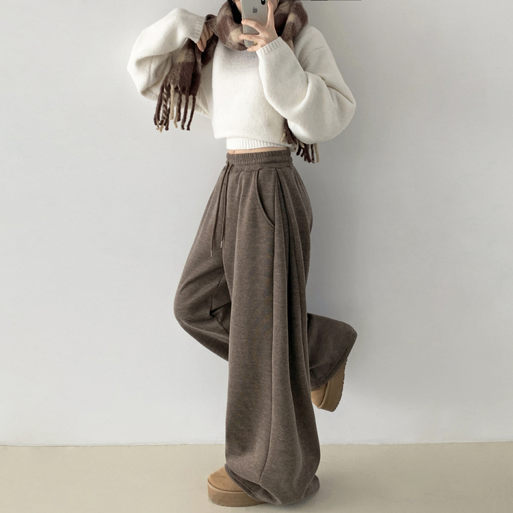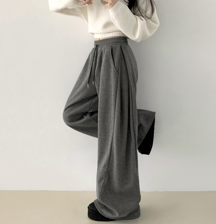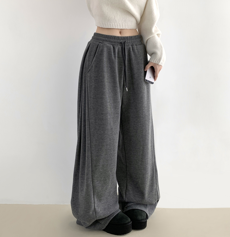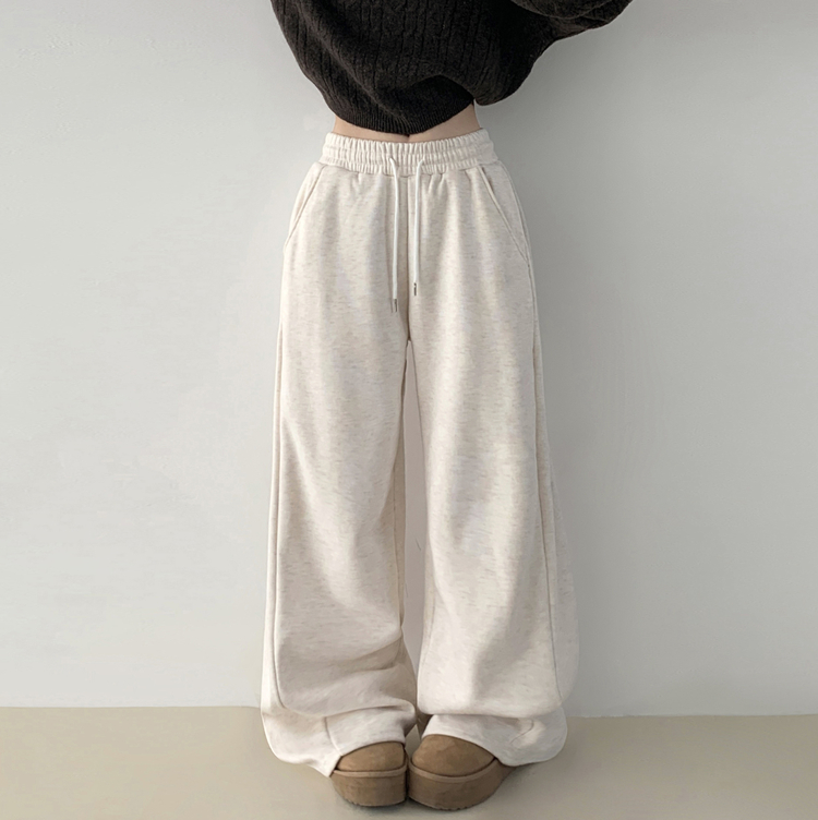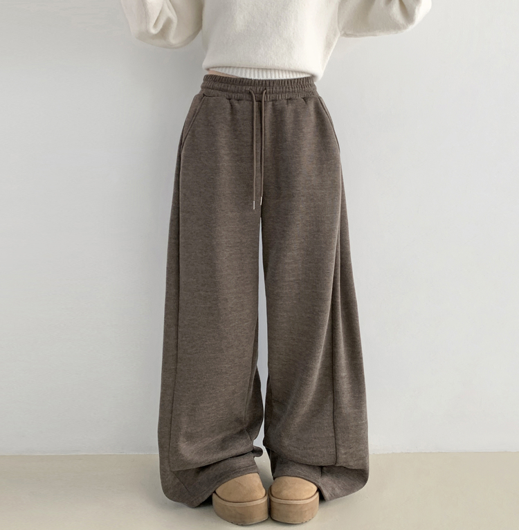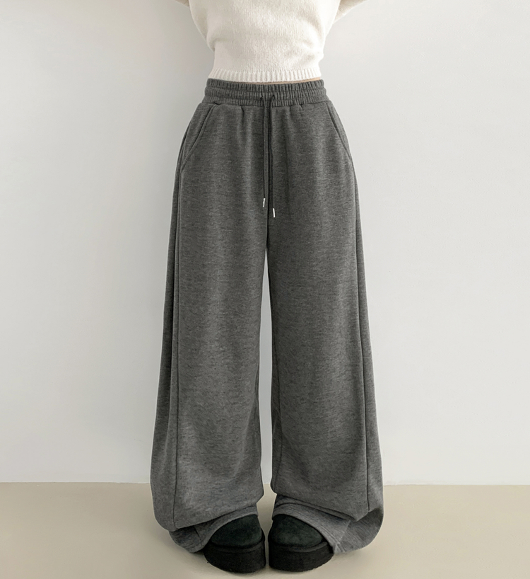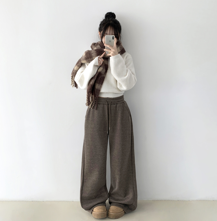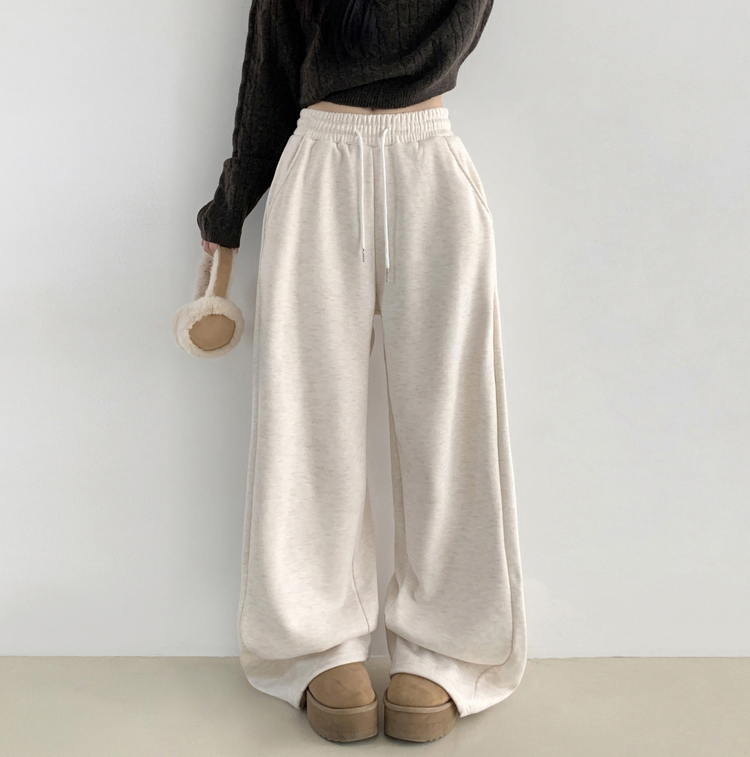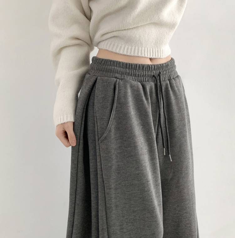 STR5512 히버 니트 사이드 핀턱 와이드 기모 밴딩 트레이닝 팬츠
