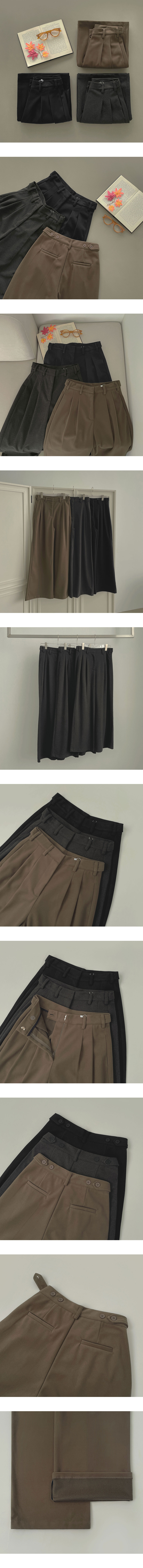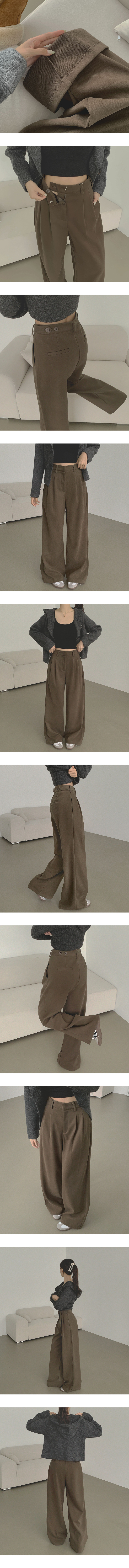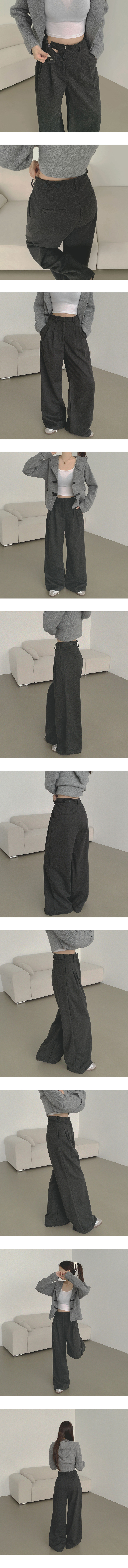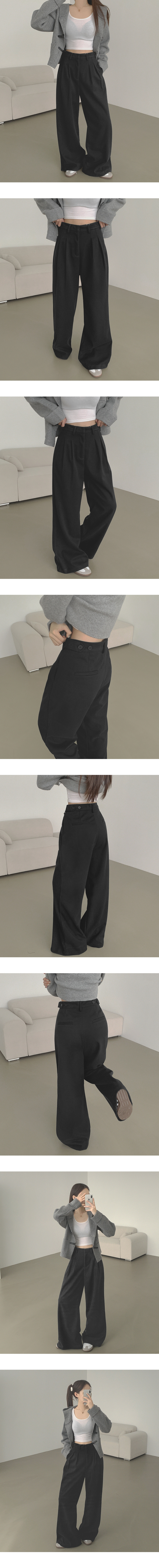 SSL3017 2XL모직 핀턱 안단추 비조 허리 조절 가능한 와이드 슬랙스 팬츠