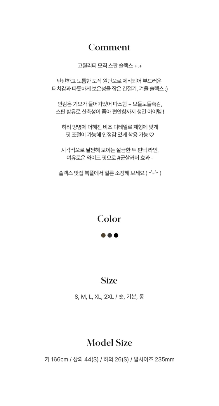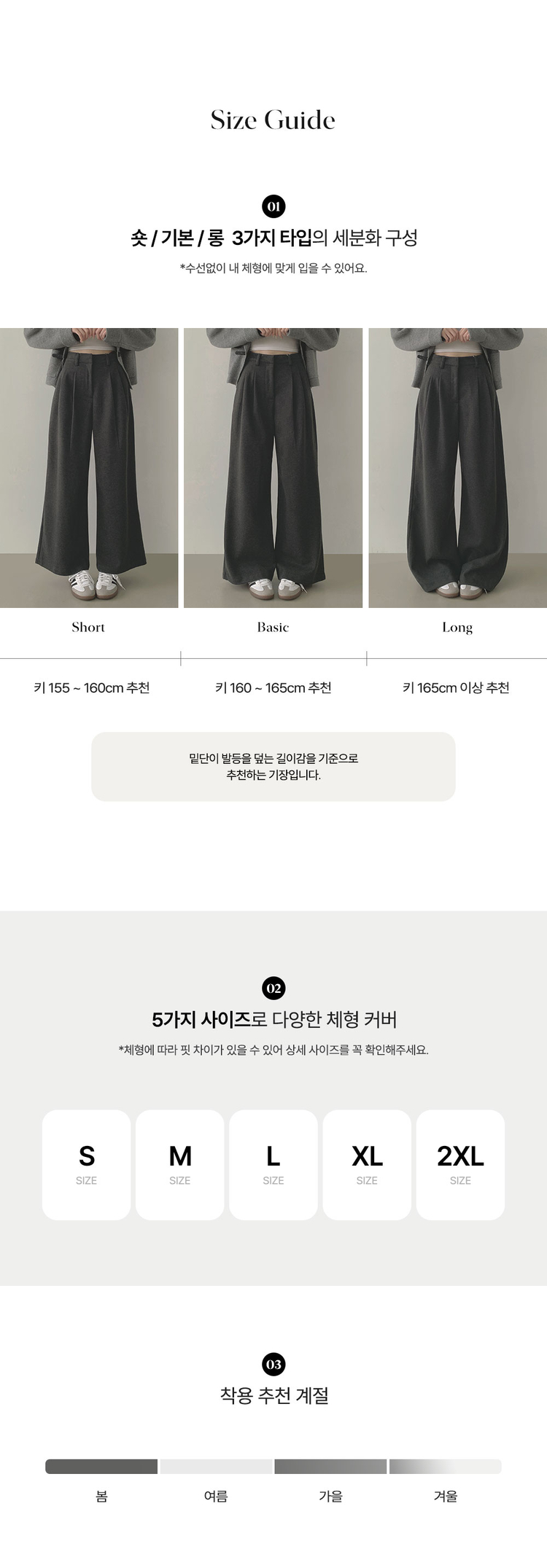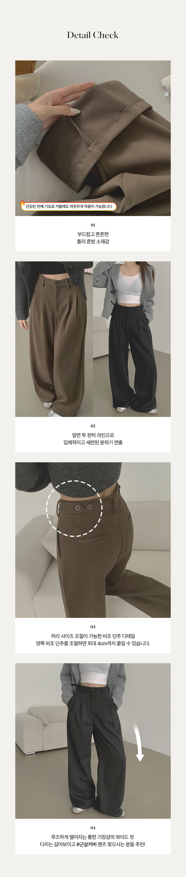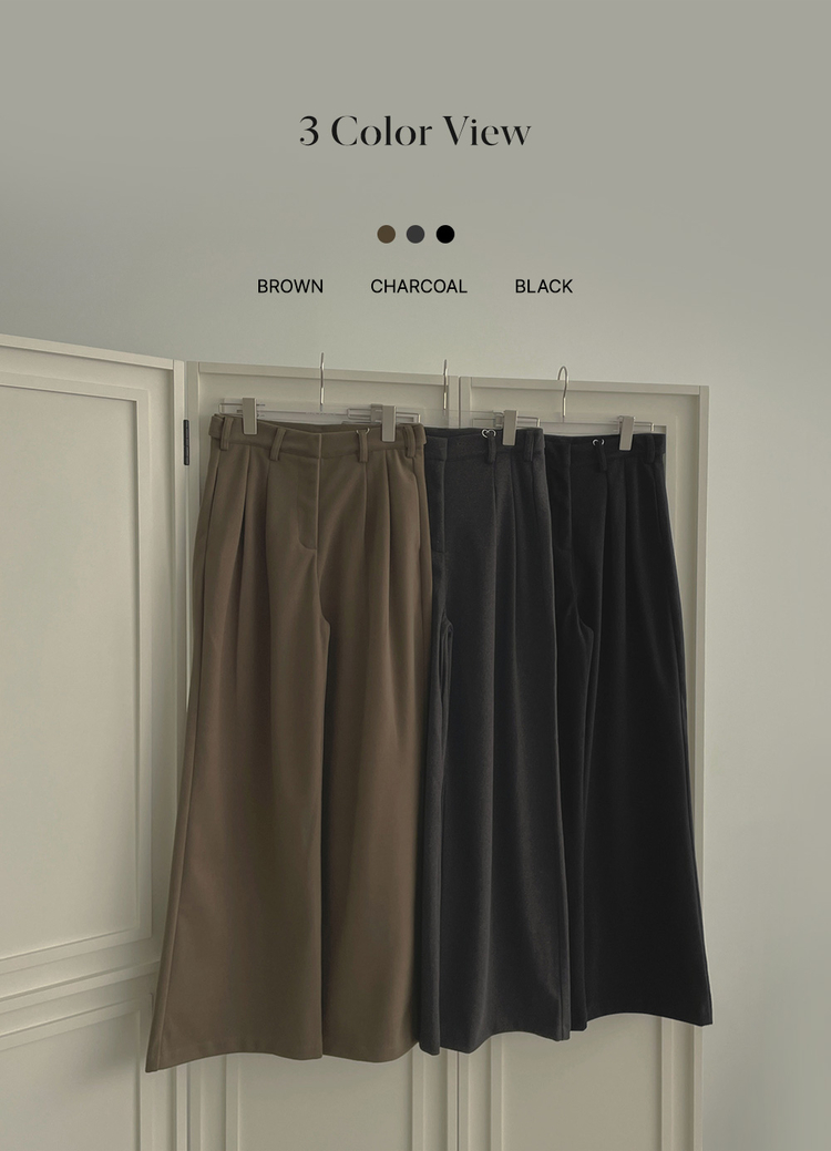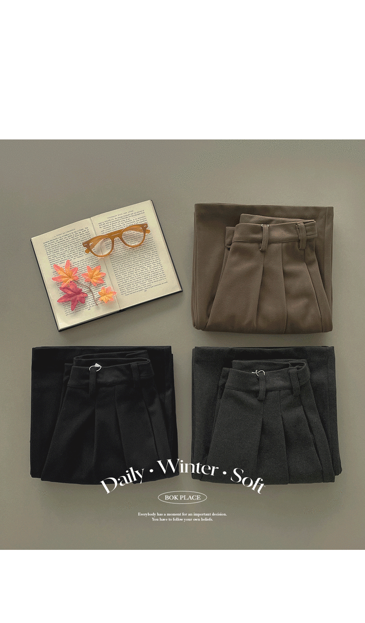 SSL3017 2XL모직 핀턱 안단추 비조 허리 조절 가능한 와이드 슬랙스 팬츠
