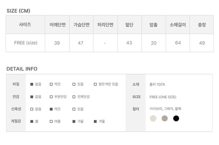 | 素材 | 폴리(100%) |