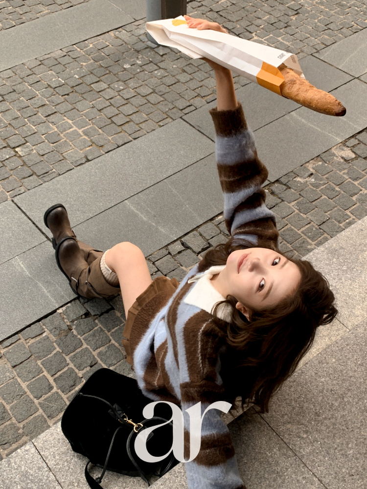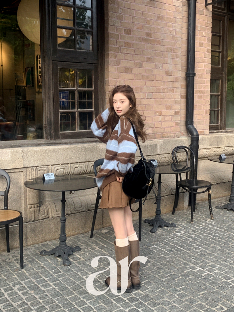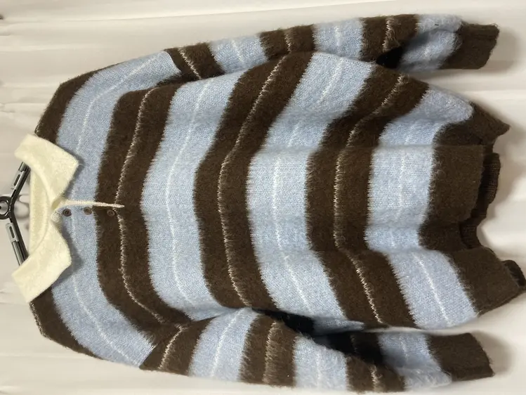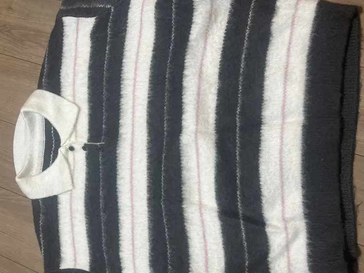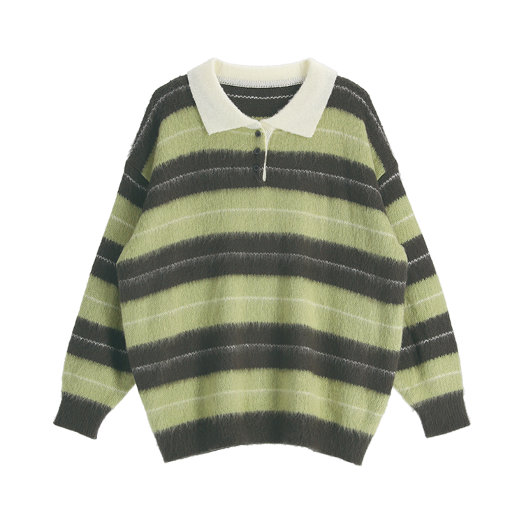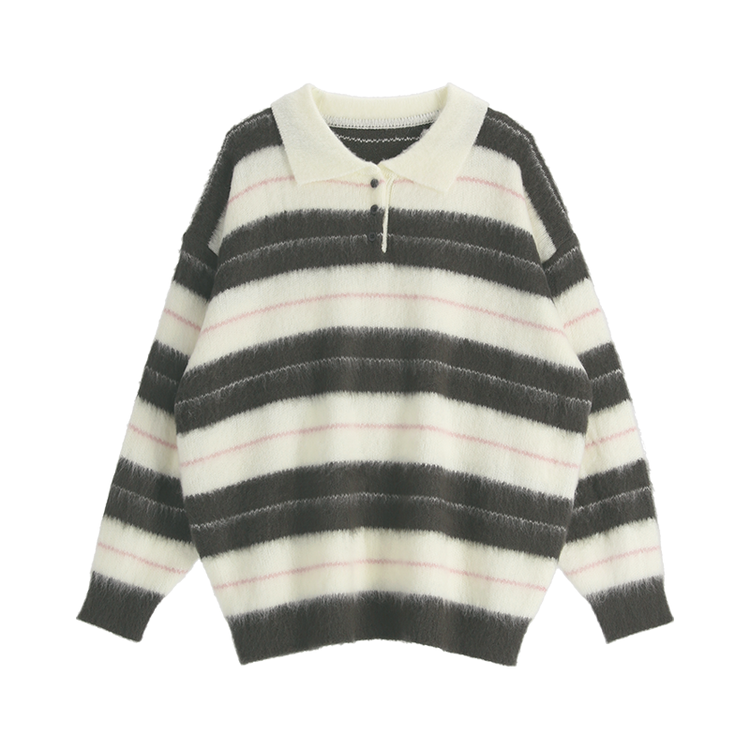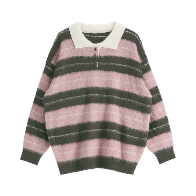 SNT33568 nt5321 (포인트룩추천♥/포근여리핏) 홀린 브러쉬 배색 스트라이프 카라넥 버튼 긴팔 니트