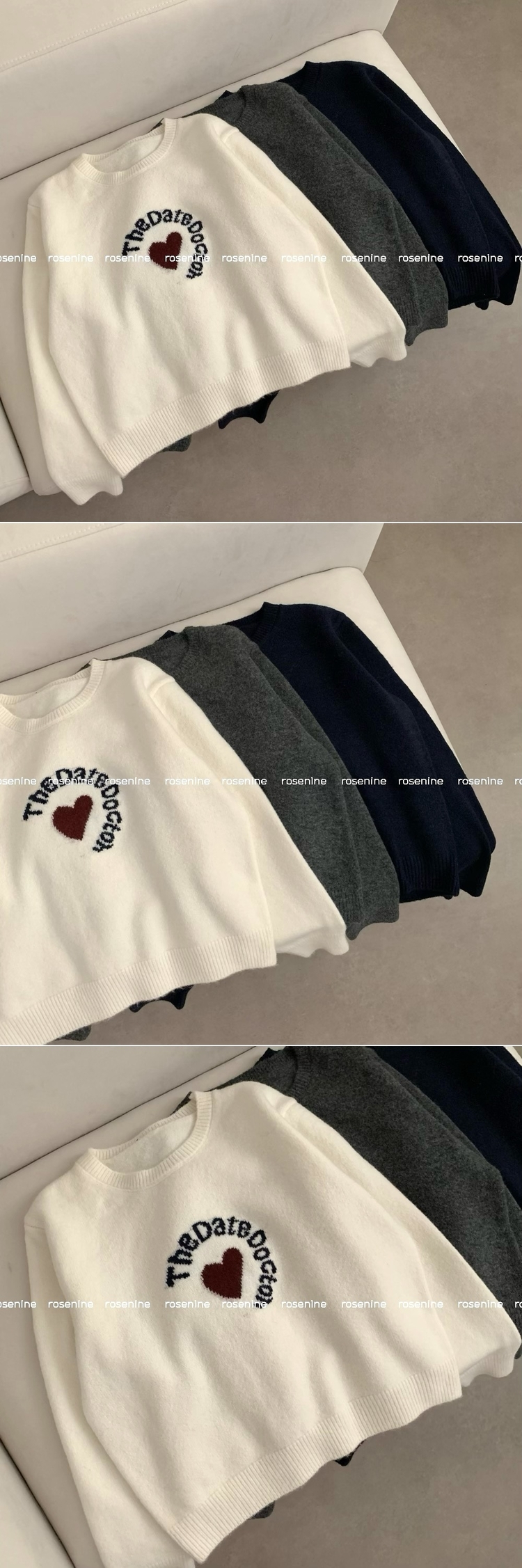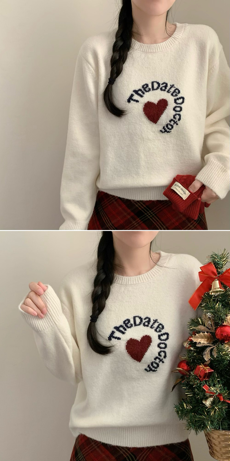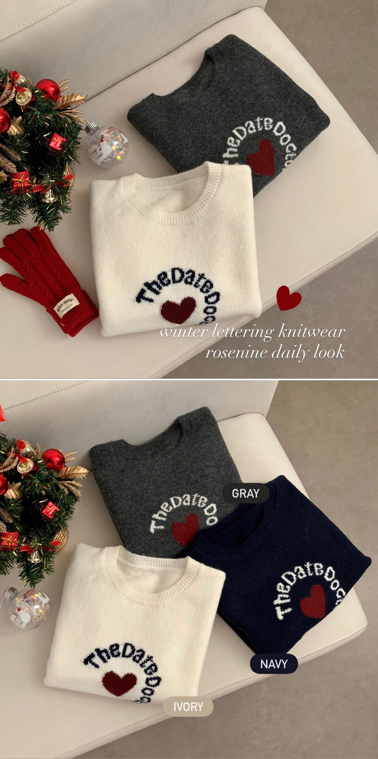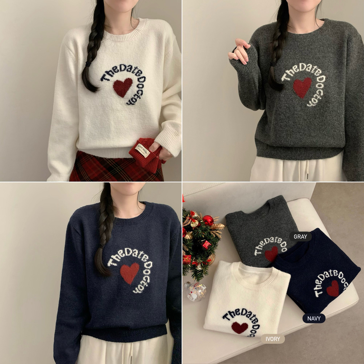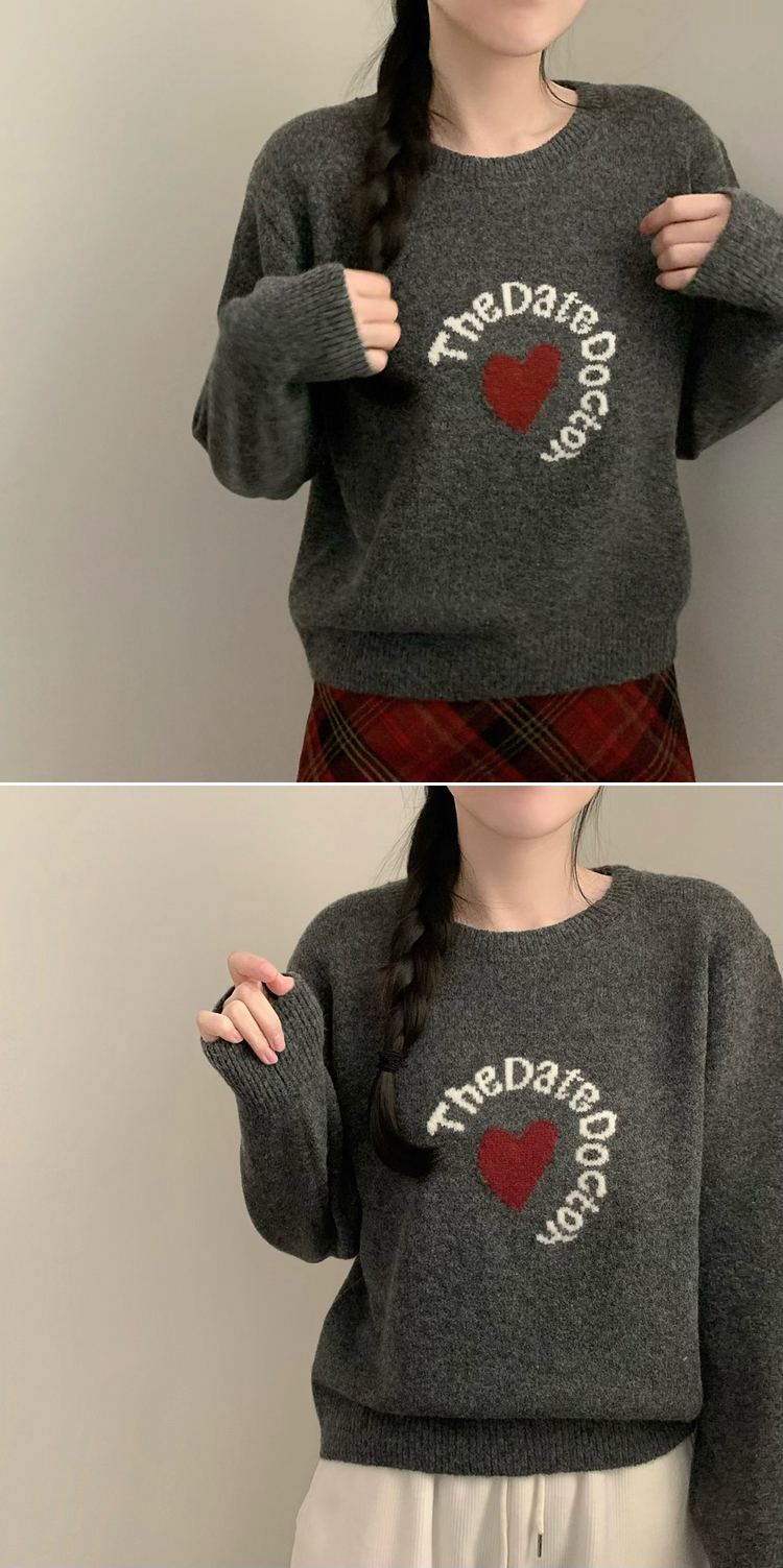 SNT33623 하트라운드 레터링 긴팔 라운드넥 니트