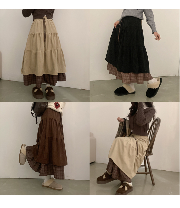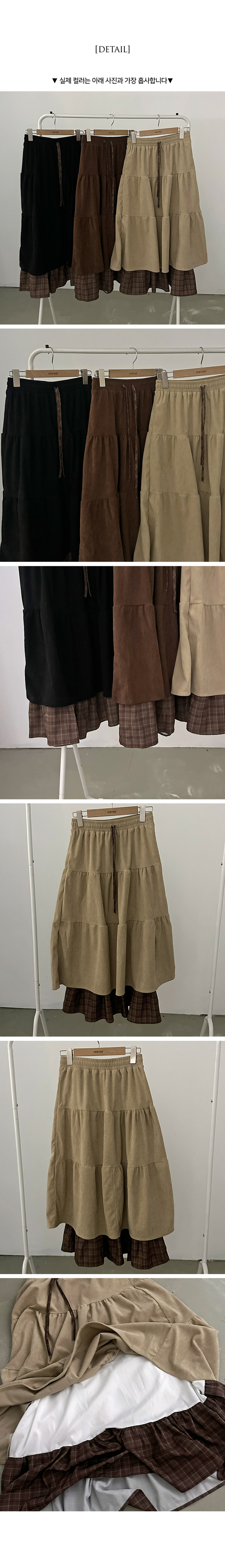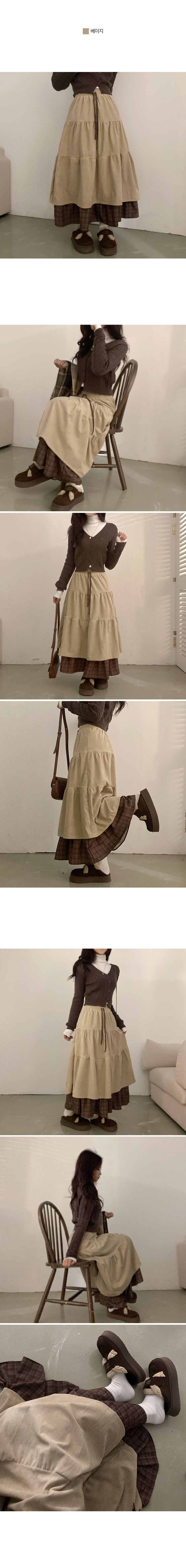 SSK25142 아인 체크 레이어드 코듀로이 골덴 프릴 롱 캉캉 스커트