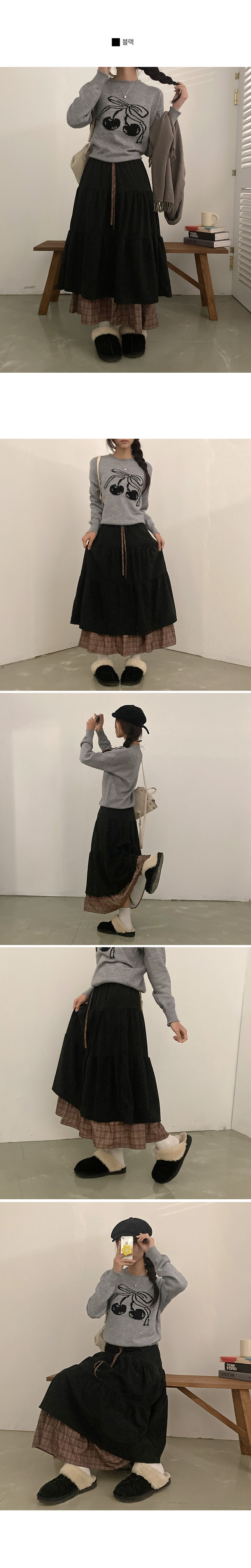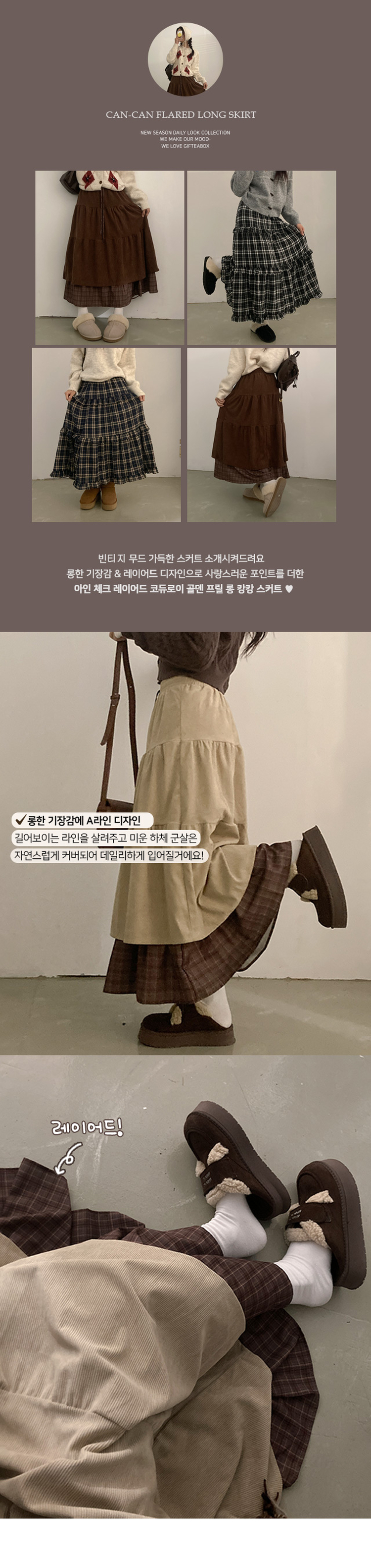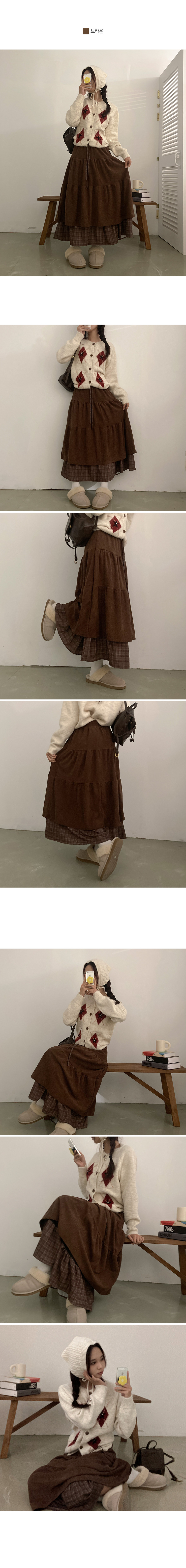 SSK25142 아인 체크 레이어드 코듀로이 골덴 프릴 롱 캉캉 스커트