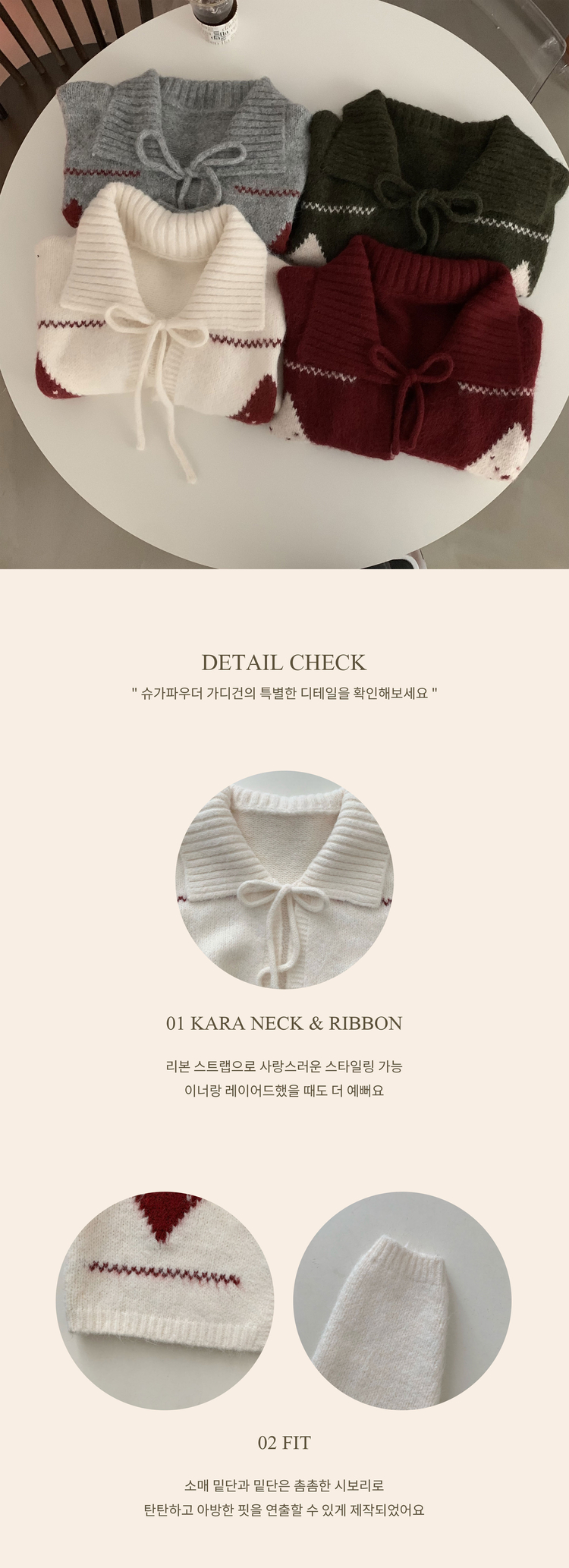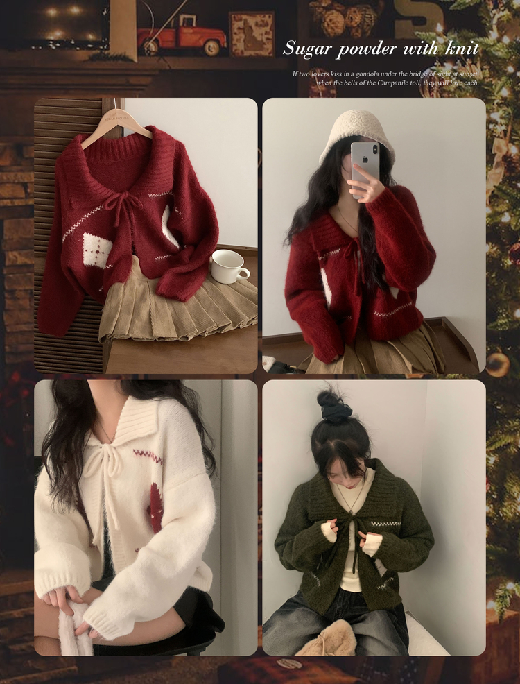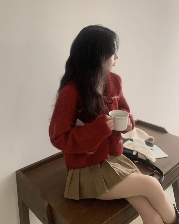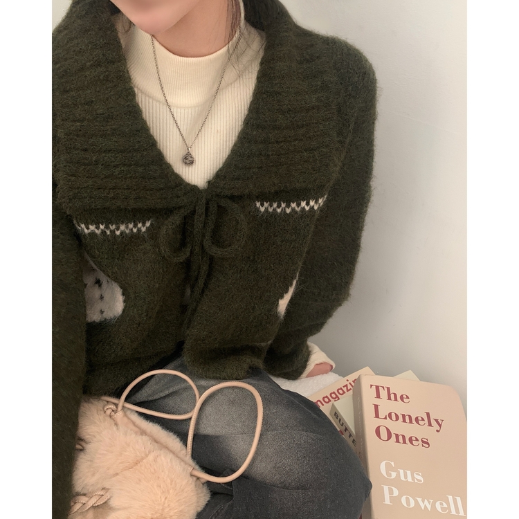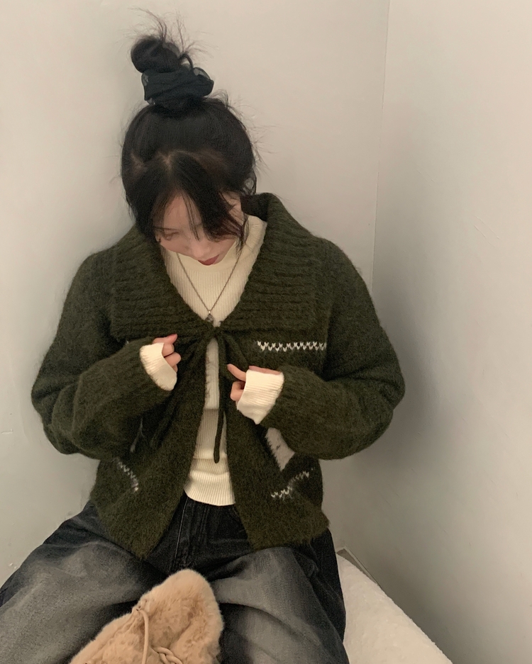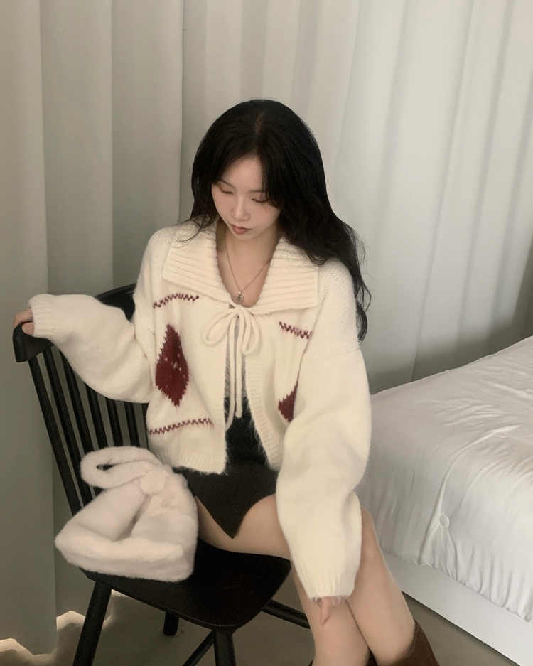 SGD29948 캐럴 노르딕 리본 루즈핏 볼레로 니트가디건