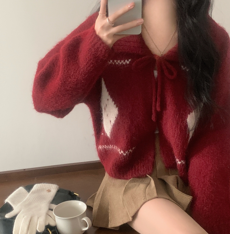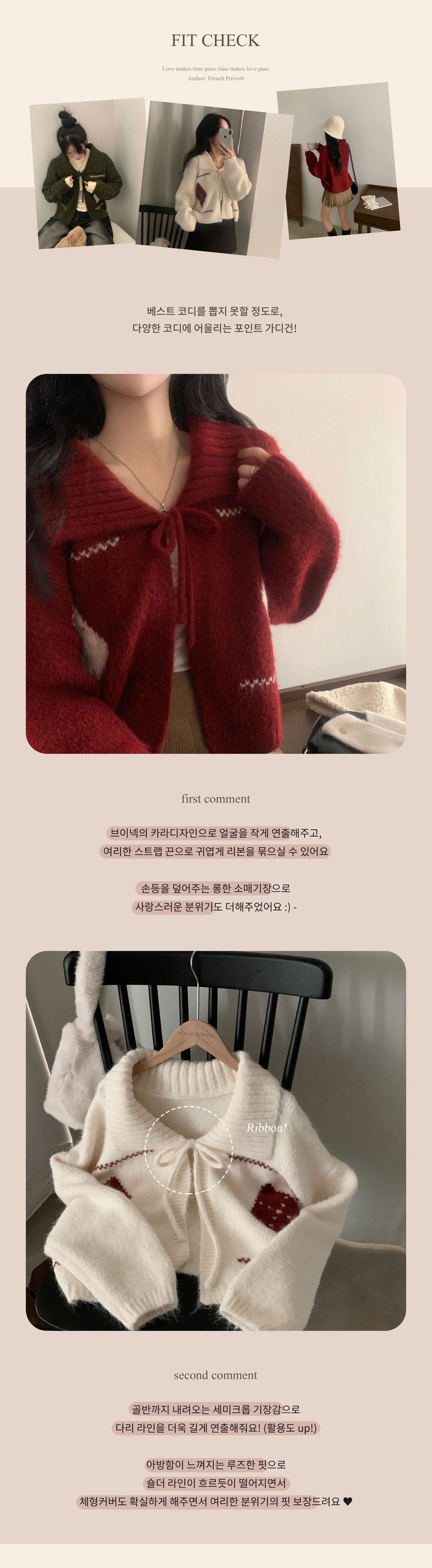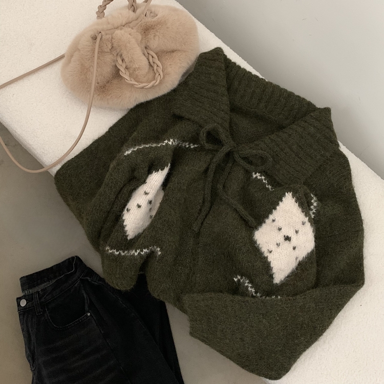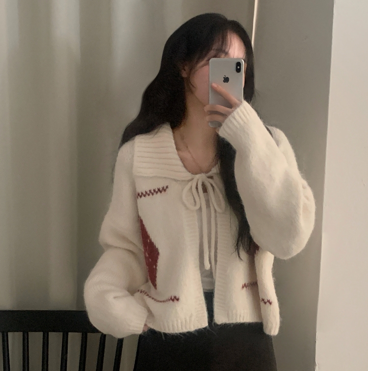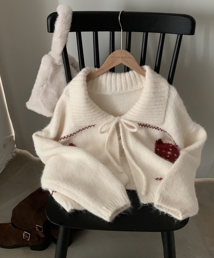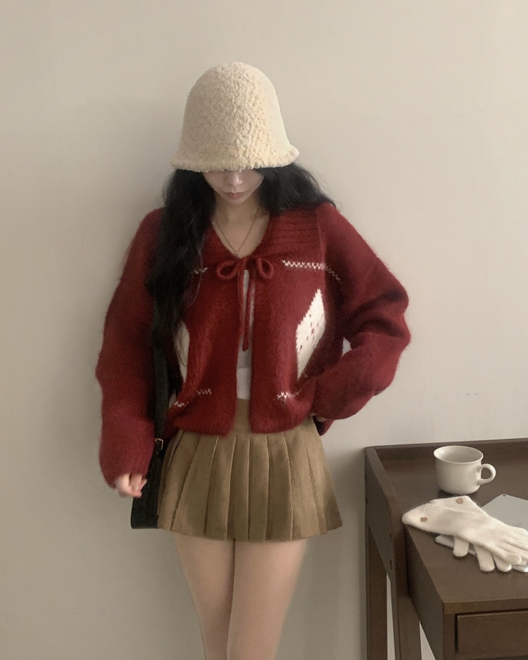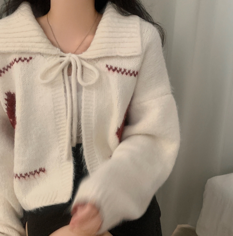 SGD29948 캐럴 노르딕 리본 루즈핏 볼레로 니트가디건