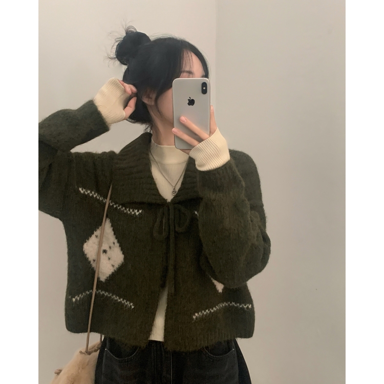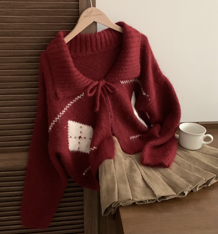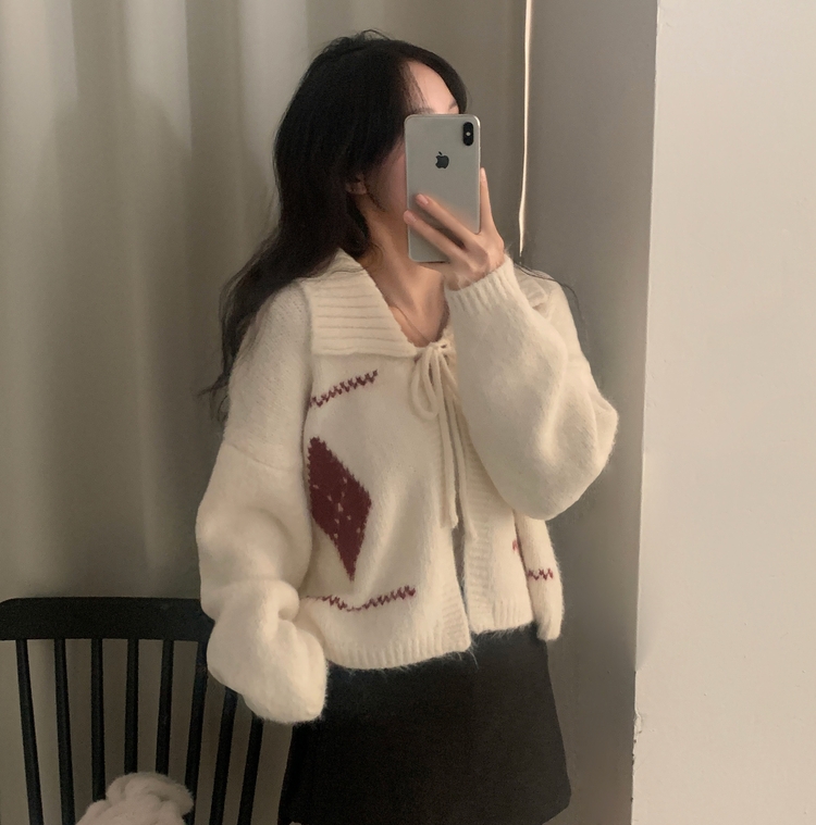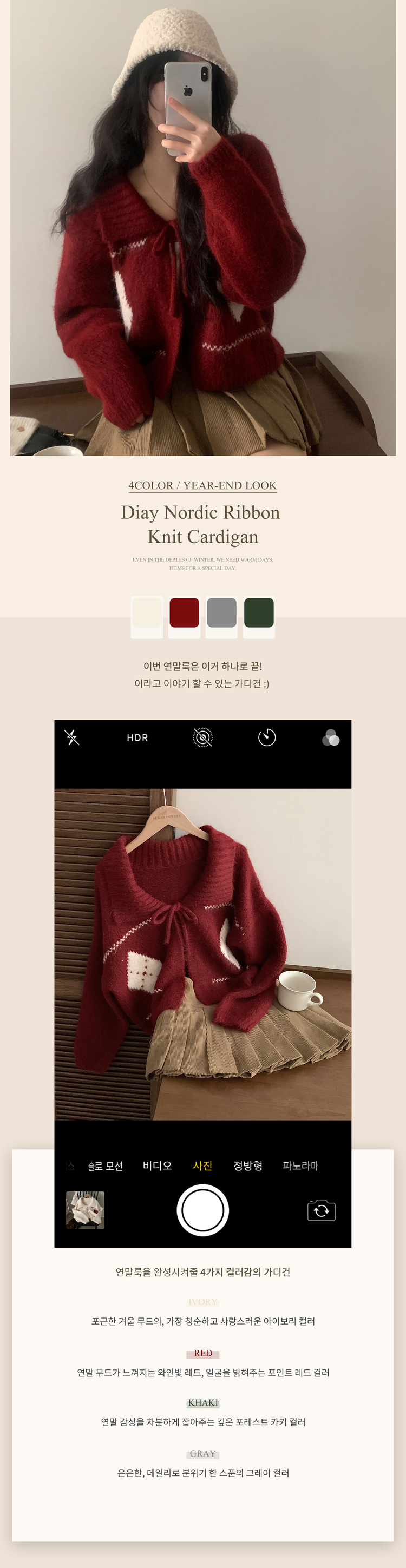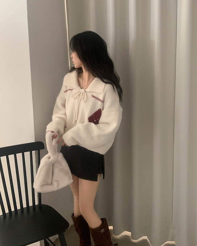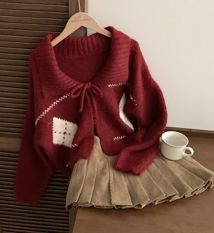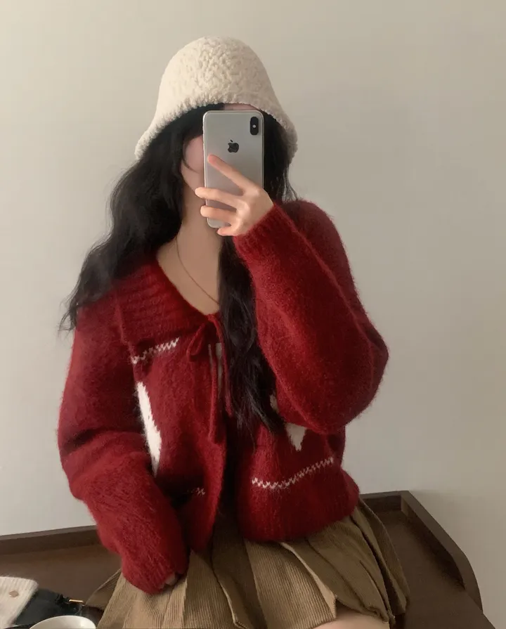 SGD29948 캐럴 노르딕 리본 루즈핏 볼레로 니트가디건
