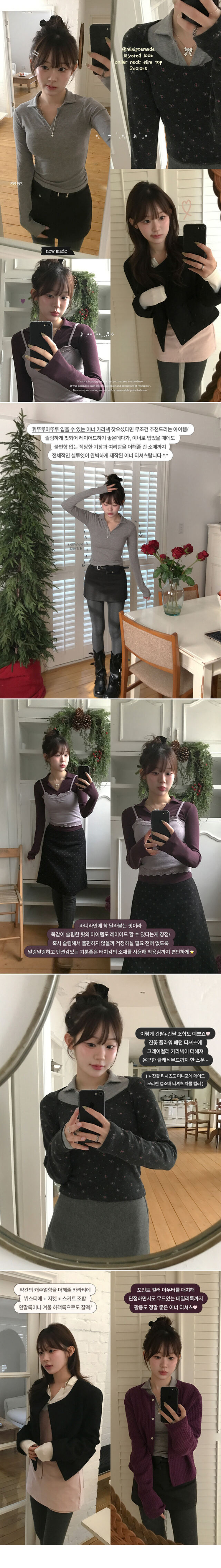 STS73701 미우 카라 티셔츠 레이어드용 텐셀 카라티