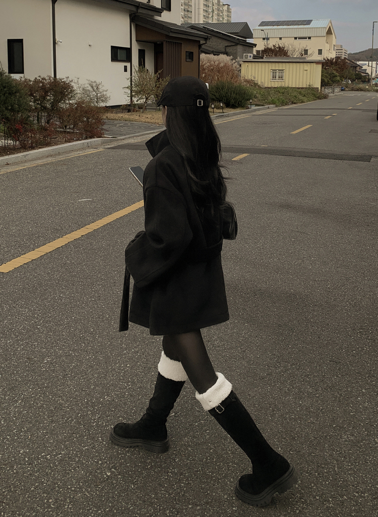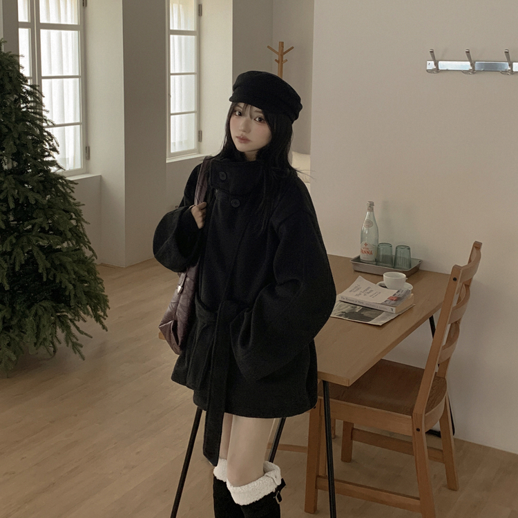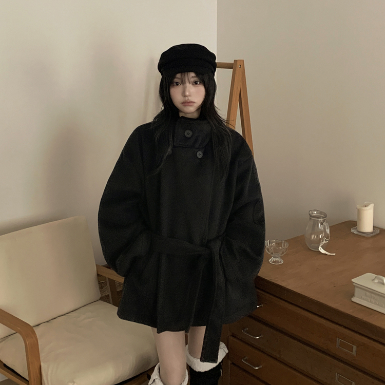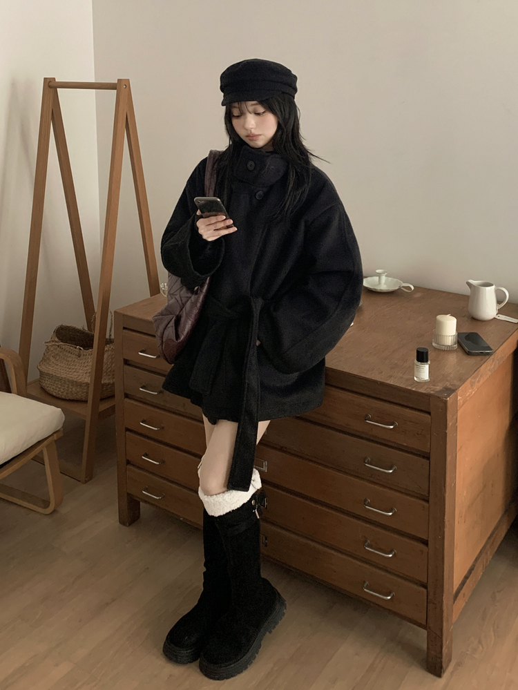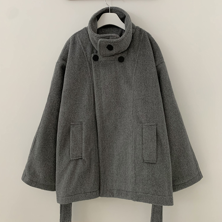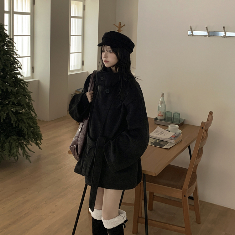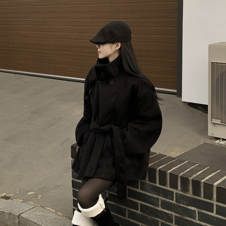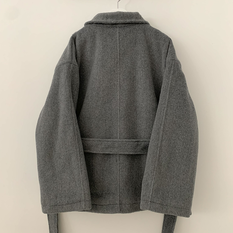 SJP19191 연말룩추천하이넥 단추 허리벨트끈 누빔 하프 로브 반코트 박시핏 자켓