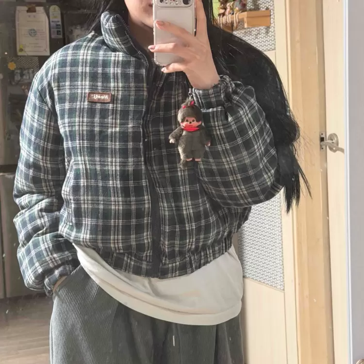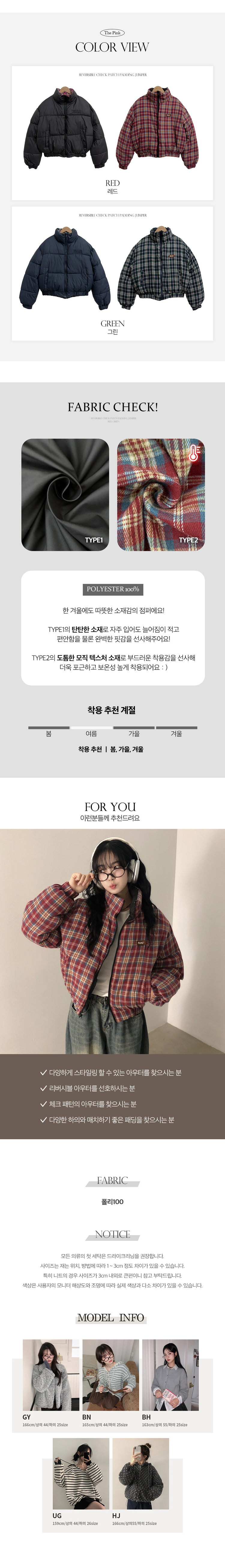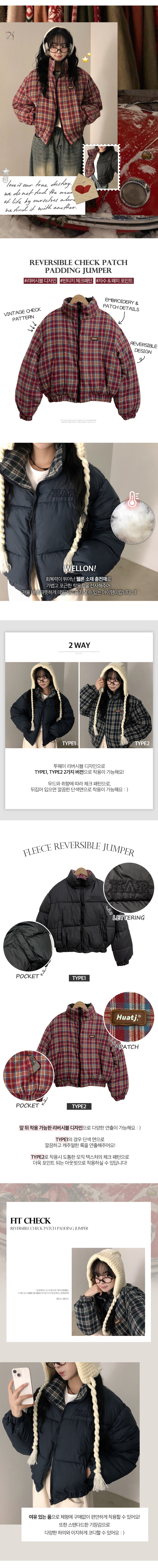 SJP19195 쿠힝 루즈핏 리버시블 체크 자수 패치 패딩 점퍼