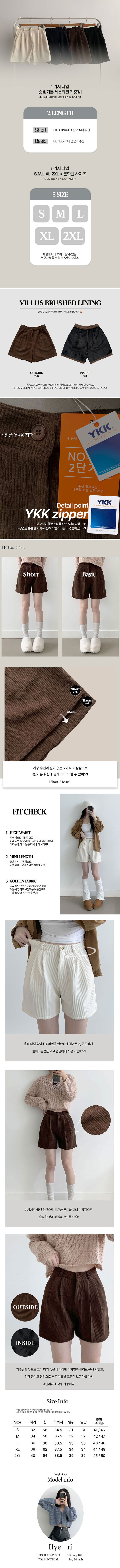 SPS37561 융기모 룬트 융기모 핀턱 코듀로이 기모 숏팬츠