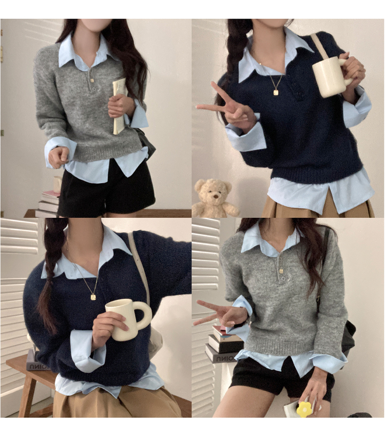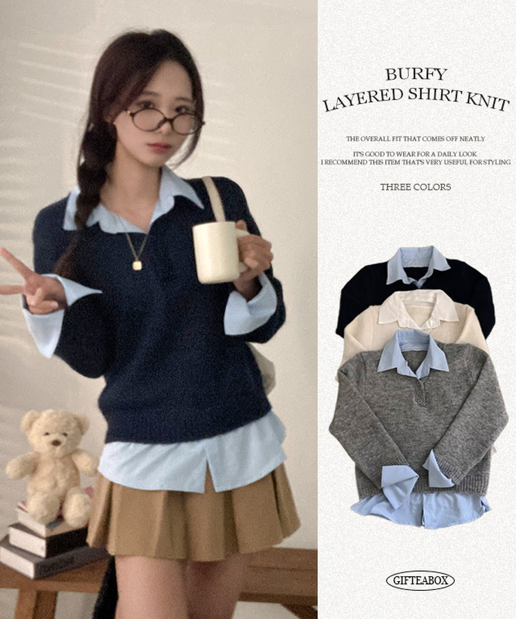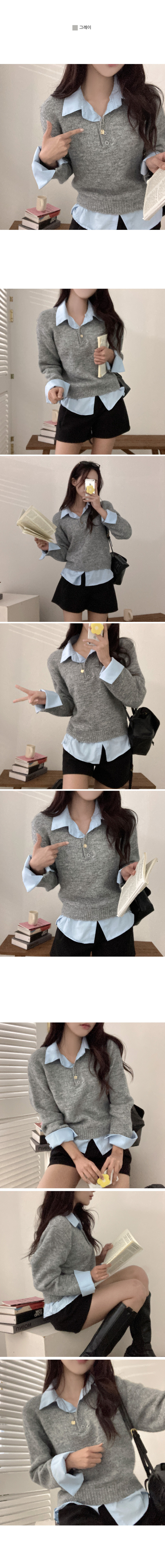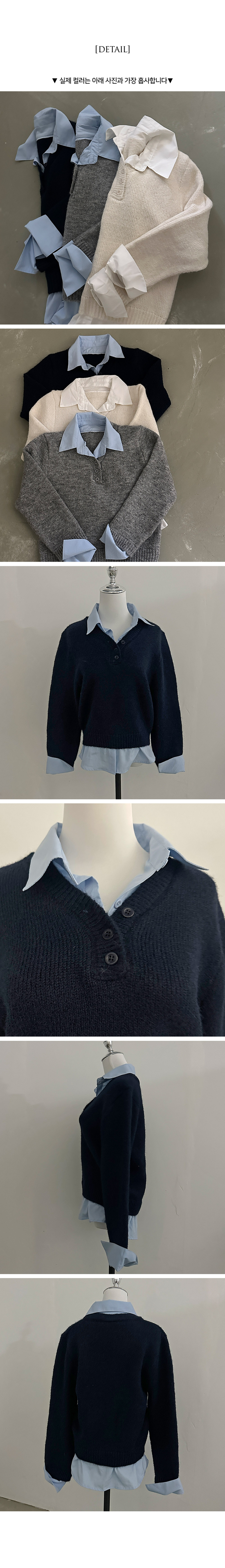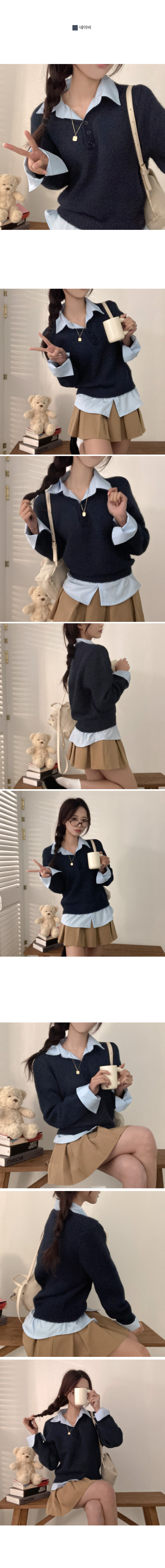 SNT33781 버피 셔츠 레이어드 버튼 일체형 니트