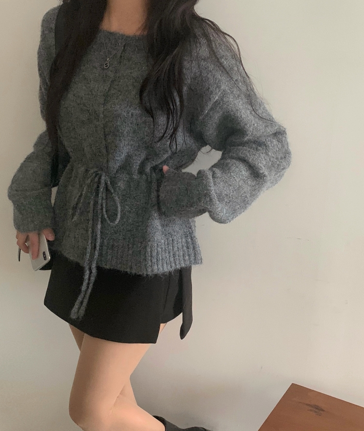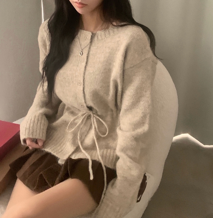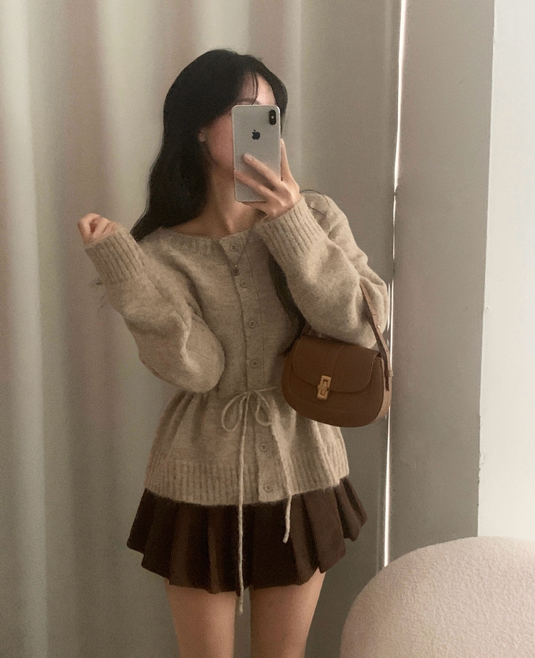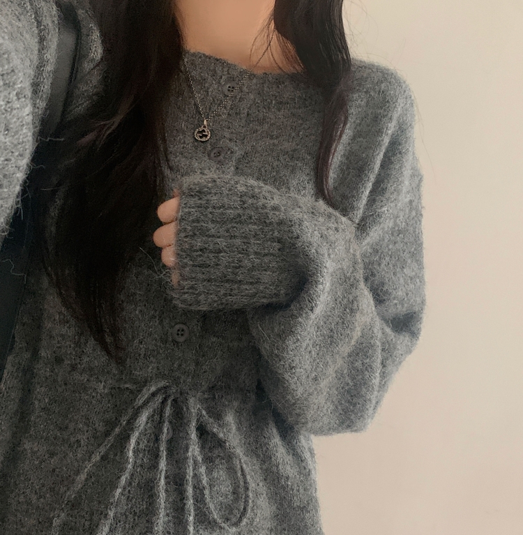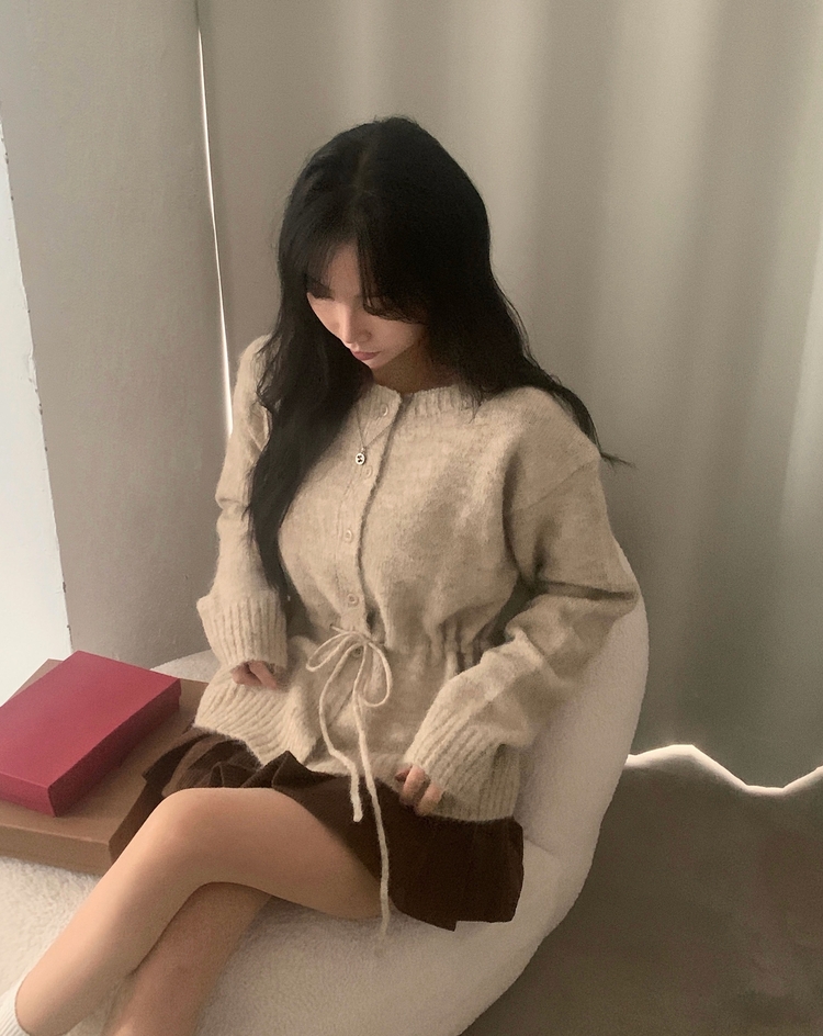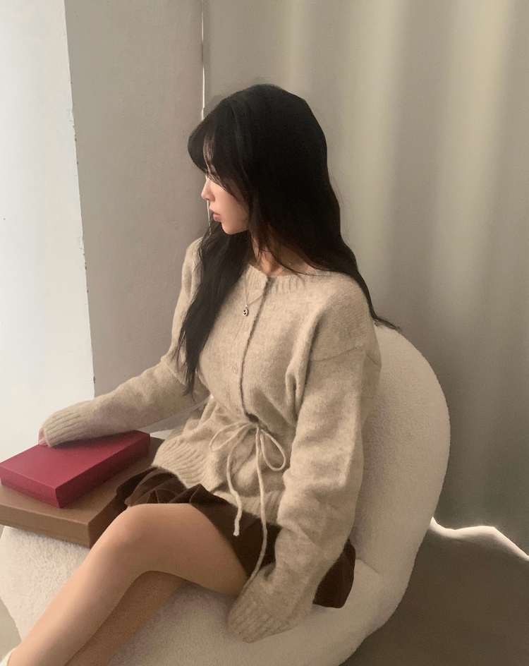 SGD30006 메리 리본 울 보트넥 스트링 루즈핏 니트가디건